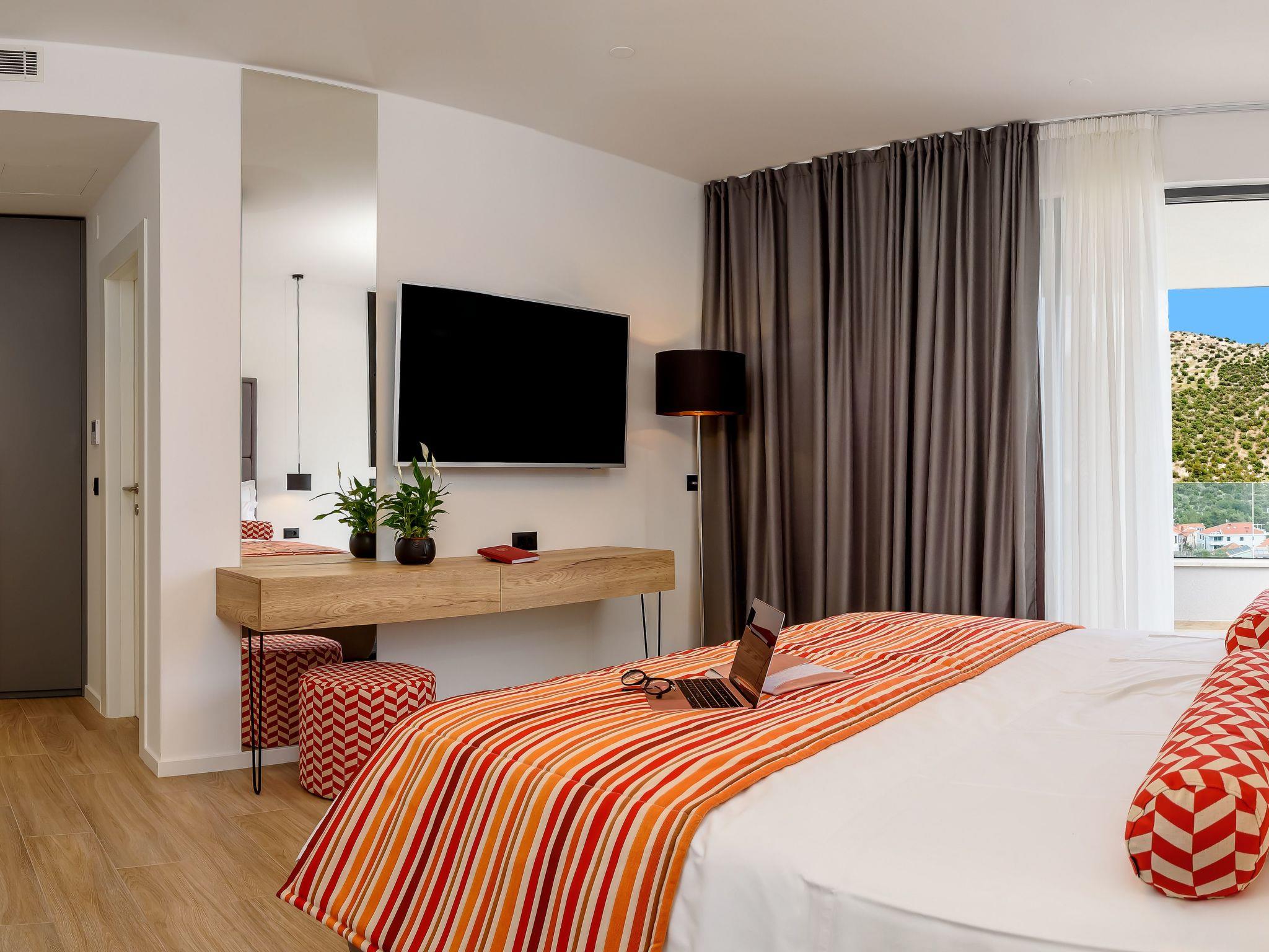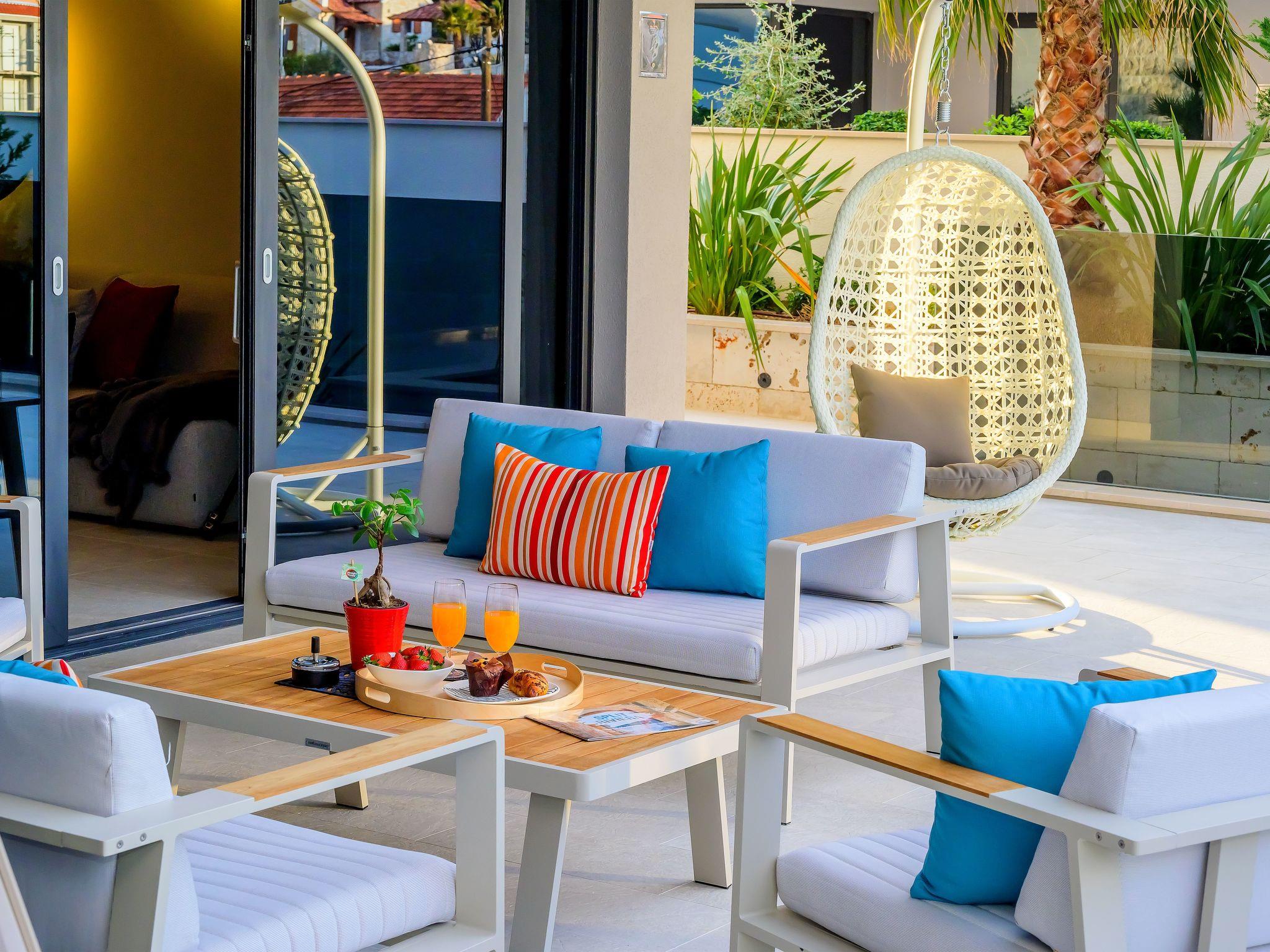 Villas are located only 150 m from the sea and pebble beach and 10 min driving from UNESCO's city Trogir. Marina is a small, quiet fishing village situated in a beautiful bay of clear sea and untouched nature. In the vicinity, there are several beautiful bays known for their beautiful pebble and sandy beaches. There are several shops, restaurants and cafes in Marina and a small marina for boaters.