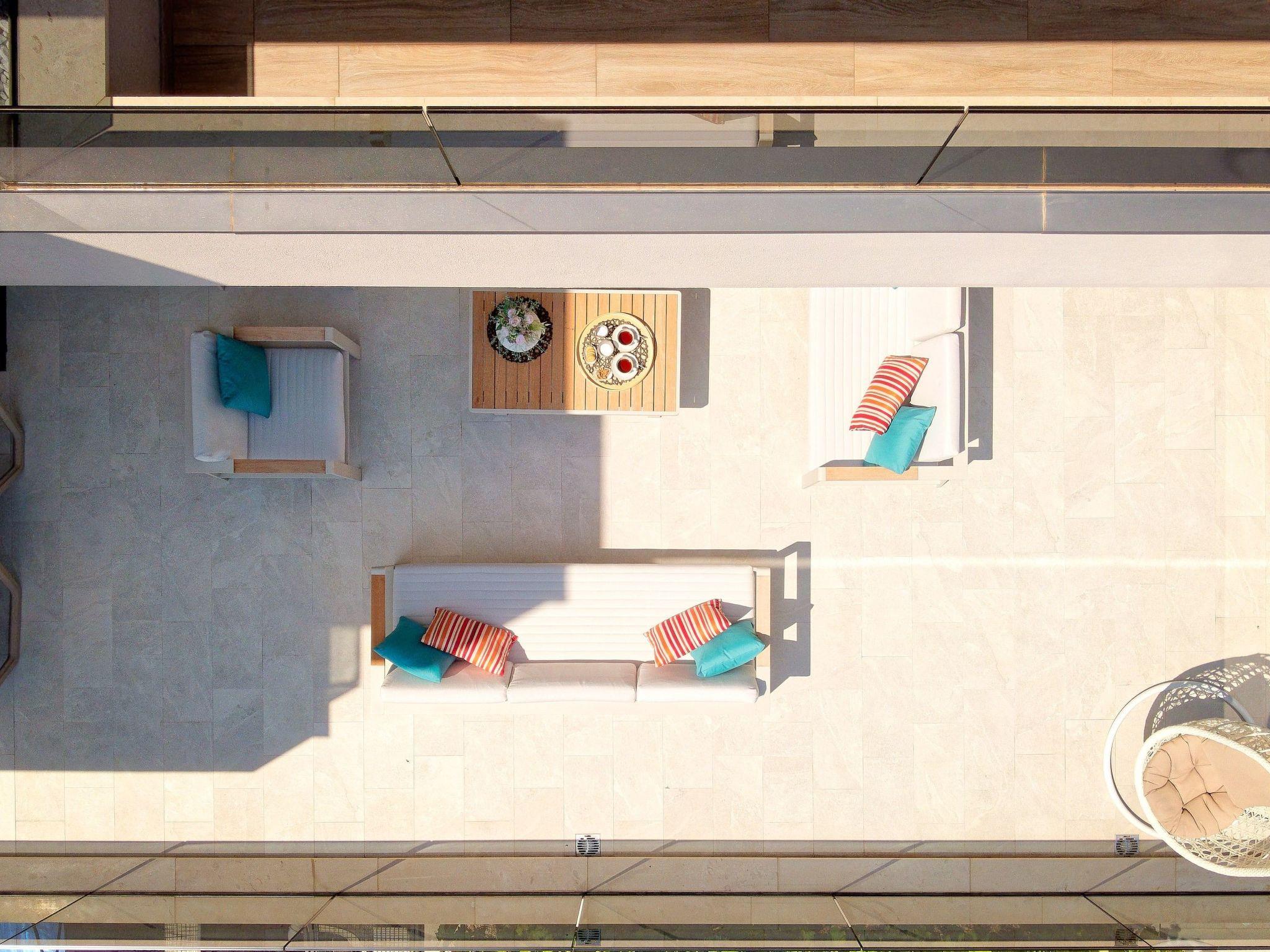 The sun-caressed terrace is equipped with sunbeds, so you can enjoy the warm Mediterranean sunshine.