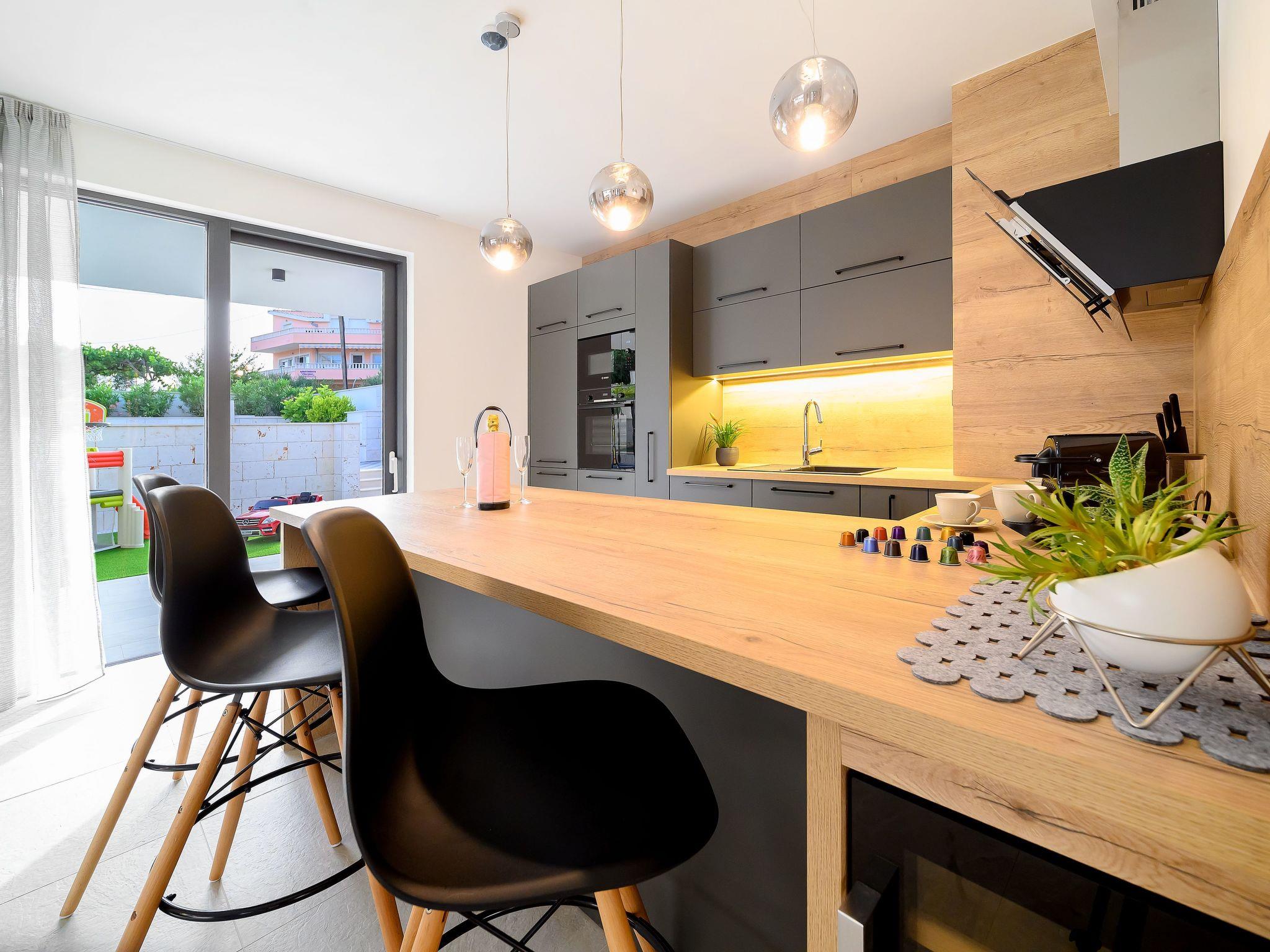 Villas are located only 150 m from the sea and pebble beach and 10 min driving from UNESCO's city Trogir. Marina is a small, quiet fishing village situated in a beautiful bay of clear sea and untouched nature. In the vicinity, there are several beautiful bays known for their beautiful pebble and sandy beaches. There are several shops, restaurants and cafes in Marina and a small marina for boaters