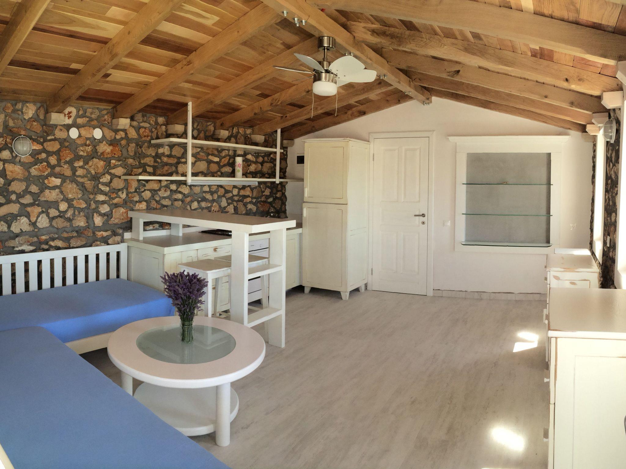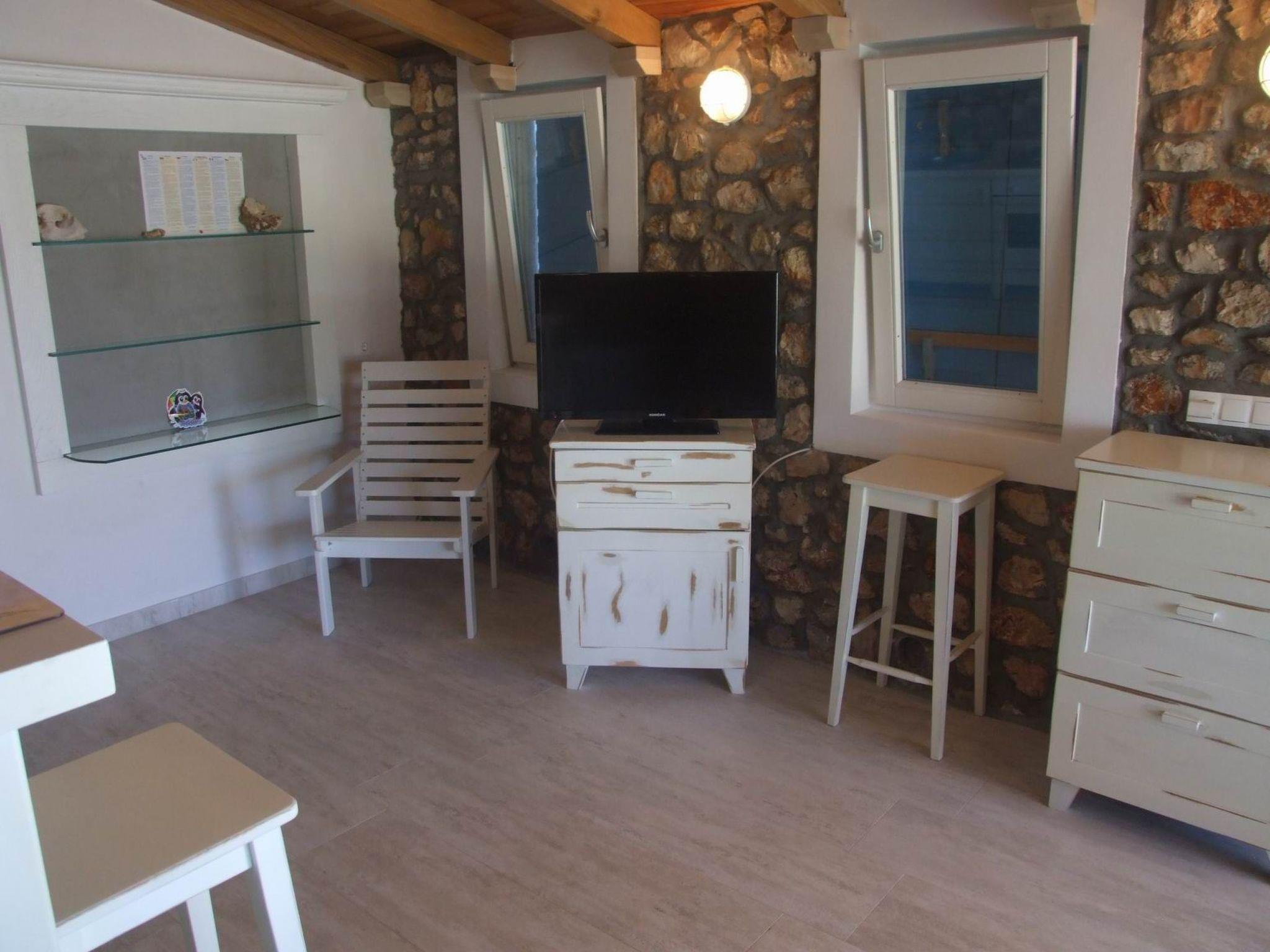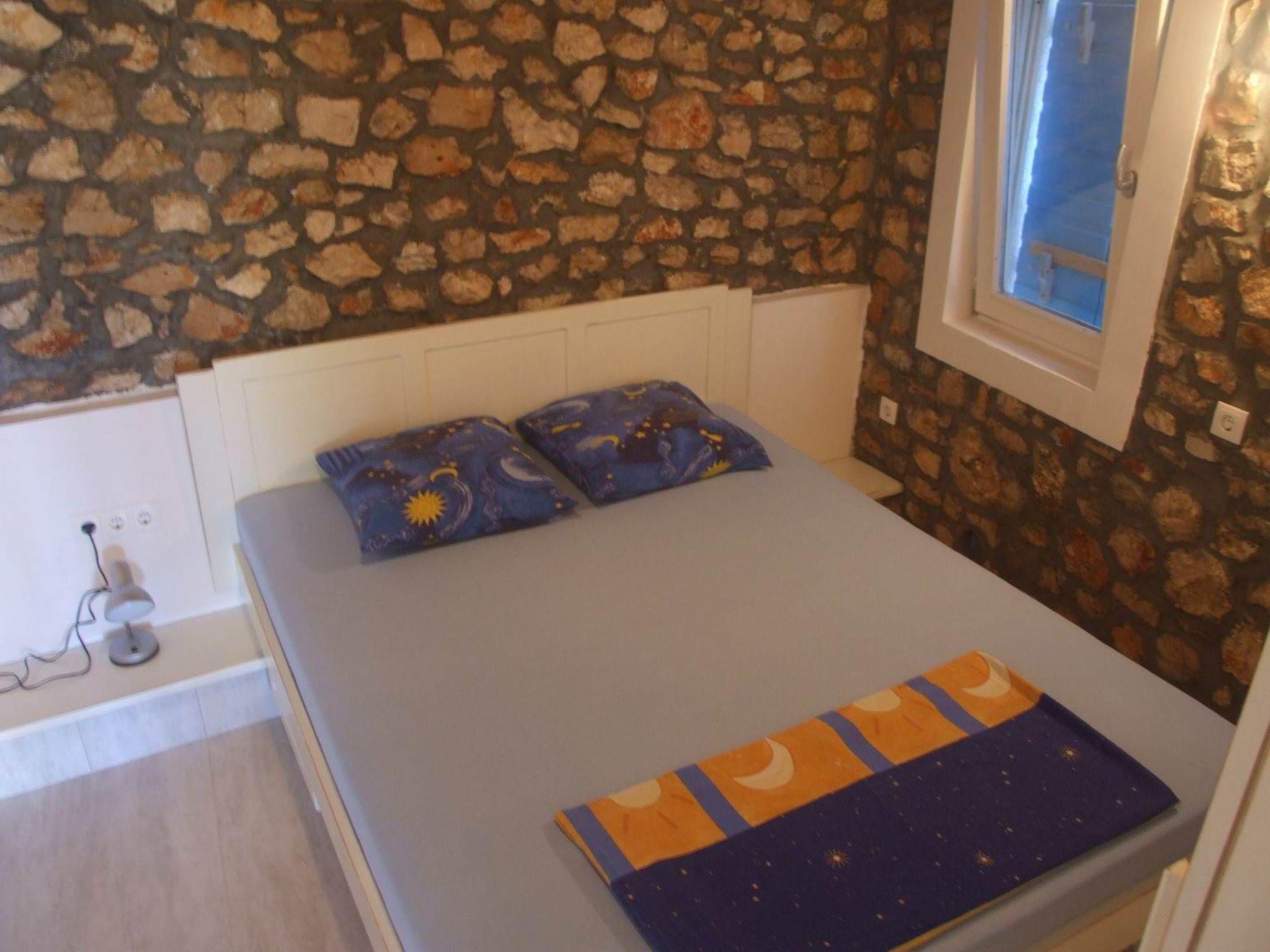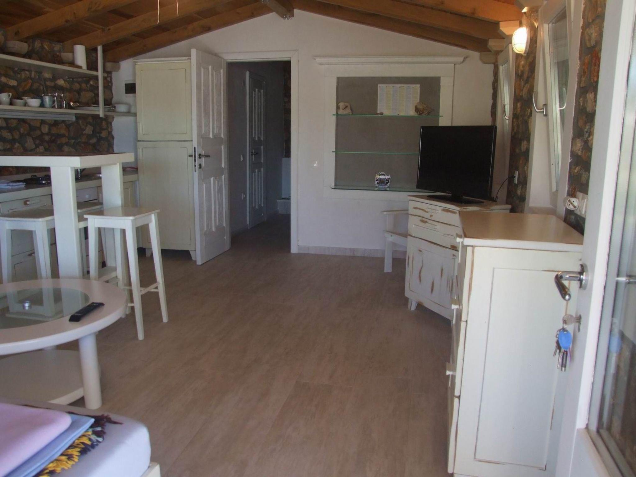 The single storey stone house has one bedroom with a king size double bed and sea views. There is a fully equiped kitchen, an open plan living-/dining room with a flatscreen TV. The bathroom is equipped with a shower, wash basin and toilet. Free Internet. Travel bed available for children.