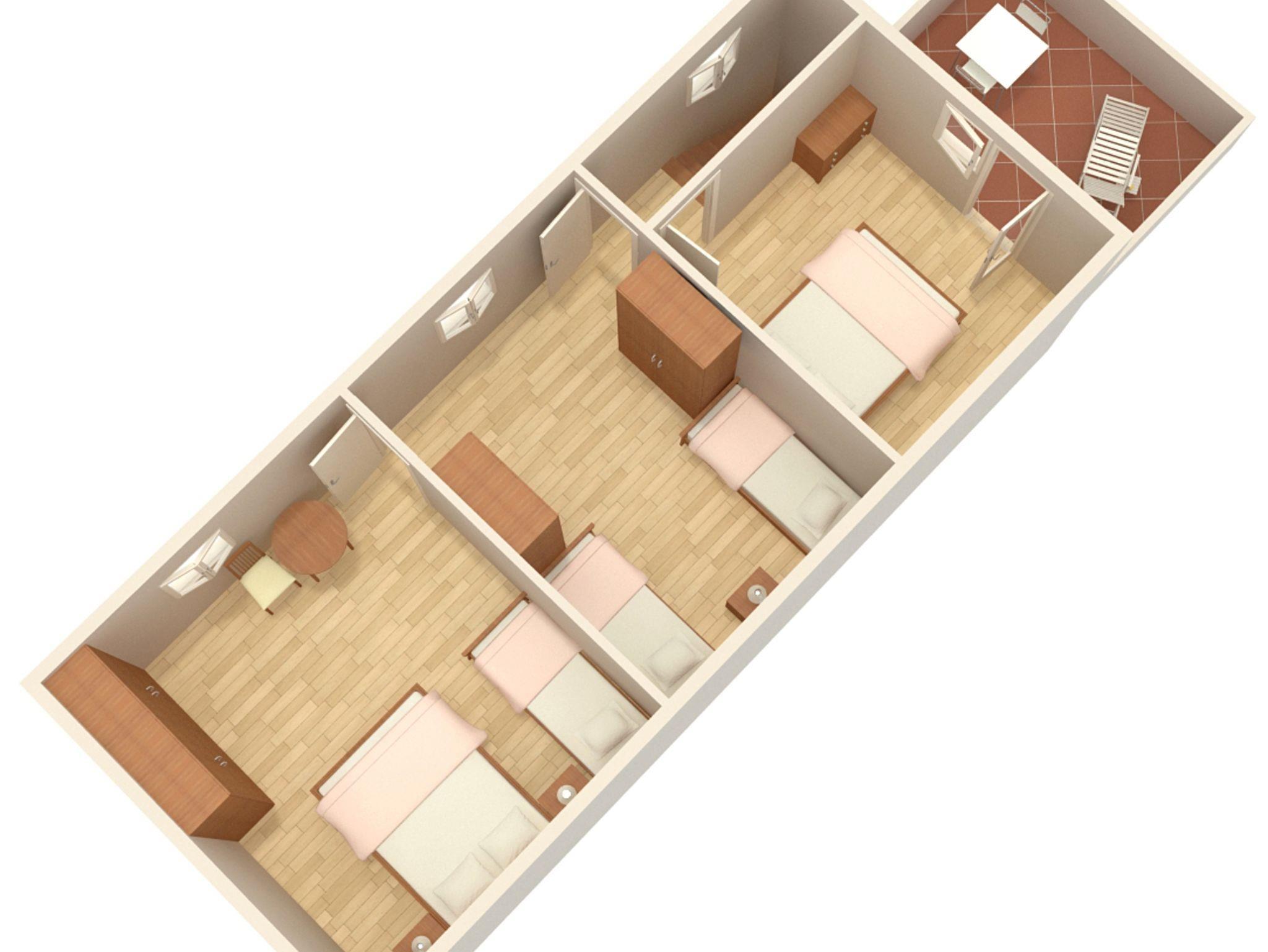 Haus bietet Platz für 6 Gäste. Die Betten sind in Schlafzimmern, die es 3 gibt, innerhalb einer Gesamtfläche von 98m2, angeordnet. Die Gäste haben eine eigene Terrasse zur Verfügung, auf der sie in warmen Sommernächten genießen können. Für vollen Genuss und Entspannung gibt es einen privaten Grill für Gäste dieser Unterkunft. In der Unterkunftseinheit besteht die Möglichkeit des Mitbringens von Haustieren gegen Aufpreis. Durch das Schlafzimmer der gebuchten Unterkunftseinheit geht man in die andere Räume der Einheit. IM PREIS INBEGRIFFEN: Kurtaxe, Endreinigung, Klimatisierung, Garage, Internet, Bügeleisen, Bügelbrett, Sonnenschirm. VERBINDLICHE ZUSÄTZLICHE KOSTEN: Aufzahlung für Kurzaufenthalte (prozentualer Zuschlag pro Nächtigungsanzahl: 30% - 1, 20% - 2, 10% - 3). UNVERBINDLICHE ZUSÄTZLICHE KOSTEN: Haustiere (9,00 € pro Nacht). Die Verfügbarkeit zusätzlicher Dienstleistungen in Ihrem reservierten Termin und die Preise derselben (falls nicht aufgeführt) müssen im Voraus überprüft werden. Zusätzliche Dienstleistungen die in der Zahlungsaufforderung nicht aufgeführt sind werden direkt beim Vermieter bezahlt, angenommen der Gast nutzt auch diese.