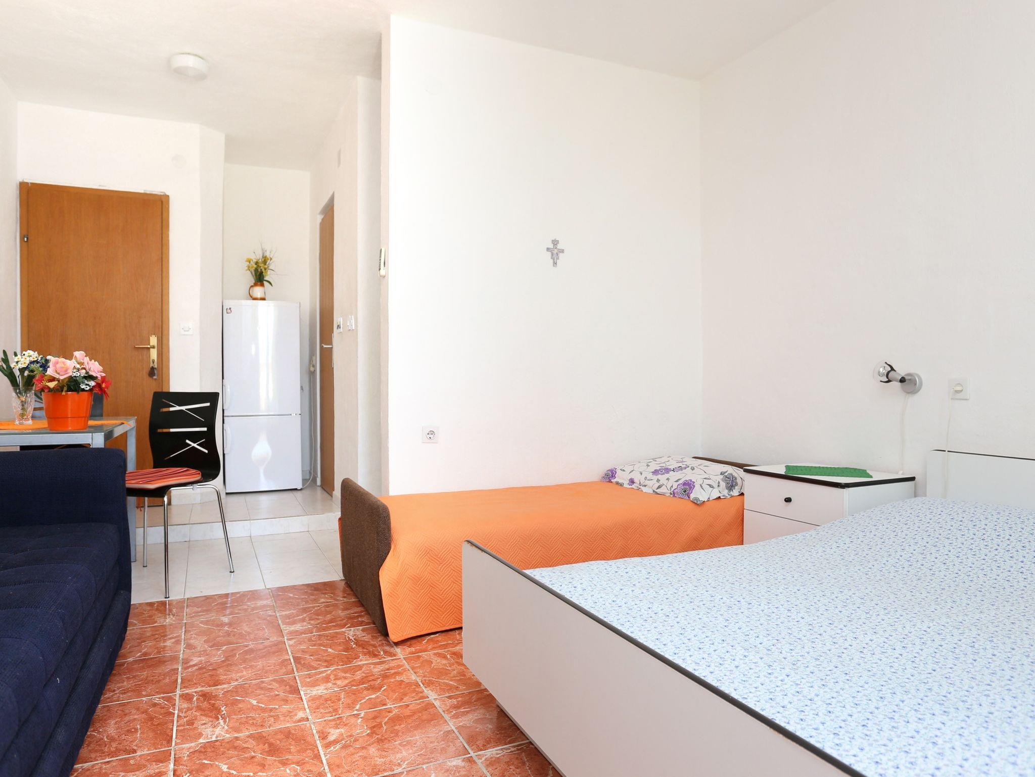 Studio bietet Platz für 3 Gäste. Die Betten sind in Schlafzimmern, die es 1 gibt, innerhalb einer Gesamtfläche von 22m2, angeordnet. Die Gäste haben eine eigene Terrasse zur Verfügung, auf der sie in warmen Sommernächten genießen können. Das Studio-Apartment bietet Meerblick. Es ist erlaubt, Speisen auf dem Gemeinschafts-Grill vorzubereiten. IM PREIS INBEGRIFFEN: Kurtaxe, Endreinigung, Klimatisierung, Parkplatz, Internet, Wäschewaschen, Bügeleisen, Bügelbrett, Föhn. VERBINDLICHE ZUSÄTZLICHE KOSTEN: Aufzahlung für Kurzaufenthalte (prozentualer Zuschlag pro Nächtigungsanzahl: 30% - 1, 20% - 2, 10% - 3). Die Verfügbarkeit zusätzlicher Dienstleistungen in Ihrem reservierten Termin und die Preise derselben (falls nicht aufgeführt) müssen im Voraus überprüft werden. Zusätzliche Dienstleistungen die in der Zahlungsaufforderung nicht aufgeführt sind werden direkt beim Vermieter bezahlt, angenommen der Gast nutzt auch diese. Ermäßigung auf den Grundpreis: Gratistag 14=13 (bei einem Aufenthalt von 14 Tagen oder mehr erhalten Sie einen Gratistag für den Aufenthalt bis 31.12.26).