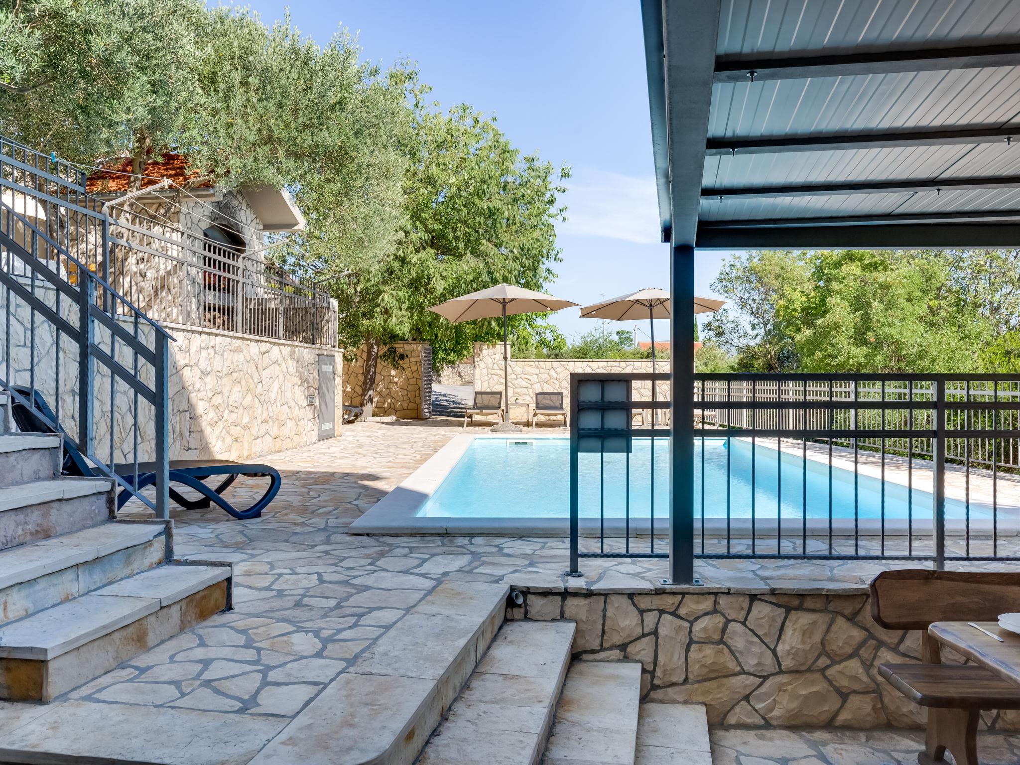Apartment house "Relax". 16 km from the centre of Obrovac, in a sunny, elevated position, 150 m from the sea, 150 m from the beach, located by a road. For shared use: property 300 m2 (fenced), swimming pool angular (8 x 4 m, depth 150 cm, seasonal availability: 02.May. - 26.Sep.). Garden furniture, barbecue. In the house: internet access, washing machine (for shared use). Parking at the house on the premises. Shop 10 m, restaurant 100 m, bus stop 1 km, pebble beach 150 m. Nearby attractions: NP Paklenica 17 km, rafting Zrmanja 35 km.