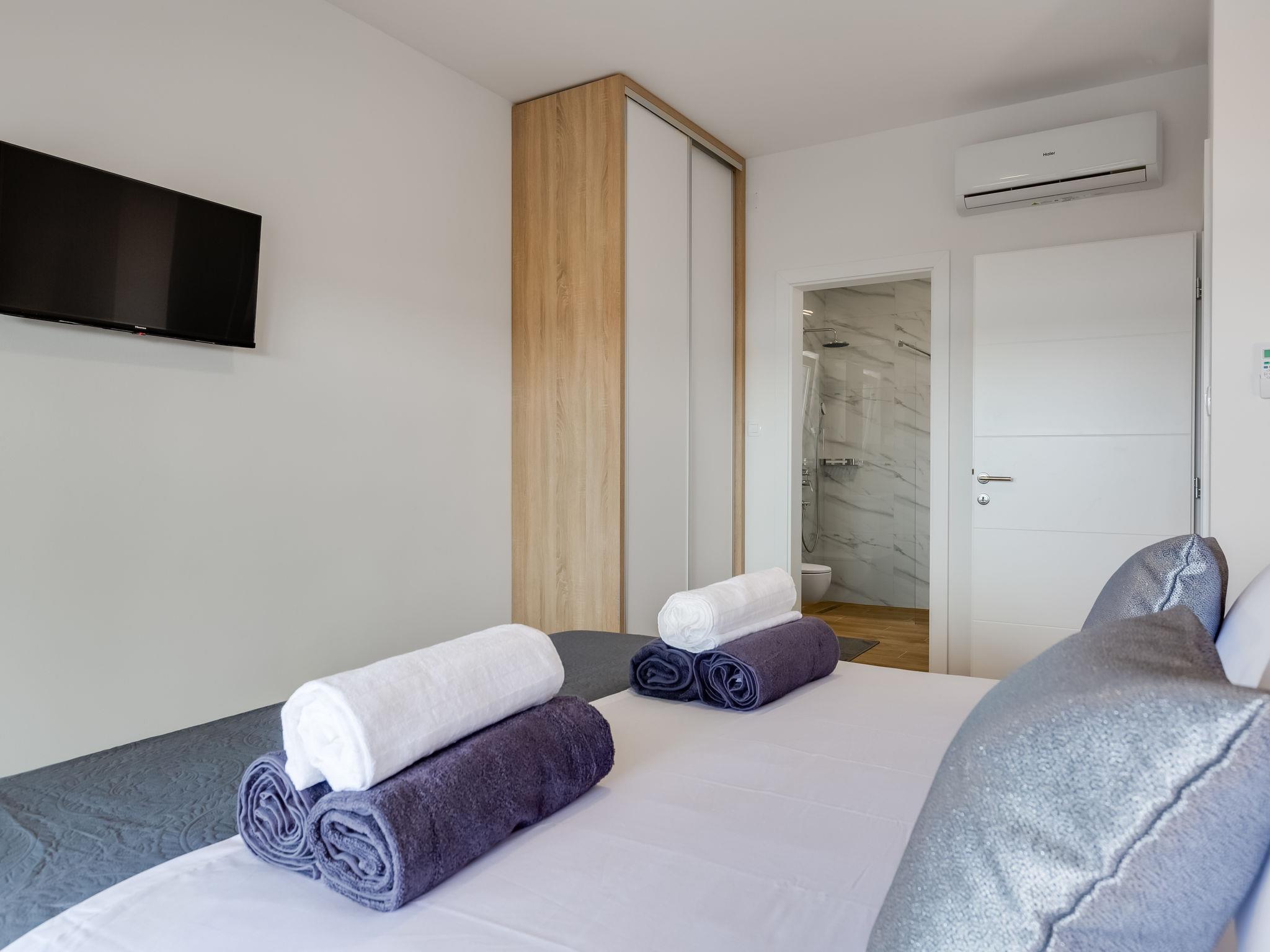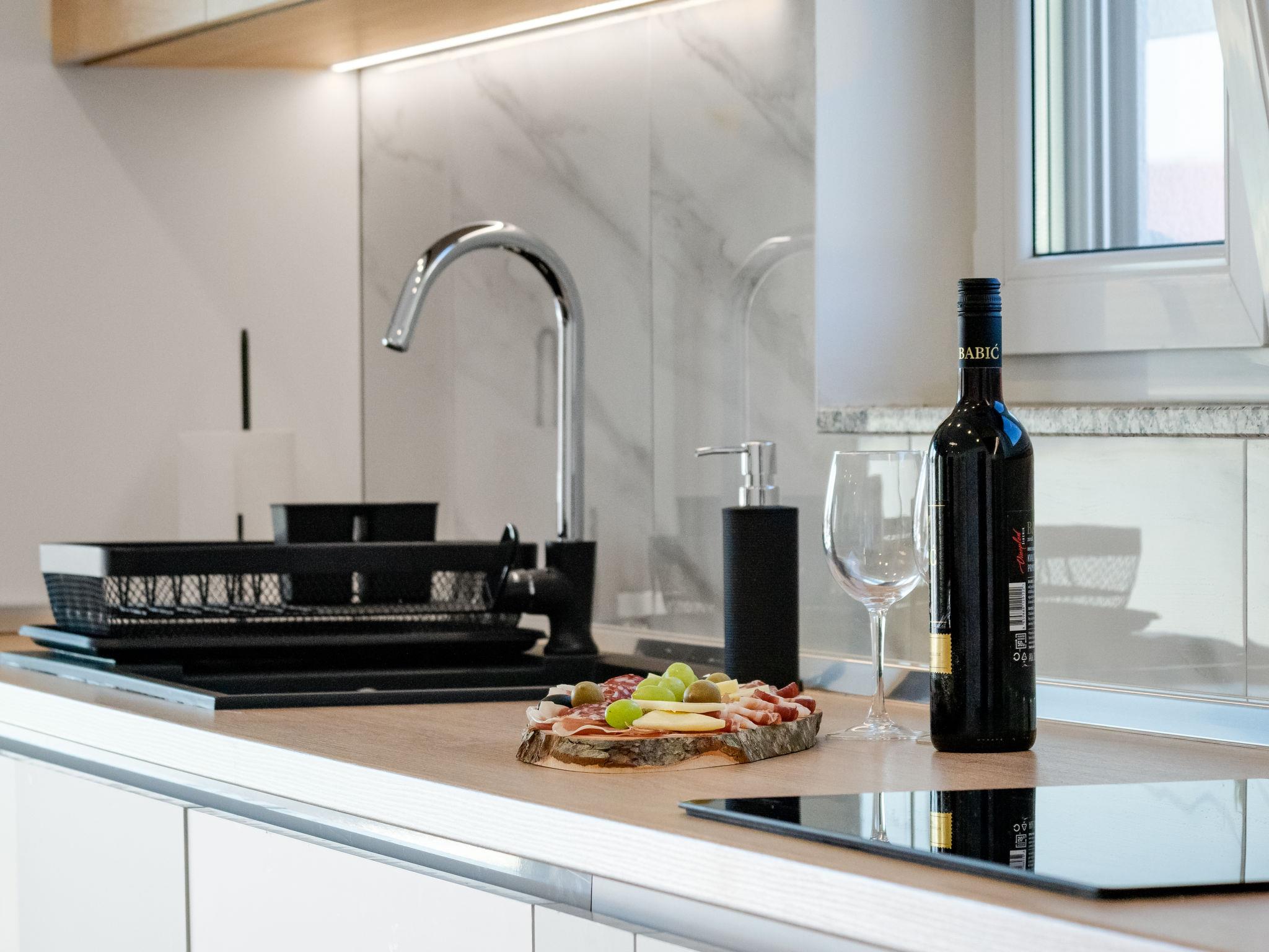 Modern villa "Solis", 2 storeys, built in 2024. 28 km from the centre of Zadare, in a sunny, elevated position, 400 m from the sea, 400 m from the beach, located by a road. Private: property 600 m2 (fenced), swimming pool angular (8 x 4 m, depth 150 cm, seasonal availability: 02.May. - 26.Sep.). Garden furniture, barbecue. In the house: internet access, washing machine. Parking at the house on the premises. Shop 100 m, restaurant 400 m, bus stop 900 m, pebble beach 500 m. Nearby attractions: NP Paklenica 17 km, rafting Zrmanja 35 km. Groups of teenagers on request only.