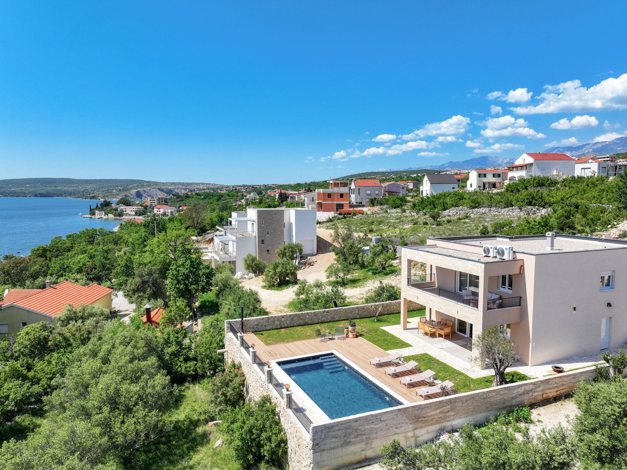 Modern villa "Grota", 2 storeys, built in 2024. 28 km from the centre of Zadare, in a sunny, elevated position, 180 m from the sea, 600 m from the beach, located by a road. Private: property 1'000 m2 (fenced), swimming pool angular (8 x 4 m, depth 150 cm, seasonal availability: 02.May. - 26.Sep.). Garden furniture, barbecue. In the house: internet access, washing machine. Parking (for 3 cars) at the house on the premises. Shop 1 km, restaurant 1.5 km, bus stop 3.2 km, pebble beach 600 m, shingle beach 180 m. Nearby attractions: NP Paklenica 17 km, rafting Zrmanja 35 km. Groups of teenagers on request only.