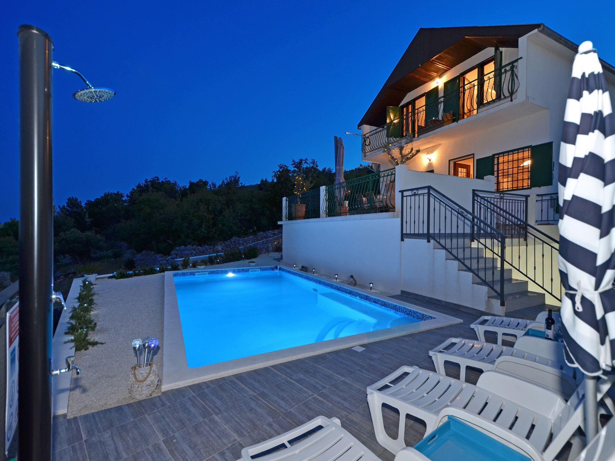The terrace is equipped with garden furniture and sunshade. There is also a barbecue. From terrace you have view on Adriatic sea, city and a private pool. Swimming pool is for your private use only. House provide private parking space.