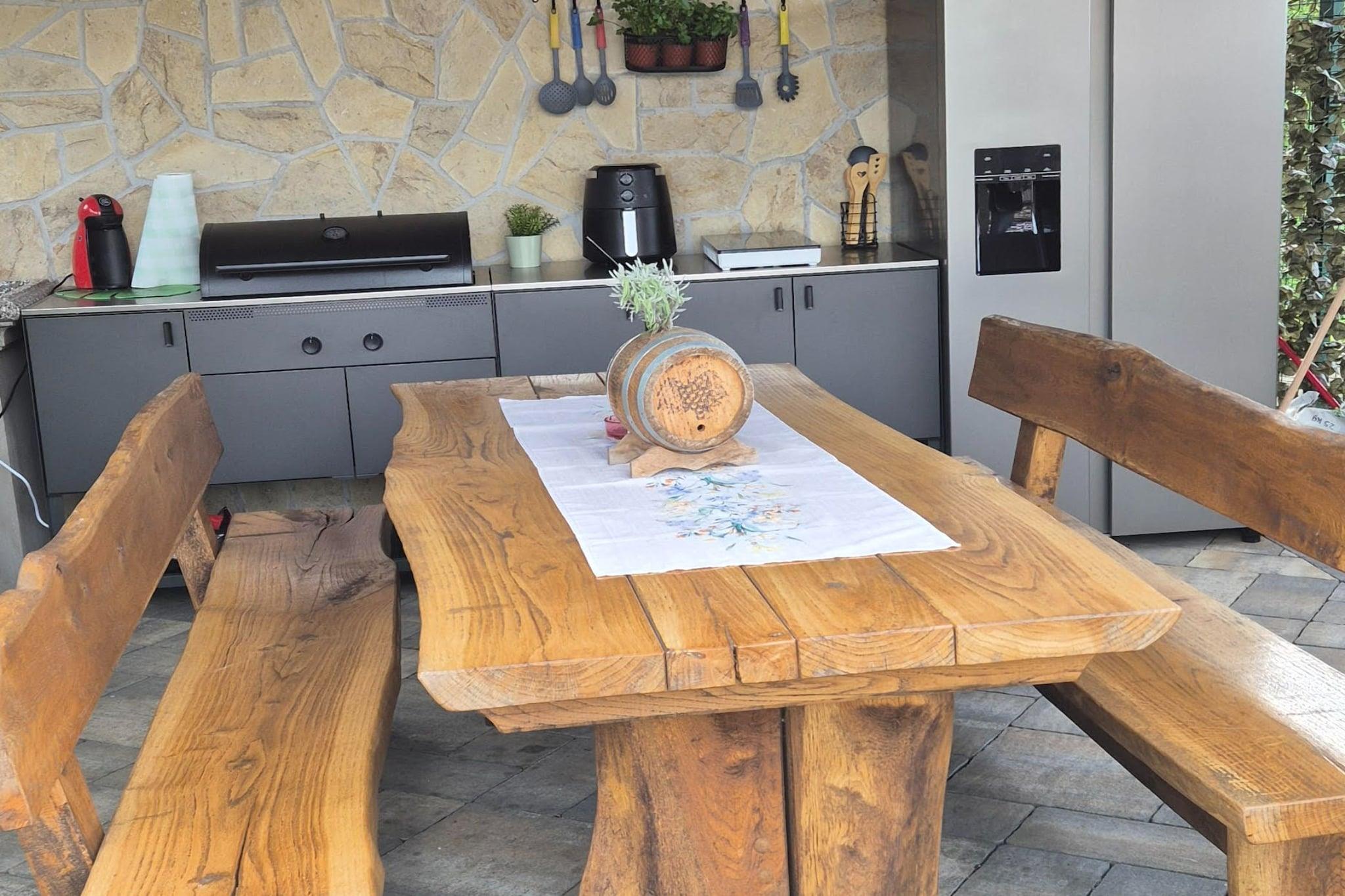 Villa Lemily is located in Lipa, only 20 km from Opatija, the oldest Croatian tourist destination. Heated outdoor swimming pool as well as hot tub are at your disposal, which makes this place ideal for a nice and relaxing family or friends vacation. Fitness equipment and a children's playground are also available. Villa Lemily comes with two living rooms and two equipped kitchens. All bedrooms are fitted with air-conditioning and come with SAT LCD TV. The outdoor kitchen is fully equipped with everything just like the indoor kitchens and is located in the pool area. Free private parking is provided. This lovely five bedroom villa with swimming pool is perfectly fit for up to twelve people. It features free WiFi, air conditioning as well as SAT LCD TV. The open space living room comes with sofa and sitting area, and it's combined with the equipped kitchen and dining area. The private bathrooms come with shower and toilet. Free toiletries, hair dryer as well as linens and towels are at your disposal. Opatija is the oldest Croatian tourist destination. You can try traditional Croatian cuisine in many restaurants in this area. The closest restaurant is only 1,50 km from the property, as well as the nearest café bar. The nearest beach is 17 km away from the Villa Lemily. Bars as well as markets and everything necessary for a nice stay can be found within 1.5 km radius from the property. Rijeka airport is located 52 km from the property.