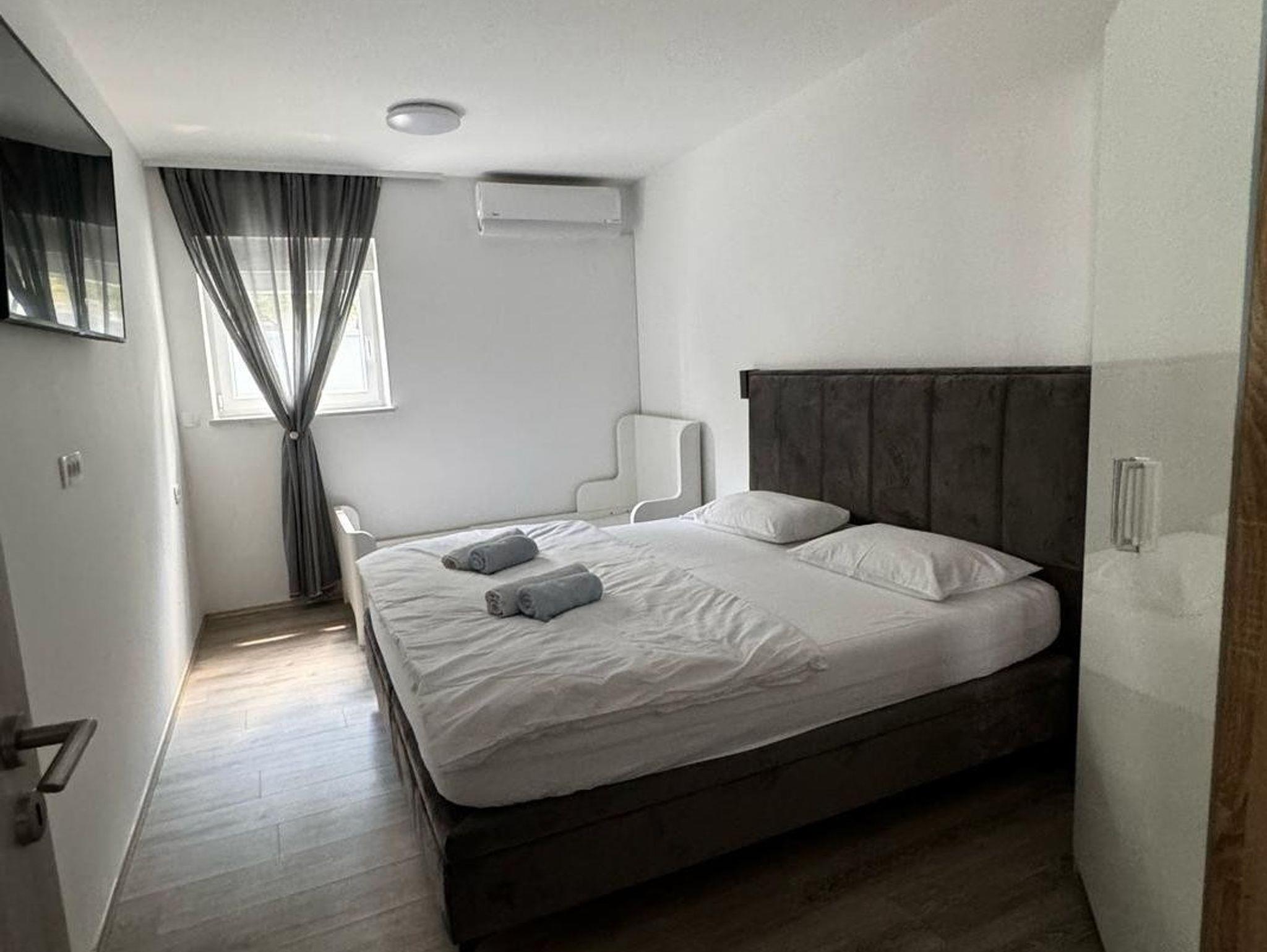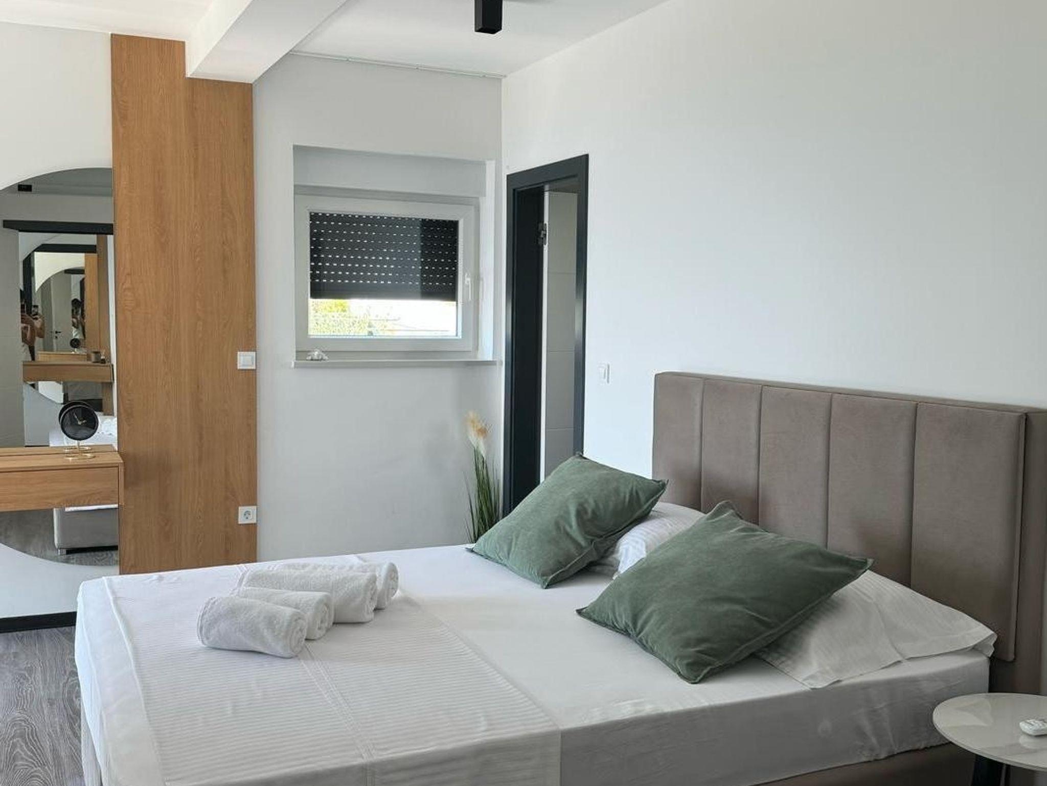Haus bietet Platz für 12 Gäste. Die Betten sind in Schlafzimmern, die es 6 gibt, innerhalb einer Gesamtfläche von 173m2, angeordnet. Die Gäste haben eine eigene Terrasse zur Verfügung, auf der sie in warmen Sommernächten genießen können. Das Haus bietet Meerblick. Es ist erlaubt, Speisen auf dem Gemeinschafts-Grill vorzubereiten. Während ihres Aufenthalts können Gäste das gemeinsam zur Nutzung stehende Schwimmbad benutzen. Unterkunftseinheit hat Räume, die von dem Rest der Einheit abgetrennt werden. IM PREIS INBEGRIFFEN: Kurtaxe, Endreinigung, Klimatisierung, Zentralheizung, Pool, Parkplatz, Internet, Kinderbett, Bügeleisen, Bügelbrett, Föhn, tragbarer Grill. Die Verfügbarkeit zusätzlicher Dienstleistungen in Ihrem reservierten Termin und die Preise derselben (falls nicht aufgeführt) müssen im Voraus überprüft werden. Zusätzliche Dienstleistungen die in der Zahlungsaufforderung nicht aufgeführt sind werden direkt beim Vermieter bezahlt, angenommen der Gast nutzt auch diese.