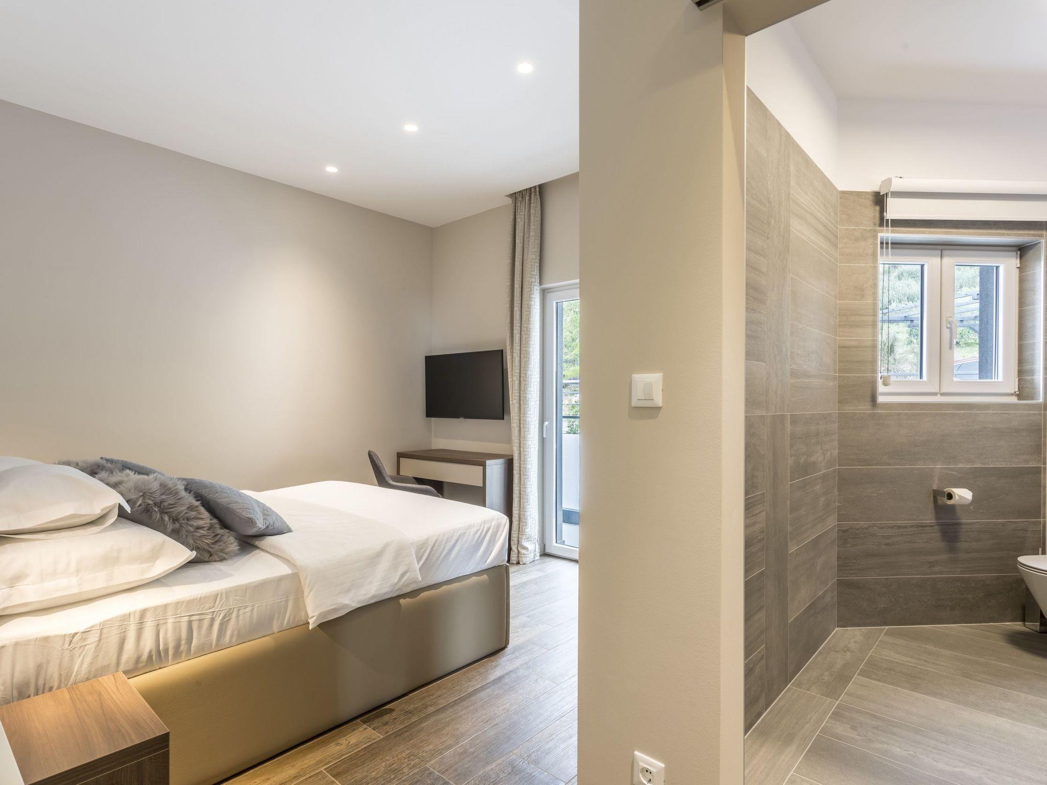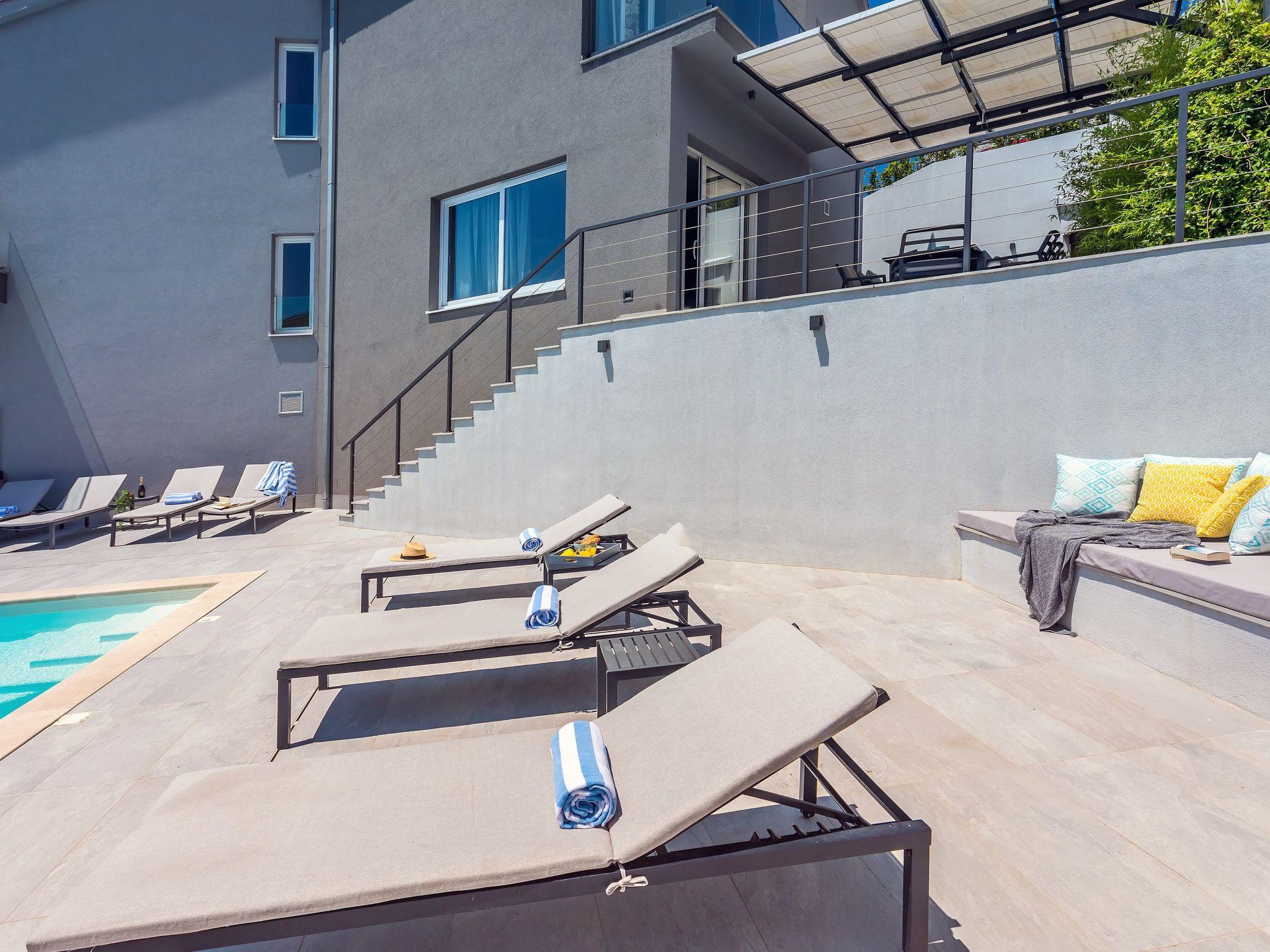 Villa IPONI is a newly built villa furnished with high quality and style, offering very comfortable accommodation for 8 people, fully air-conditioned with free Wi-Fi, with all of the required home appliances in the kitchen, spacious living room with sea views and a balcony, 4 bedrooms, each with en-suite bathroom, sauna and a gym, 2 electric bicycles, amazing views of the Adriatic Sea, mountains and island Brac from almost every corner.