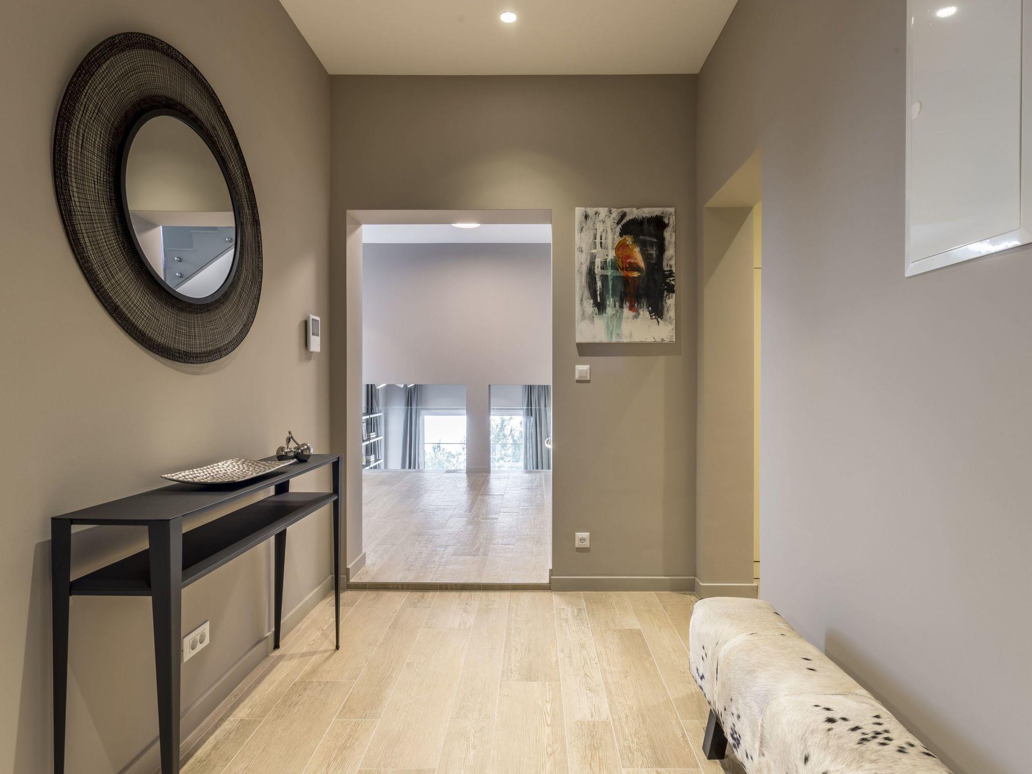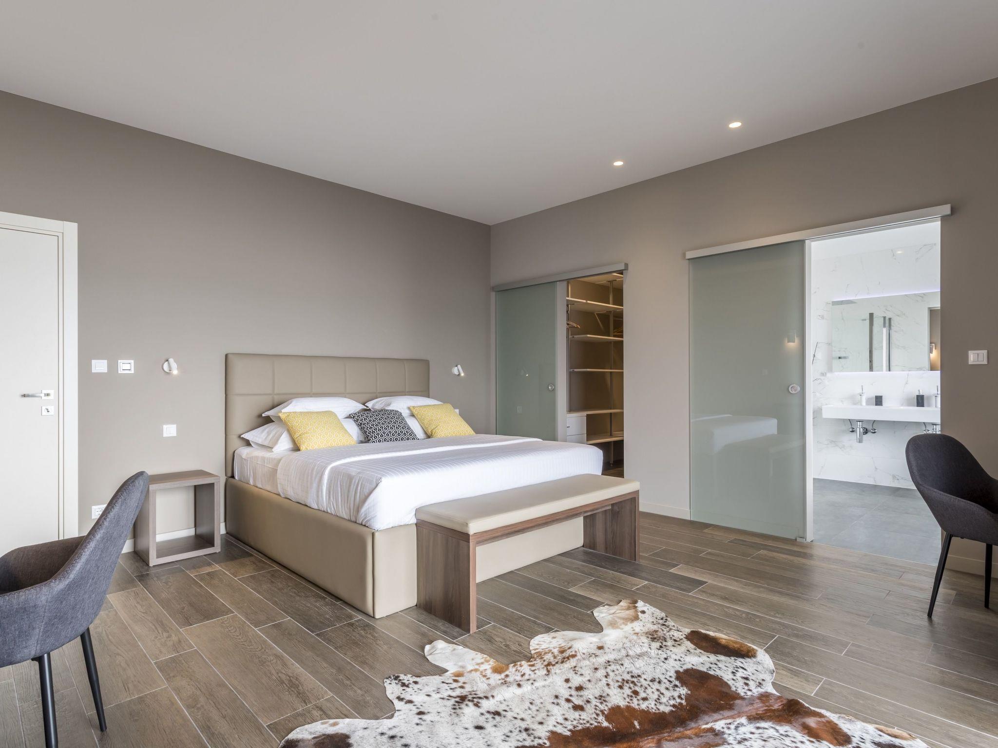 *The internal staircase takes you to an upper ground floor (mezzanine) with a Master bedroom No2 with a king-size bed 180x200cm with sea views, TV, A/C, en-suite bathroom with a shower and a bathtub with sea views, walk-in closet, and a TV. A few steps up from this level takes you to the first-floor level offering Bedroom No3 with king-size bed 180x200cm with sea views, TV, A/C, en-suite bathroom with shower and a bathtub; Bedroom No4 with double bed 160x200cm, TV, A/C, en-suite bathroom with shower. Bedrooms are far from each other offering privacy.