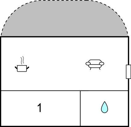 Komb. spisestue/køkken 25m2 - 2 Sovepladser. (Sofa, madras eller lignende).