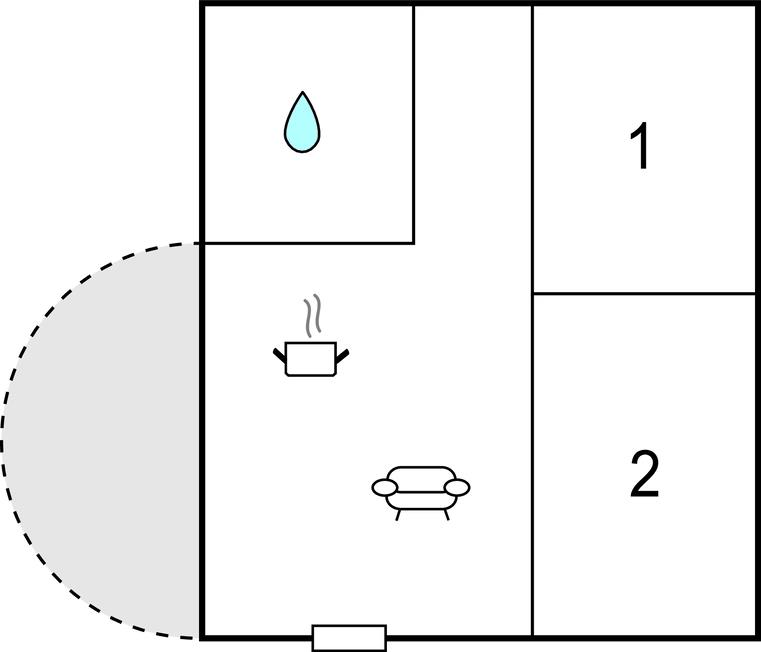 Soveværelse 10m2 (nr. 1) - 2 Sovepladser. (Sofa, madras eller lignende).