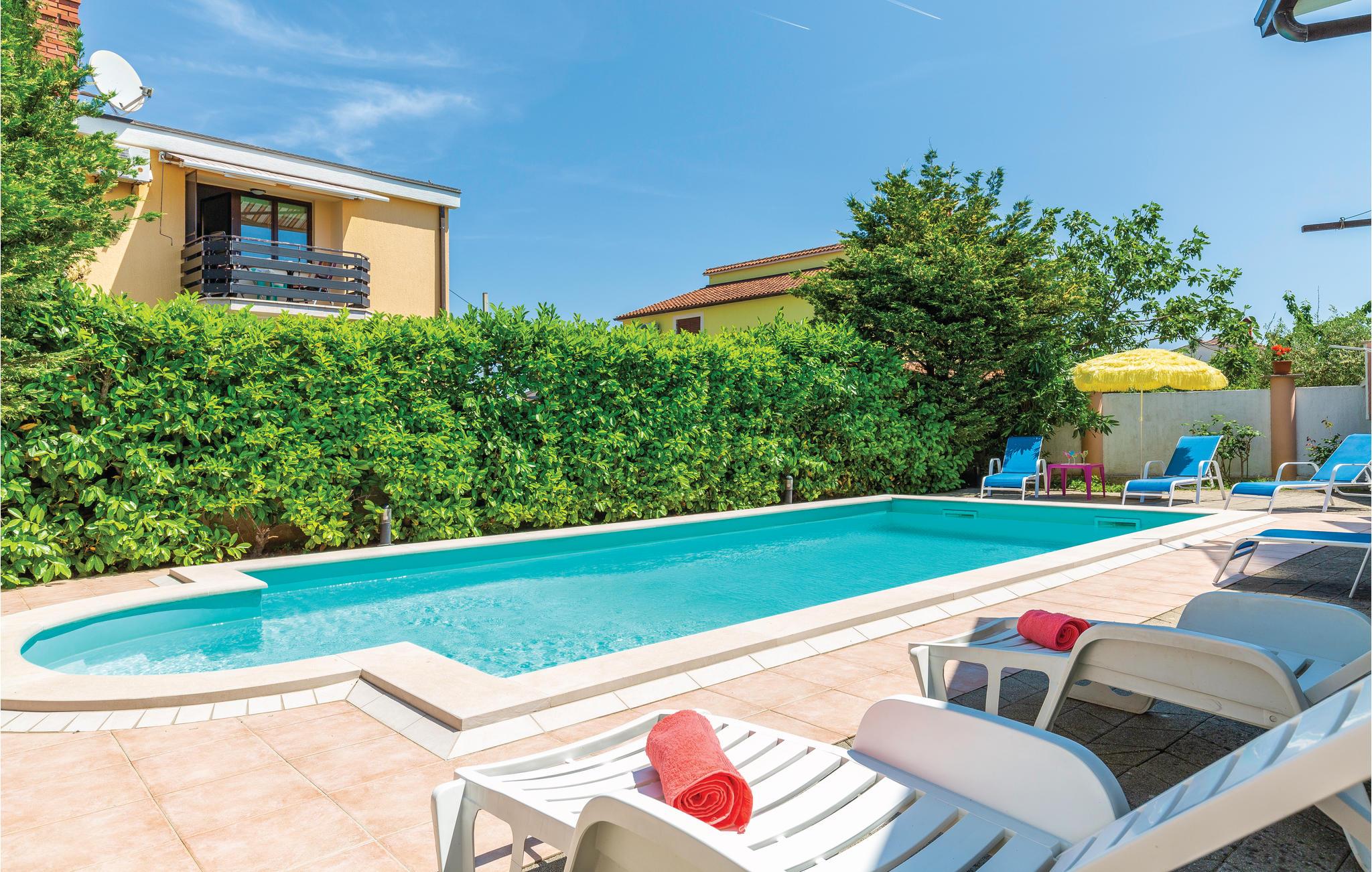 Har I altid drømt om at tilbringe jeres ferie i en ægte fiskerlandsby? Så har I muligheden her. Dette smukt indrettede feriehus ligger i den lille by Pomer, der trods nutidens dynamiske liv har bevaret sit varme og venlige præg. Huset er helt ideelt til en afslappende ferie for gode venner eller familien. Den indhegnede og flot beplantede have byder på masser af plads til leg og spil, og også swimmingpoolen sørger på varme dage for velgørende afkøling. Kun ca. 500 m fra huset ligger en campingplads med et offenligt tilgængeligt fitnessanlæg samt tennis- og volleyboldplads.
