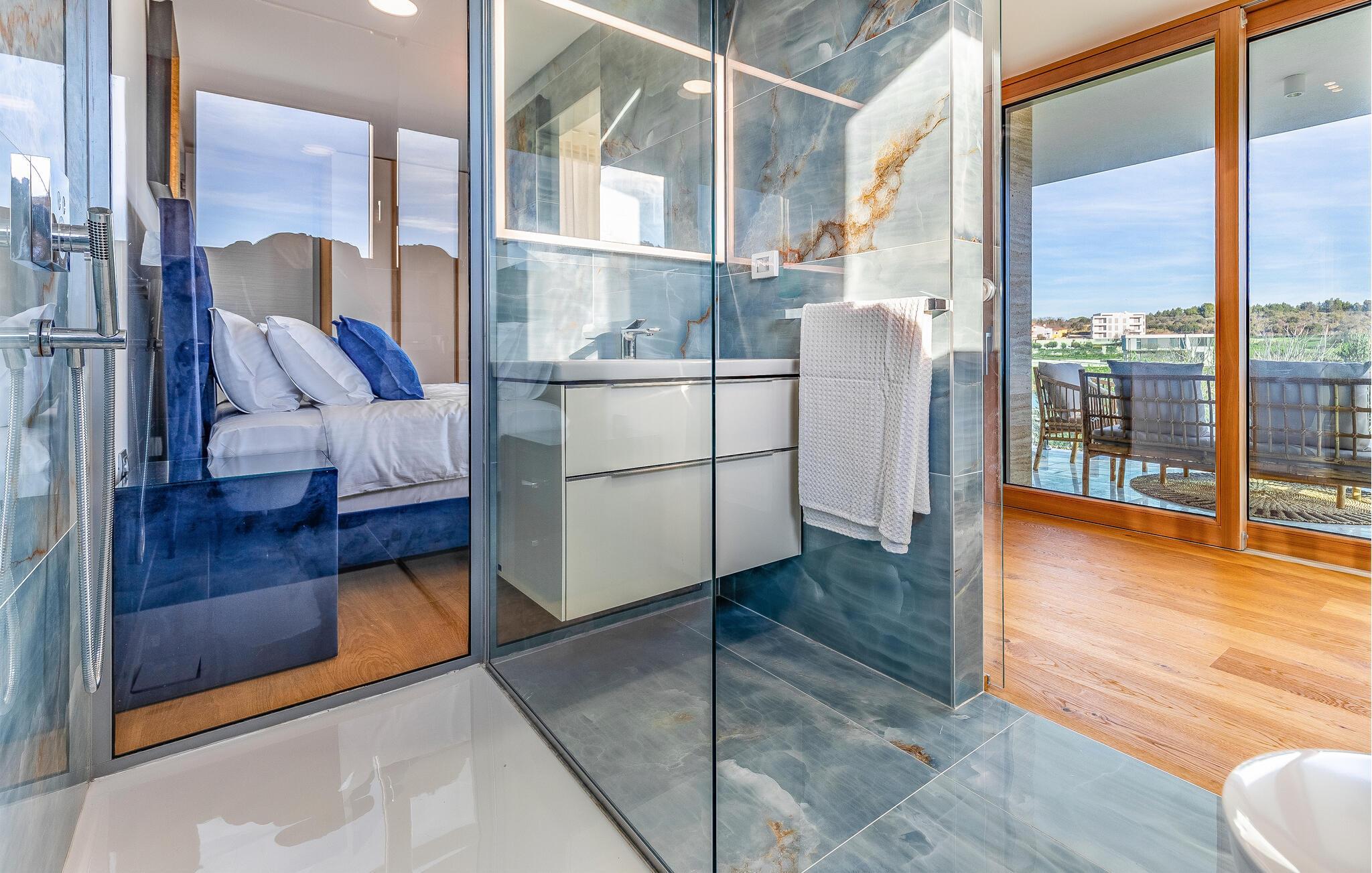 Det attraktive og store hus byder jer velkommen med en fremragende beliggenhed ved havet og er omgivet af et malerisk landskab. Indenfor går høj komfort, moderne æstetik og funktionalitet op i en højere enhed, og der er plads til den helt store familiekomsammen eller flere familier, der rejser sammen. Her står hyggeligt samvær og fælles aktiviteter på programmet. Slap af i saunaen og boblebadet efter en aktiv dag i naturen og spis sammen ved det lange spisebord. Tilbring dejlige timer på terrasserne, hvor I kan nyde solen og de lange sommeraftener. Spis jeres måltider udenfor og læn jer tilbage i boblebadet med en skøn udsigt.