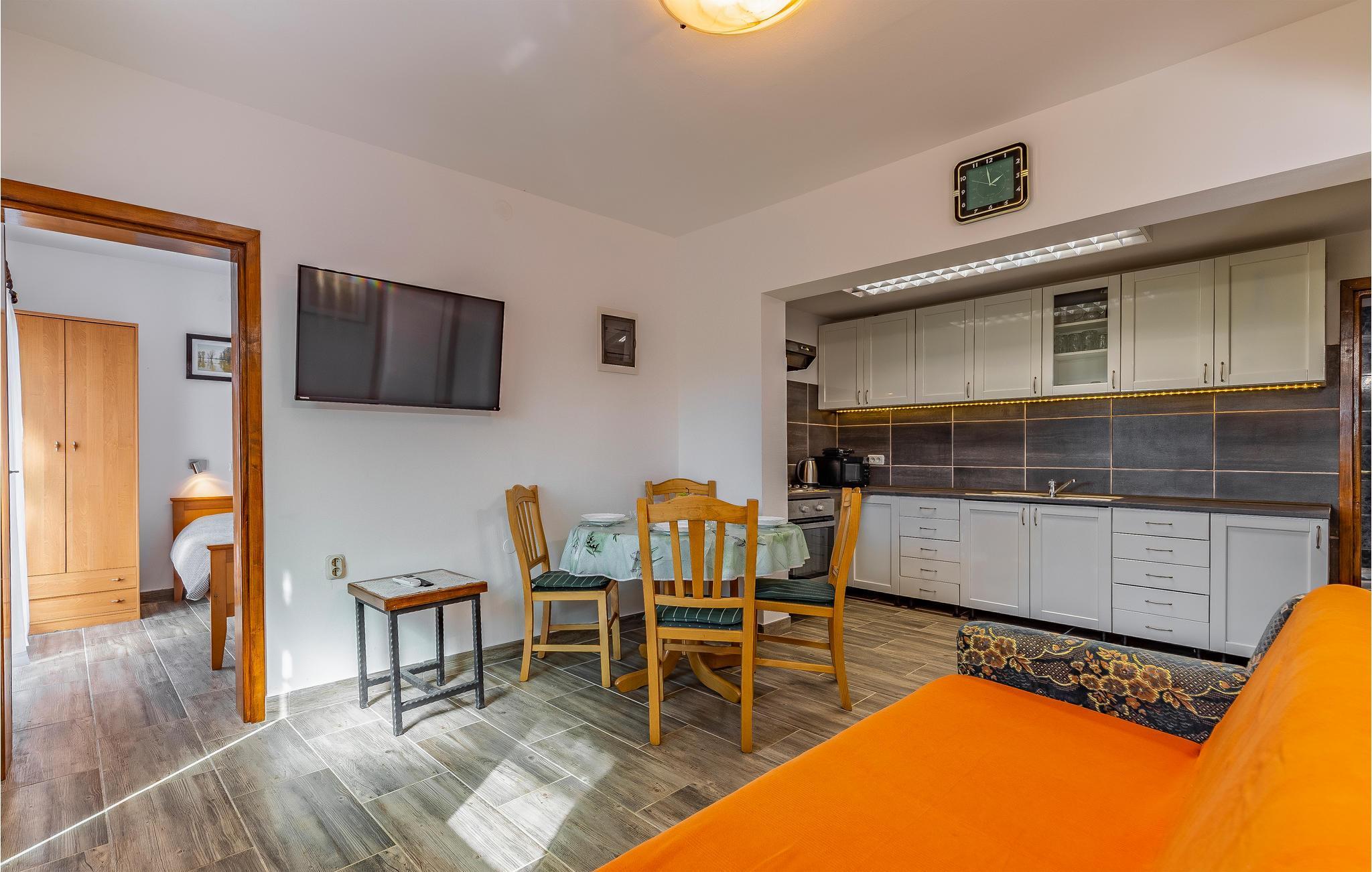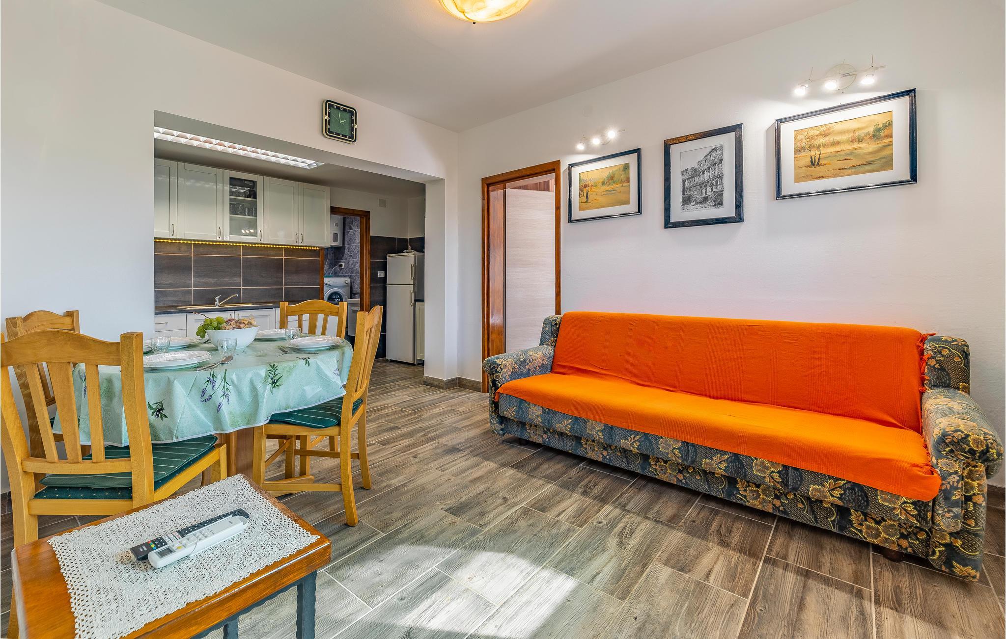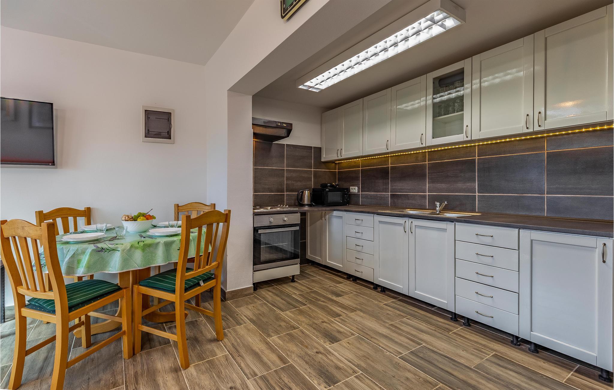 Rejs til Pomer med din familie og slap af i dette hyggelige feriehus. Dette dobbelthus tilbyder dig og din familie det ideelle udgangspunkt for dine aktiviteter i Istrien. Indenfor finder du gode faciliteter, der lover dig alt, hvad du behøver for en ubekymret ferie. Fremtryll dine yndlingsretter i køkkenet eller slap af i sofaen om aftenen med en film. Terrassen er også et rart sted at gennemgå dagen og planlægge nye aktiviteter med et glas vin. Det familievenlige Medulin byder på lange flade strande og mange muligheder for fritidsaktiviteter. Gå eller cykl langs den smukke havnepromenade for at opdage byen. Solbad på strandene og svøm i det krystalblå vand. For mere aktive feriegæster er der talrige muligheder for vandsport. Du kan også besøge Kamenjak Nature Park nær Premantura eller tage en tur til nærliggende Pula, som tiltrækker med sine attraktive seværdigheder. Her kan du også nyde de mange butikker og den rige gastronomi. God fornøjelse på Istrien-halvøen!