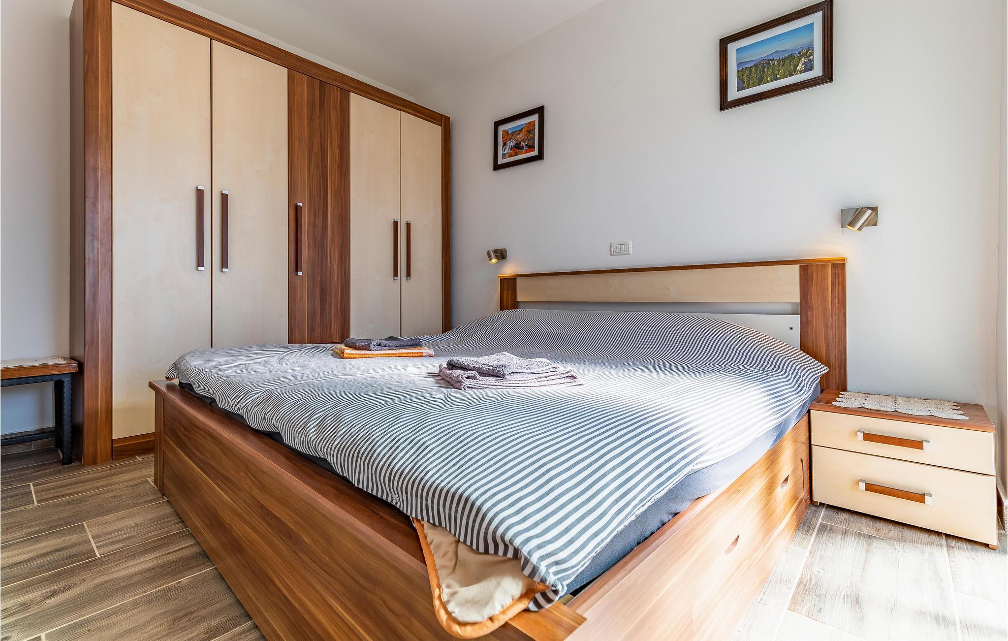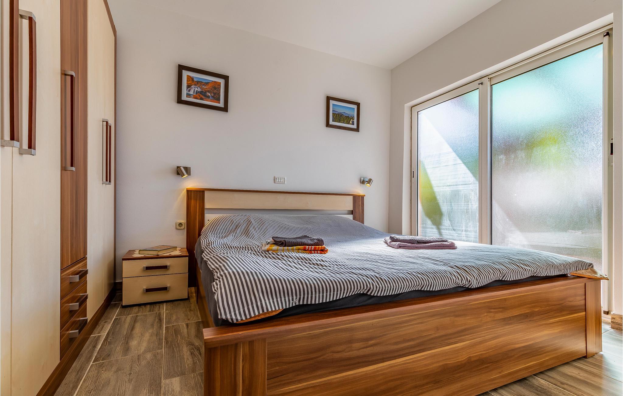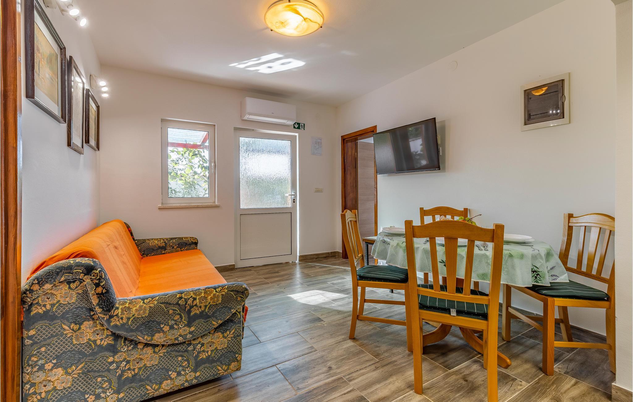 Rejs til Pomer med din familie og slap af i dette hyggelige feriehus. Dette dobbelthus tilbyder dig og din familie det ideelle udgangspunkt for dine aktiviteter i Istrien. Indenfor finder du gode faciliteter, der lover dig alt, hvad du behøver for en ubekymret ferie. Fremtryll dine yndlingsretter i køkkenet eller slap af i sofaen om aftenen med en film. Terrassen er også et rart sted at gennemgå dagen og planlægge nye aktiviteter med et glas vin. Det familievenlige Medulin byder på lange flade strande og mange muligheder for fritidsaktiviteter. Gå eller cykl langs den smukke havnepromenade for at opdage byen. Solbad på strandene og svøm i det krystalblå vand. For mere aktive feriegæster er der talrige muligheder for vandsport. Du kan også besøge Kamenjak Nature Park nær Premantura eller tage en tur til nærliggende Pula, som tiltrækker med sine attraktive seværdigheder. Her kan du også nyde de mange butikker og den rige gastronomi. God fornøjelse på Istrien-halvøen!
