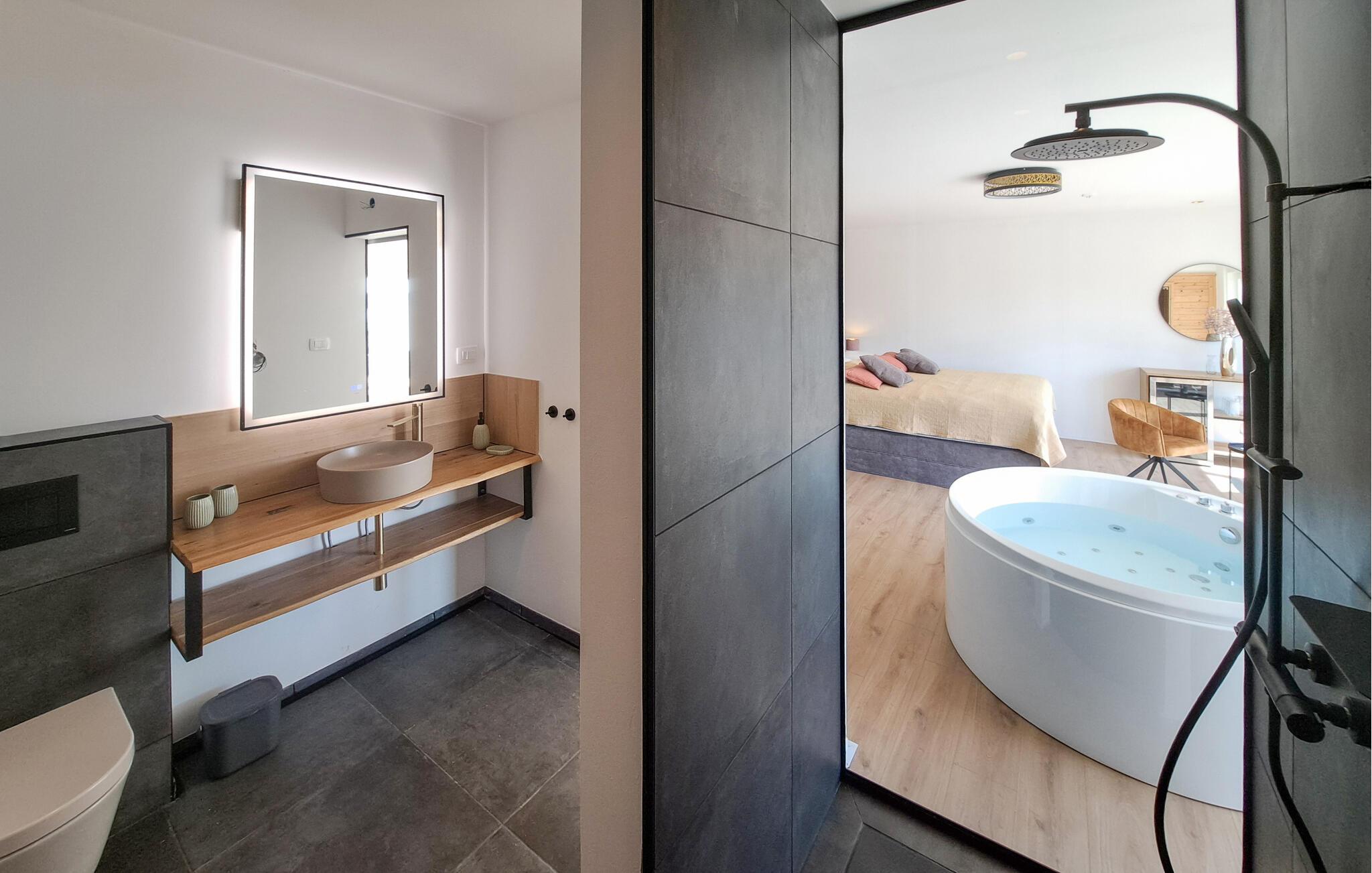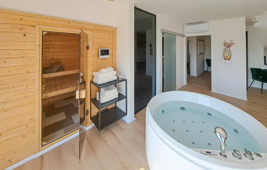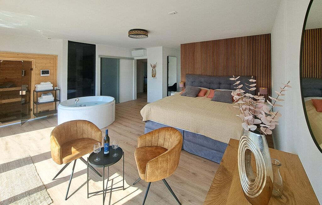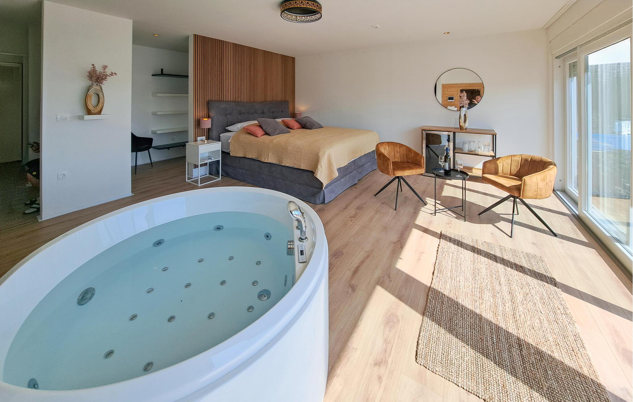 Forkæl jer selv med en afslappende ferie for to i dette moderne hus med pool, god wellness og en smuk udsigt over havet.