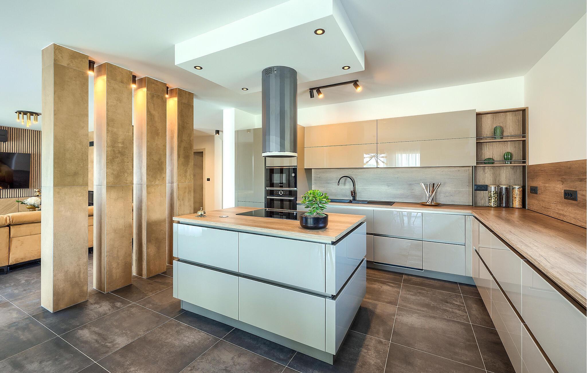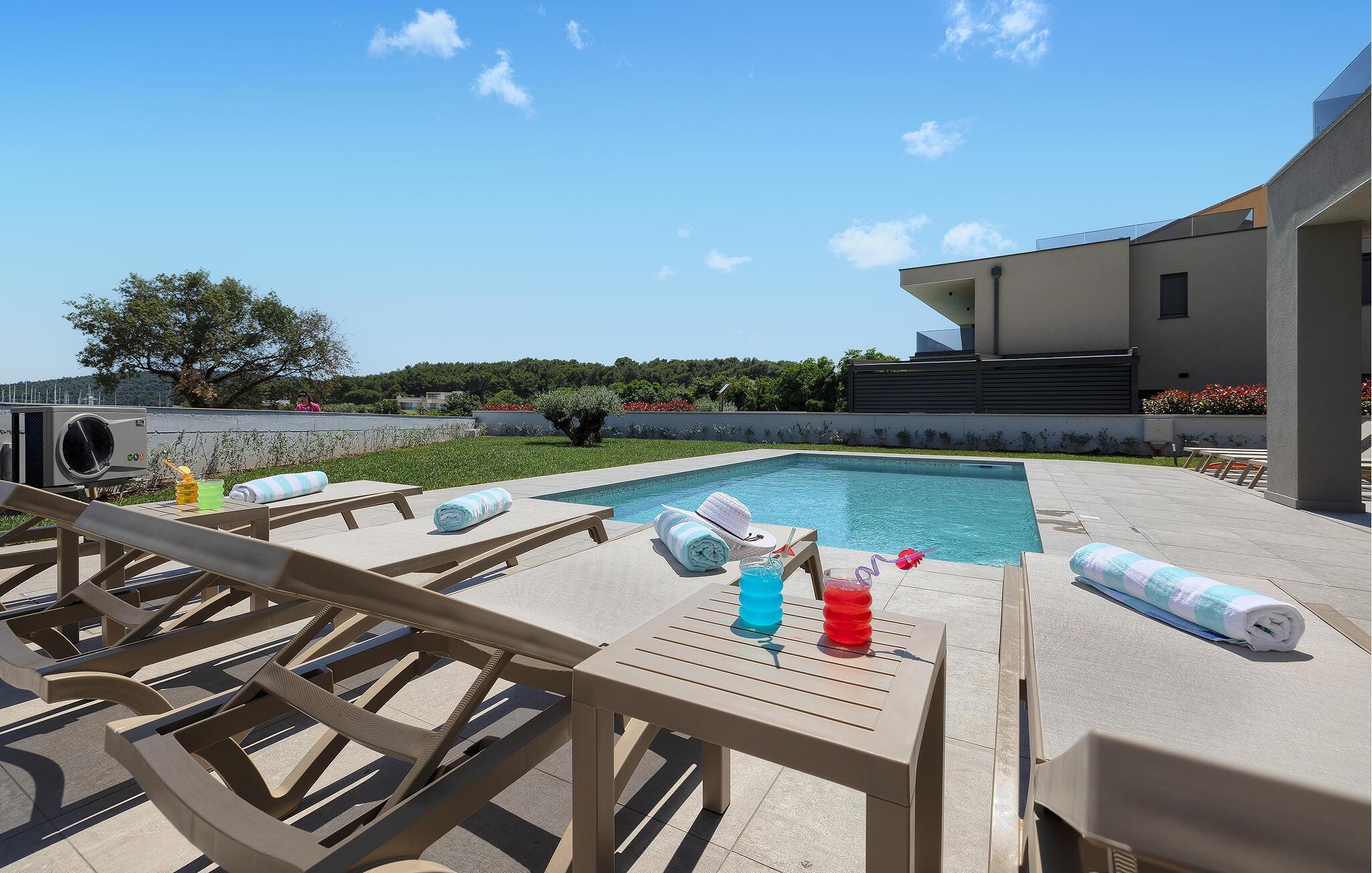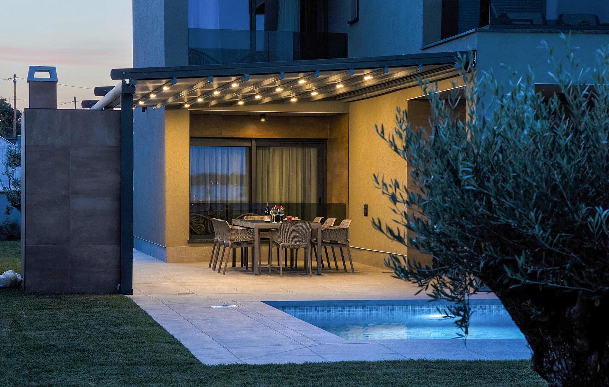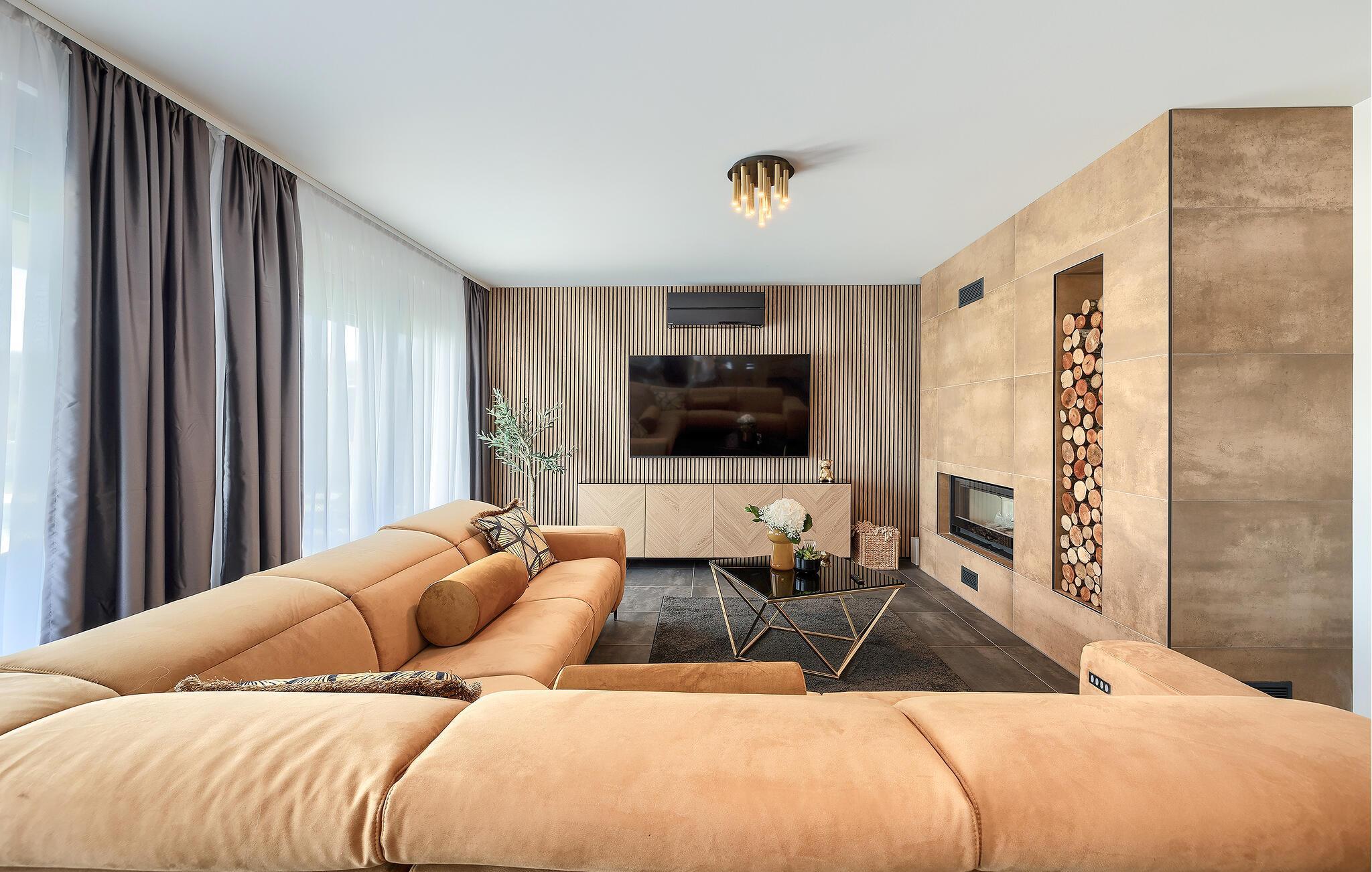 Brug det stilfulde udendørsområde til hyggelige timer i skyggen af den overdækkede lounge. Tilbered en lækker grillmiddag i det moderne udekøkken og nyd jeres måltider udendørs, mens skumringen bader omgivelserne i varme farver. Inde i villaen finder I en rummelig opholdsstue, der har en skøn elegant indretning og moderne design. Slå jer ned i den store, komfortable sofa og sæt en god film på eller slap af med et glas vin. Det åbne, fuldt udstyrede køkken giver jer alt, hvad I skal bruge for at tilberede kulinariske delikatesser med familien.