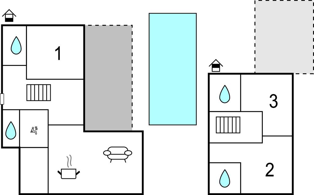 Soveværelse (nr. 1) - 1 Soveplads. (Enkeltseng(e)). 2 Sovepladser. (Dobbeltseng(e)).