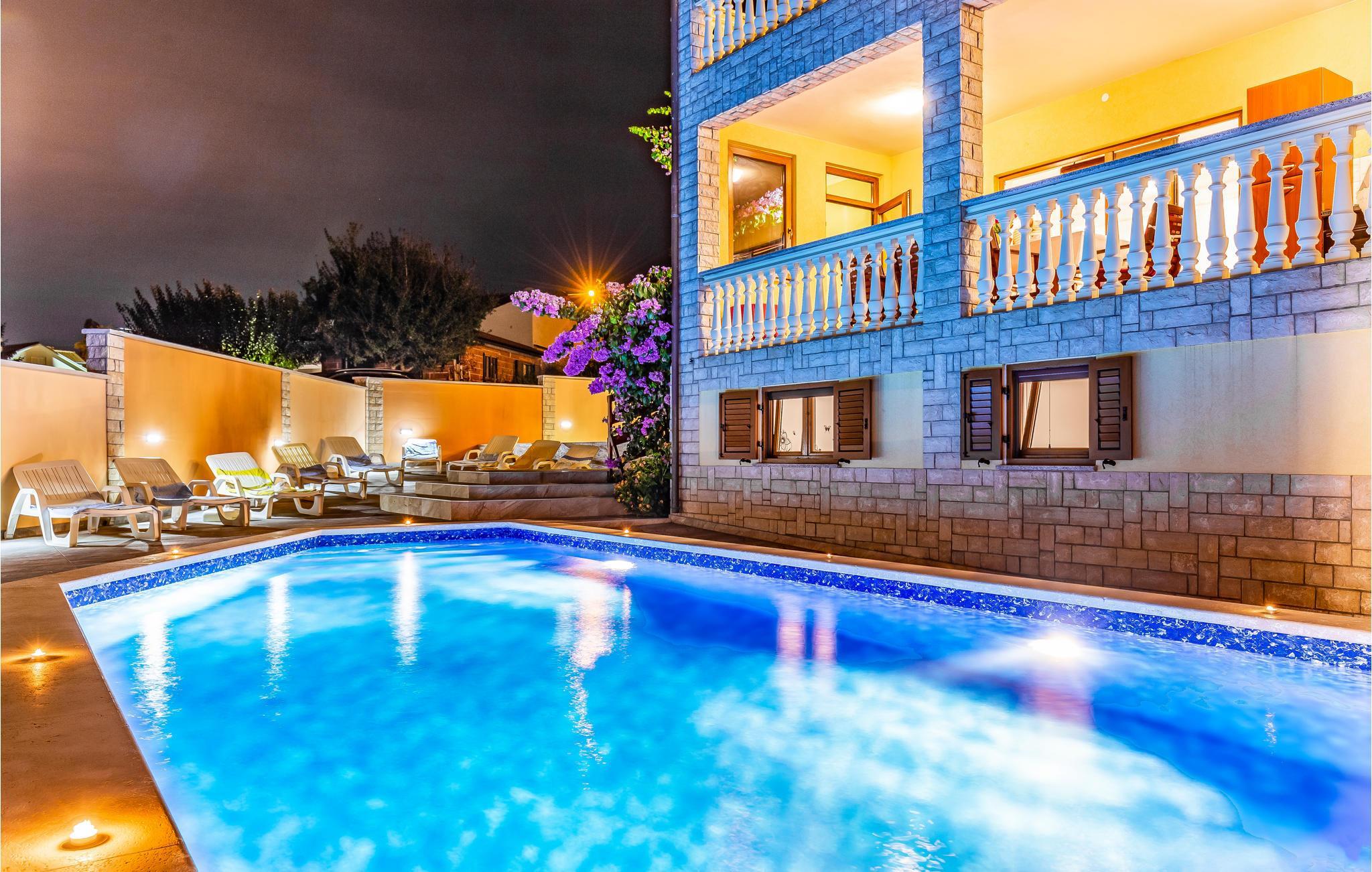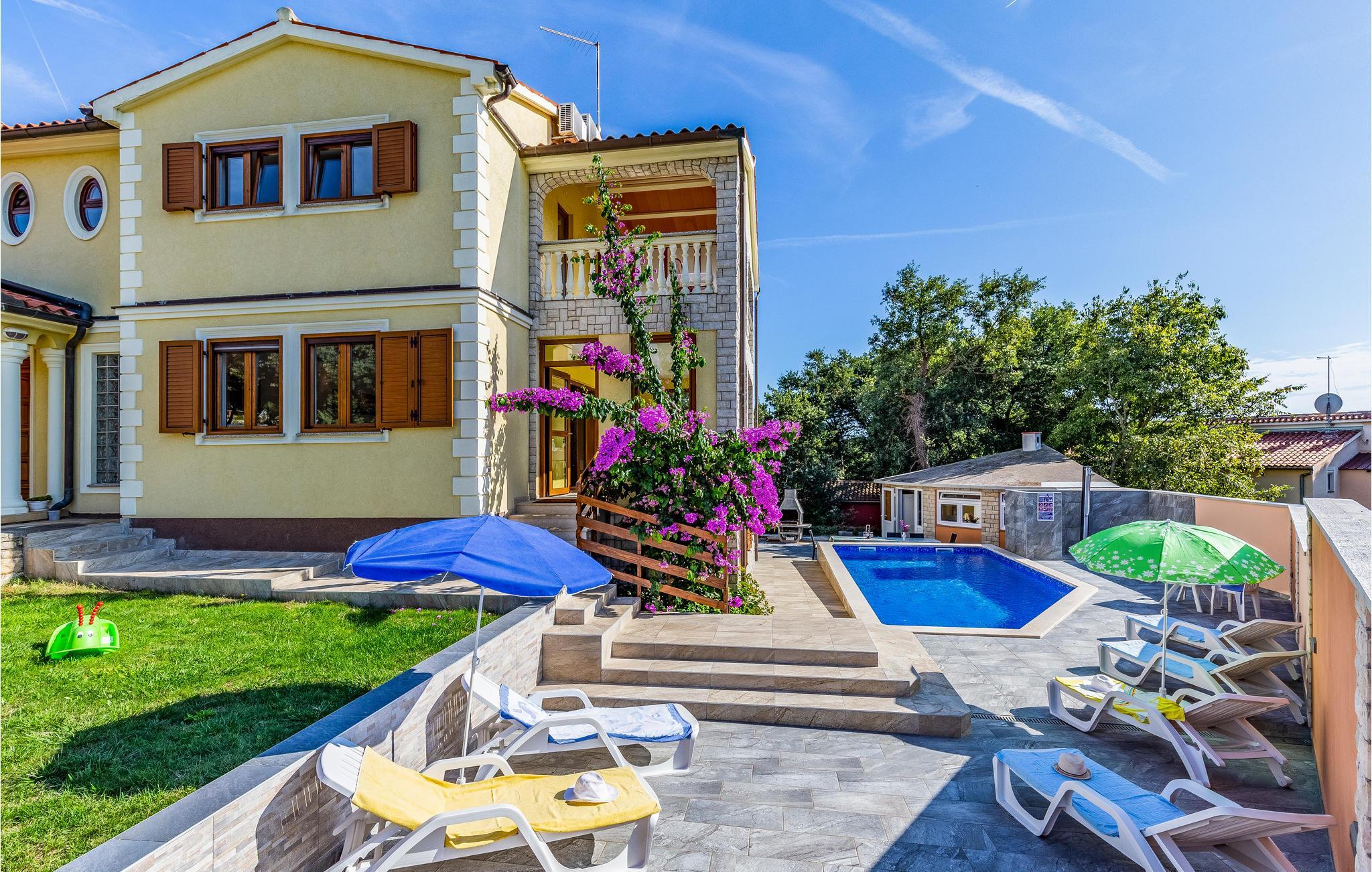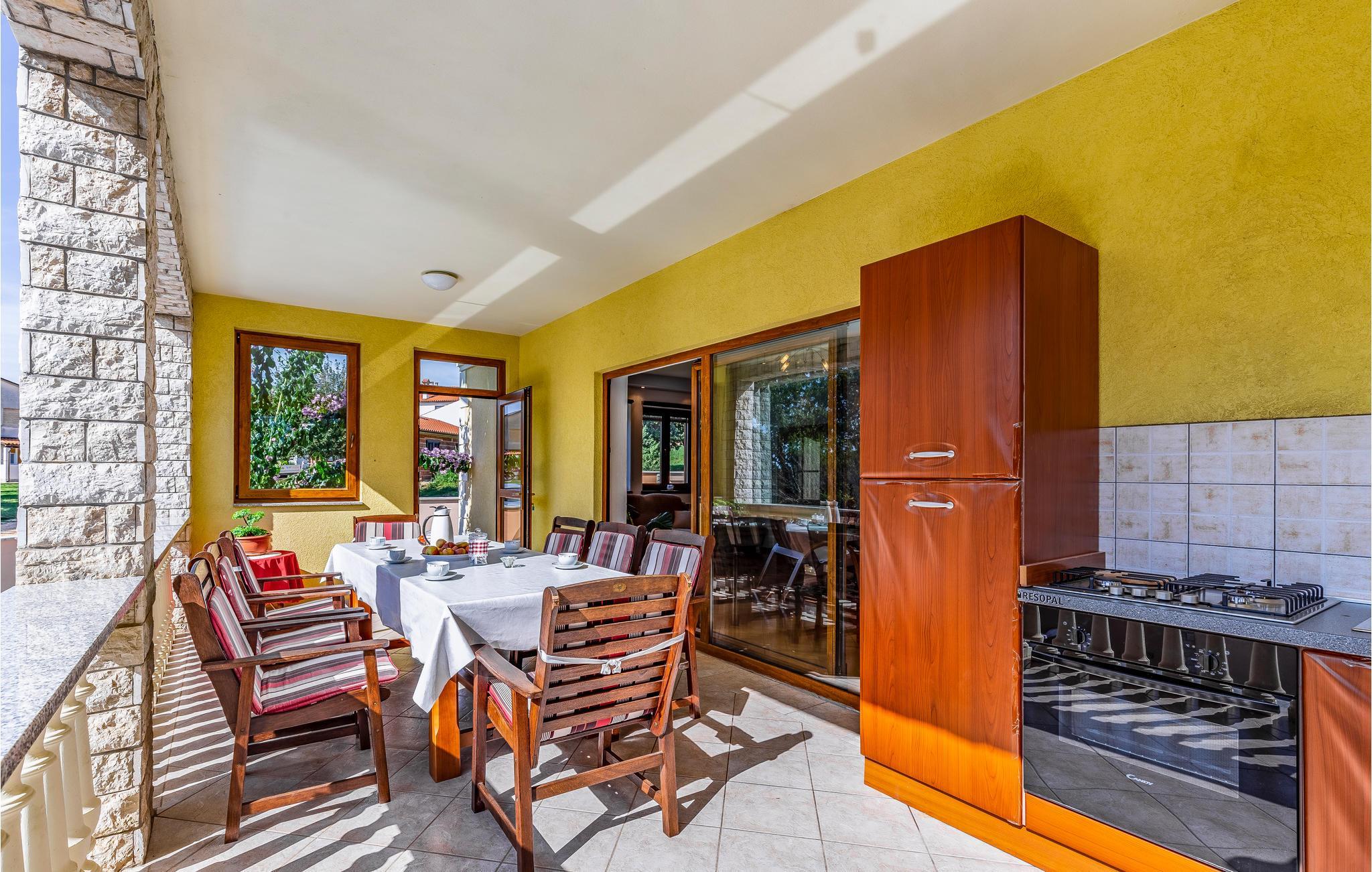 Dette rummelige feriehus har den populære ferieby Medulin og forkæler jer med et rummeligt, komfortabelt interiør og adskillige ekstrafunktioner, som I vil nyde selv med en større familie eller en gruppe venner. Nyd hyggelige måltider og muntre spilleaftener, mens I snakker om svundne tider, mens andre spiller fodbold eller rører i træskeen.