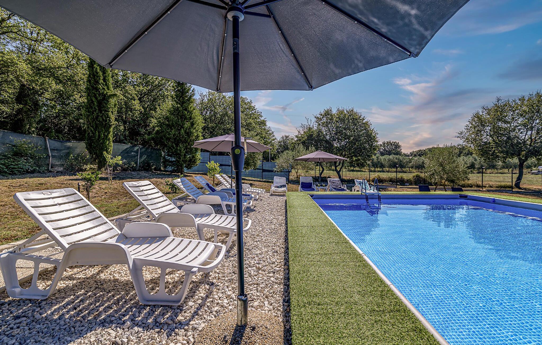 Dette lyse og komfortable feriehus byder velkommen uden for Medulin. Det indbydende hus består af to separate etager, som er forbundet med en udvendig trappe. Huset er derfor ideelt for to familier, der rejser sammen, og som værdsætter deres privatliv. Den moderne indretning og de gode faciliteter vil gøre jeres feriedage behagelige. Sæt jer på altanen eller terrassen om morgenen og mærk de første solstråler på jeres hud. Efter morgenmaden kan I alle boltre jer i poolen og solbade.