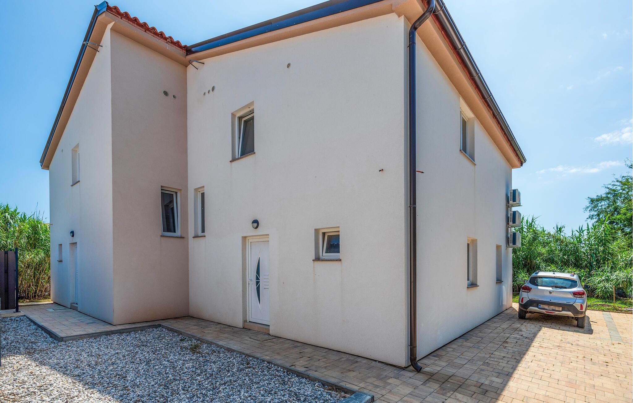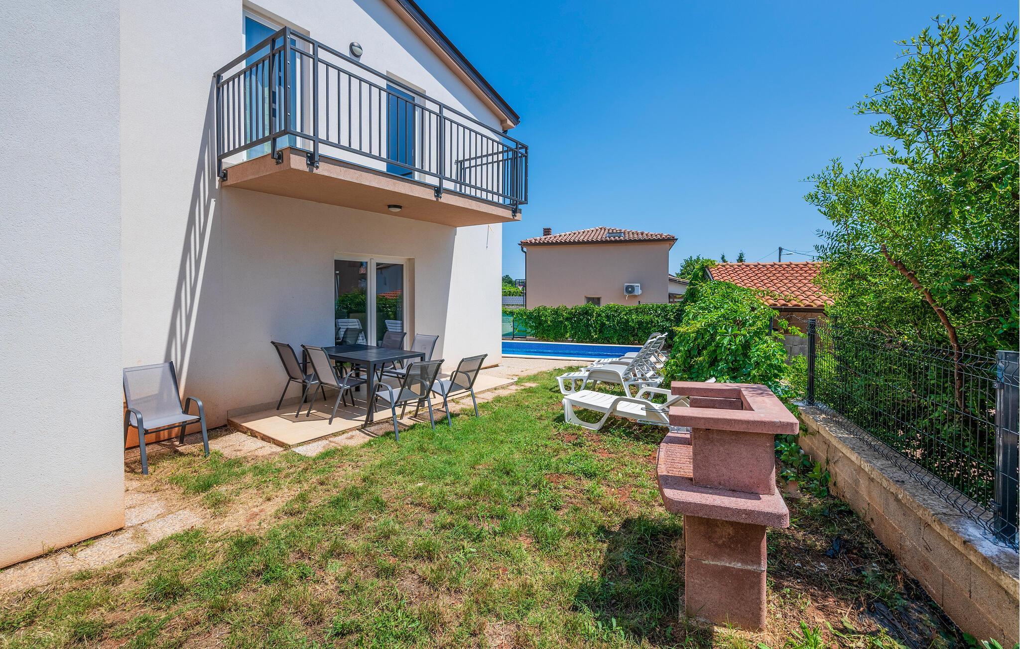 Dette moderne feriehus har en rolig beliggenhed og giver jer det optimale udgangspunkt for at udforske både den historiske by Pula og den charmerende kystby Medulin. Begynd jeres dage med en dukkert i den private pool omgivet af komfortable liggestole. Nyd solen, mens I slapper af på terrassen eller nyder en lækker morgenmad under åben himmel. Tilbered jeres måltider i det praktisk udstyrede køkken. Den rummelige stue giver jer masser af plads til at slappe af. Læn jer tilbage i den komfortable sofa og nyd freden og roen eller se en film i denne indbydende atmosfære.