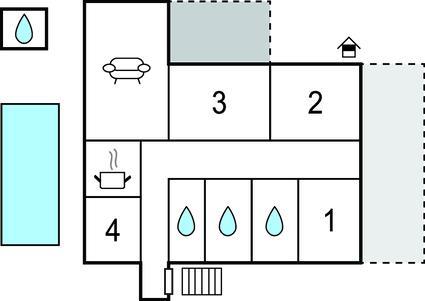 Badeværelse 6m2 (nr. 1) - WC. Varmt og koldt vand. Bruser