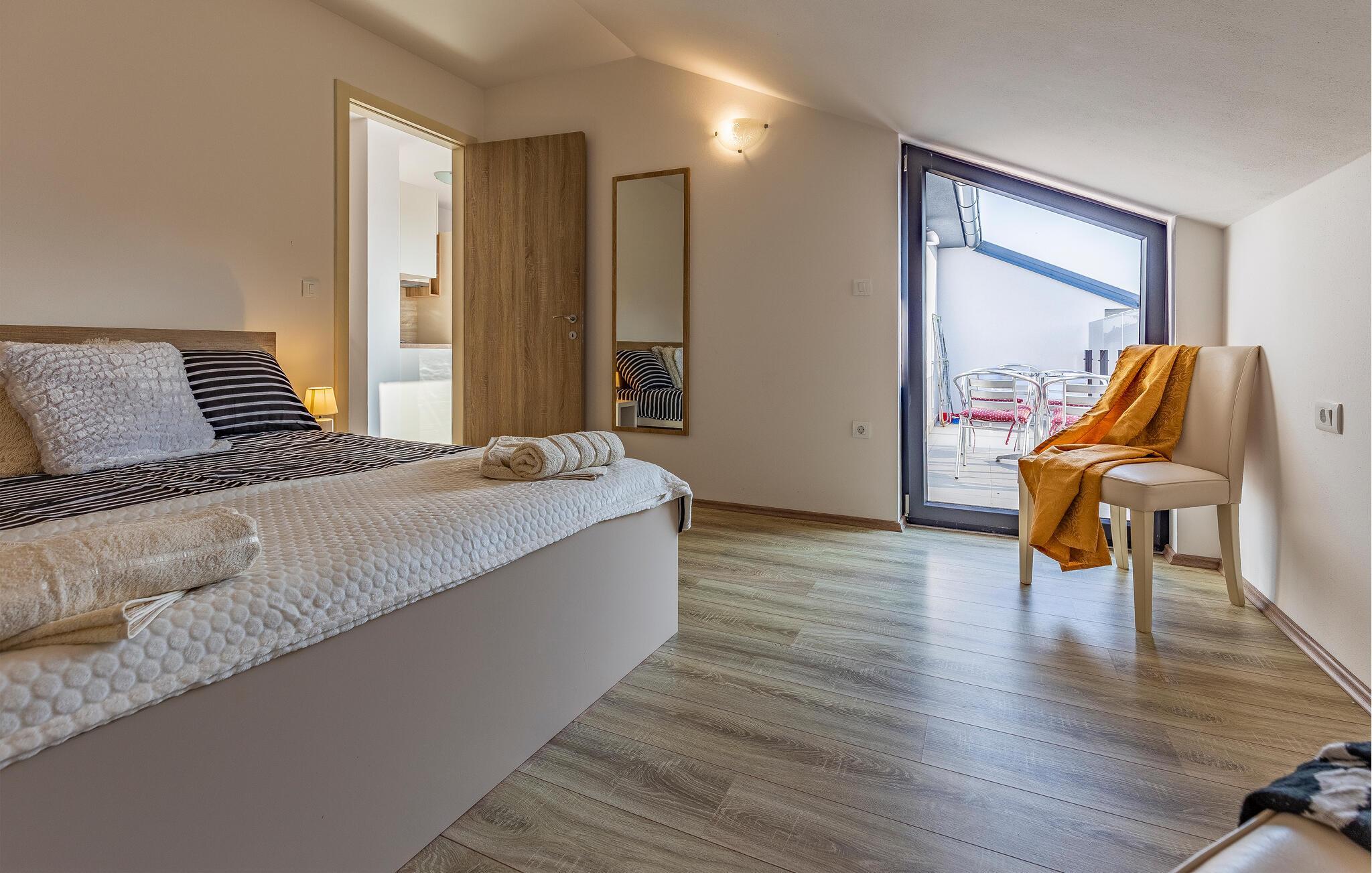 Denne hyggelige og komfortable ferielejlighed har et moderne interiør i den populære kystby Medulin – nogle få skridt fra sandstranden. Tilbered lækre måltider i det åbne køkken og slå jer ned ved spisebordet, hvor I kan planlægge jeres aktiviteter i fred og ro over afslappende måltider. Efter en lang dag inviterer den komfortable sofa jer til at slappe af foran fjernsynet.
