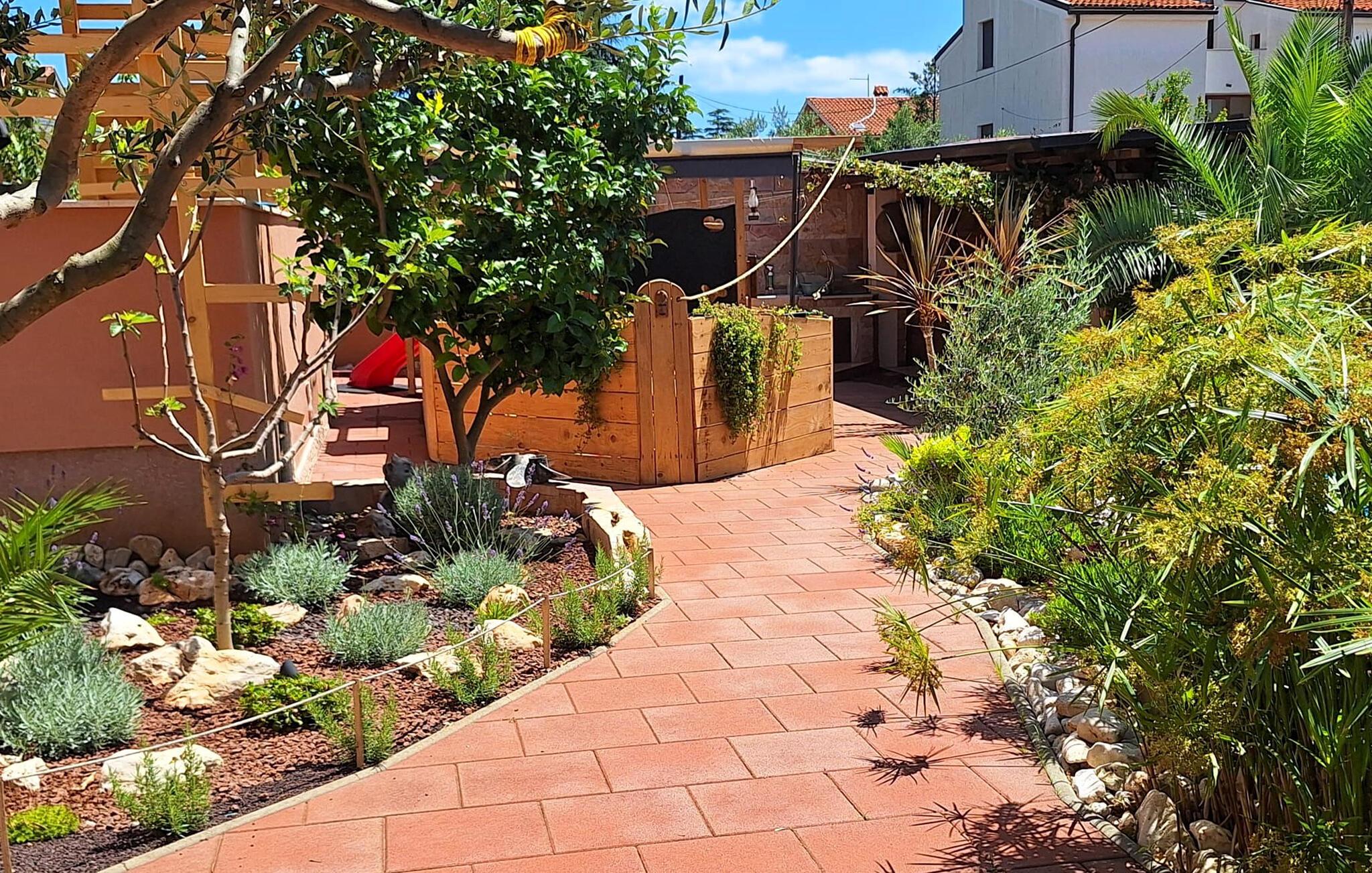 Hold en skøn ferie i denne moderne ferielejlighed med pool og smuk have.