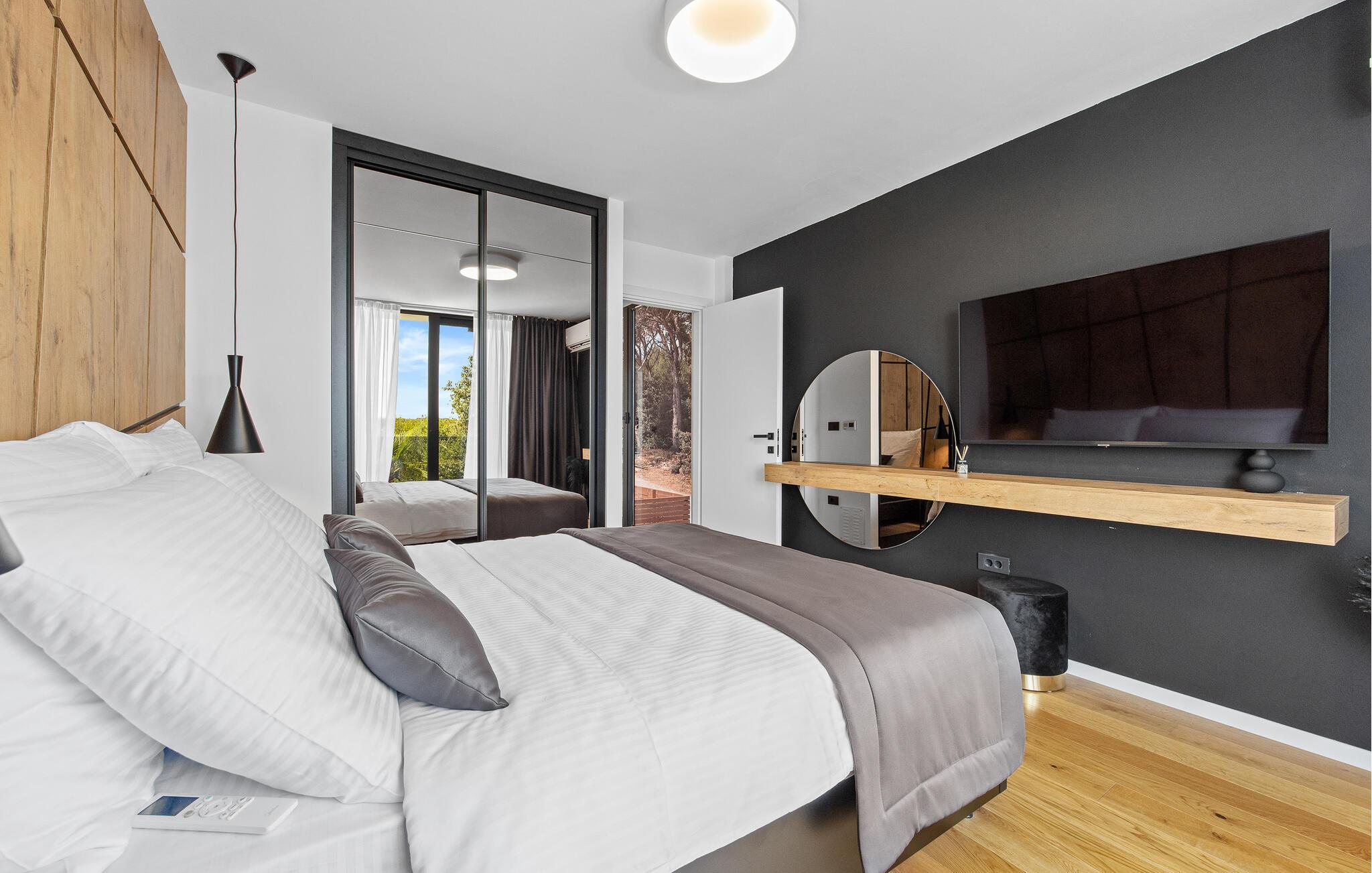 Dette moderne designerhjem vil glæde jer med sin enestående arkitektur, elegante møbler og adskillige faciliteter. Hold at tilberede lækre måltider i køkkenet af høj kvalitet med et glas vin, tænd brændeovnen og tag plads i den stilfulde spiseplads. Tilbring afslappende stunder i saunaen og glæd jer til afslappende filmaftener i den store stue, hvor rummelige vinduesfronter giver udsigt til den stemningsfuldt oplyste pool.