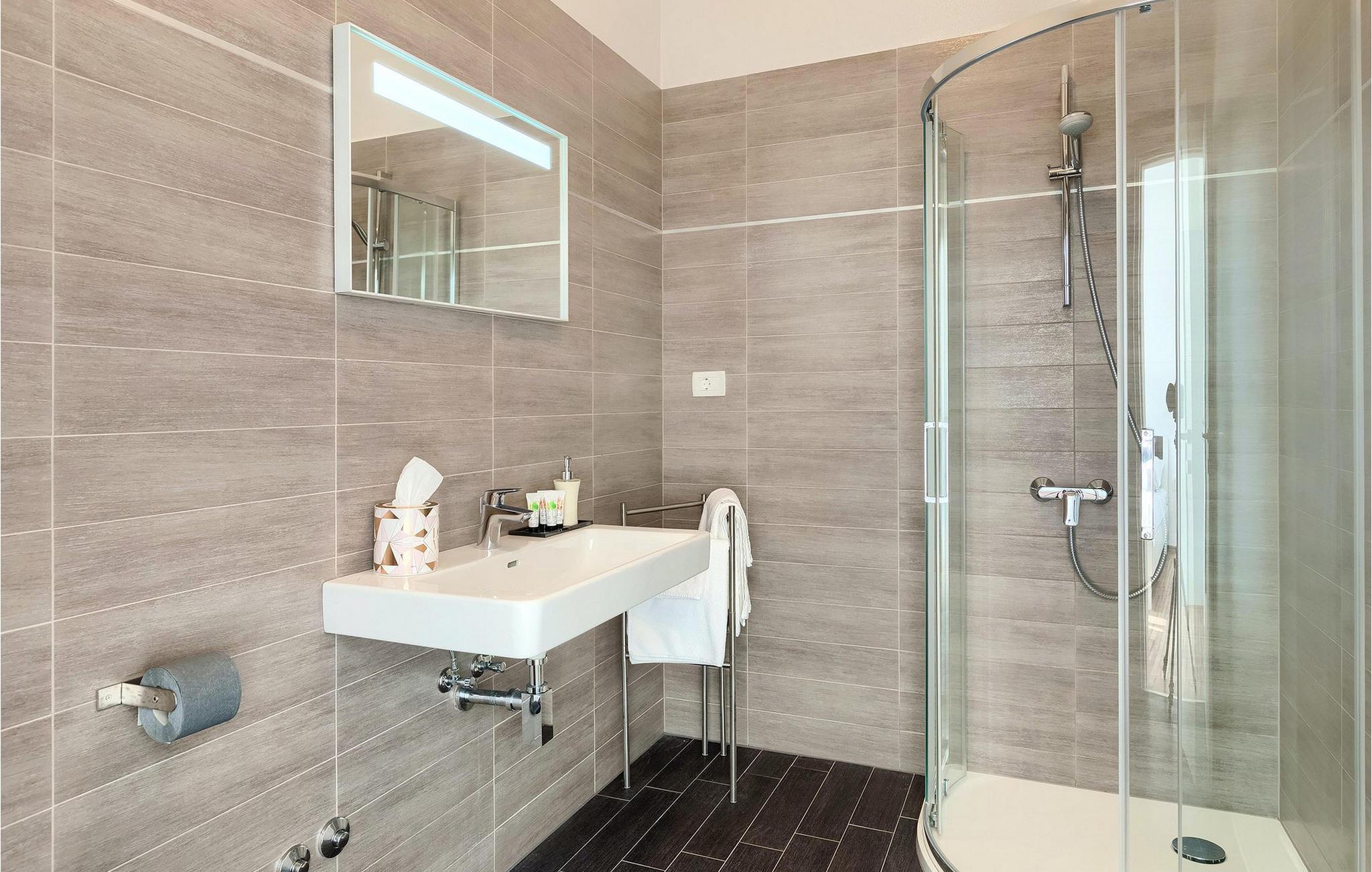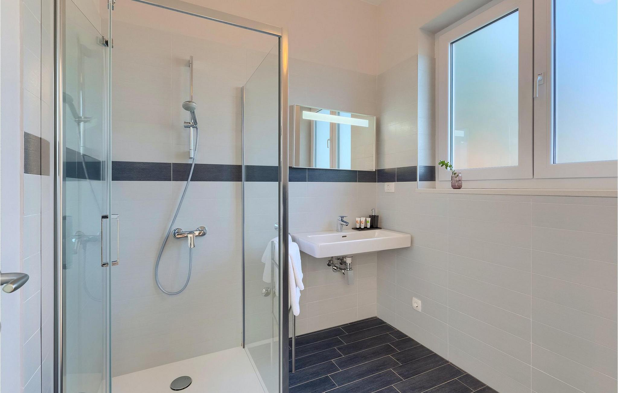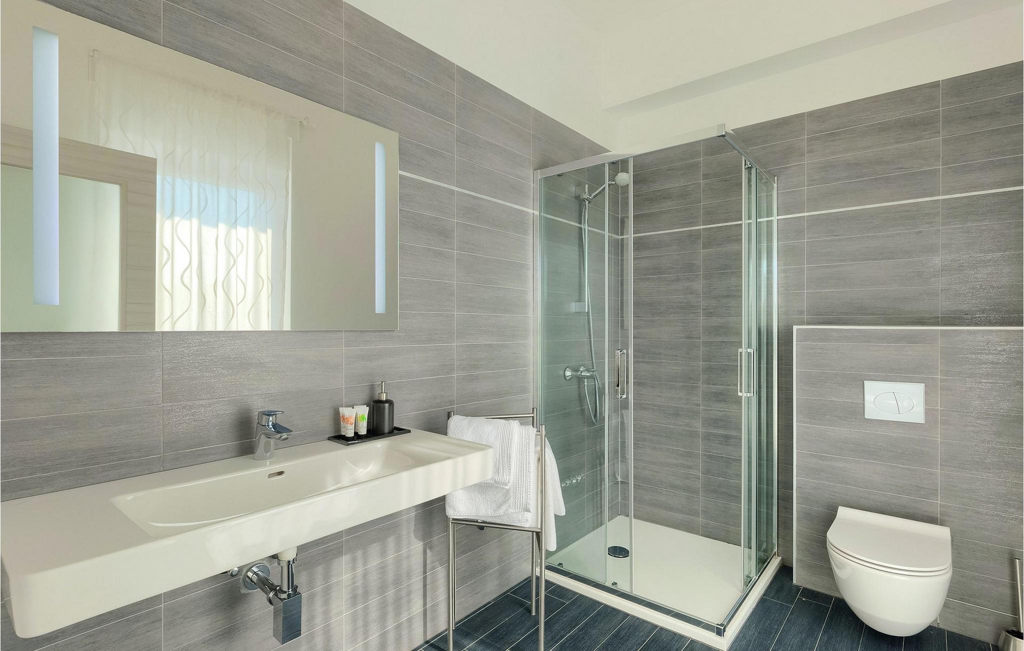 Badezimmer (nr. 3) - WC. Warmes und kaltes Wasser. Dusche