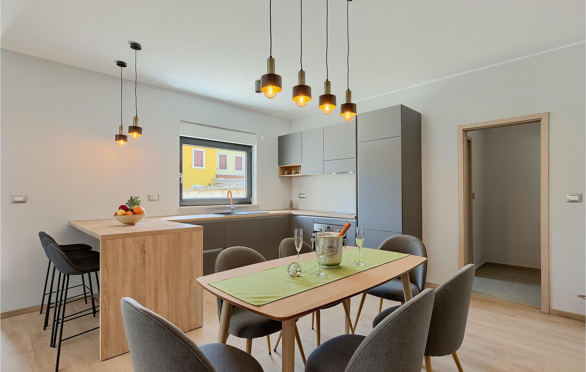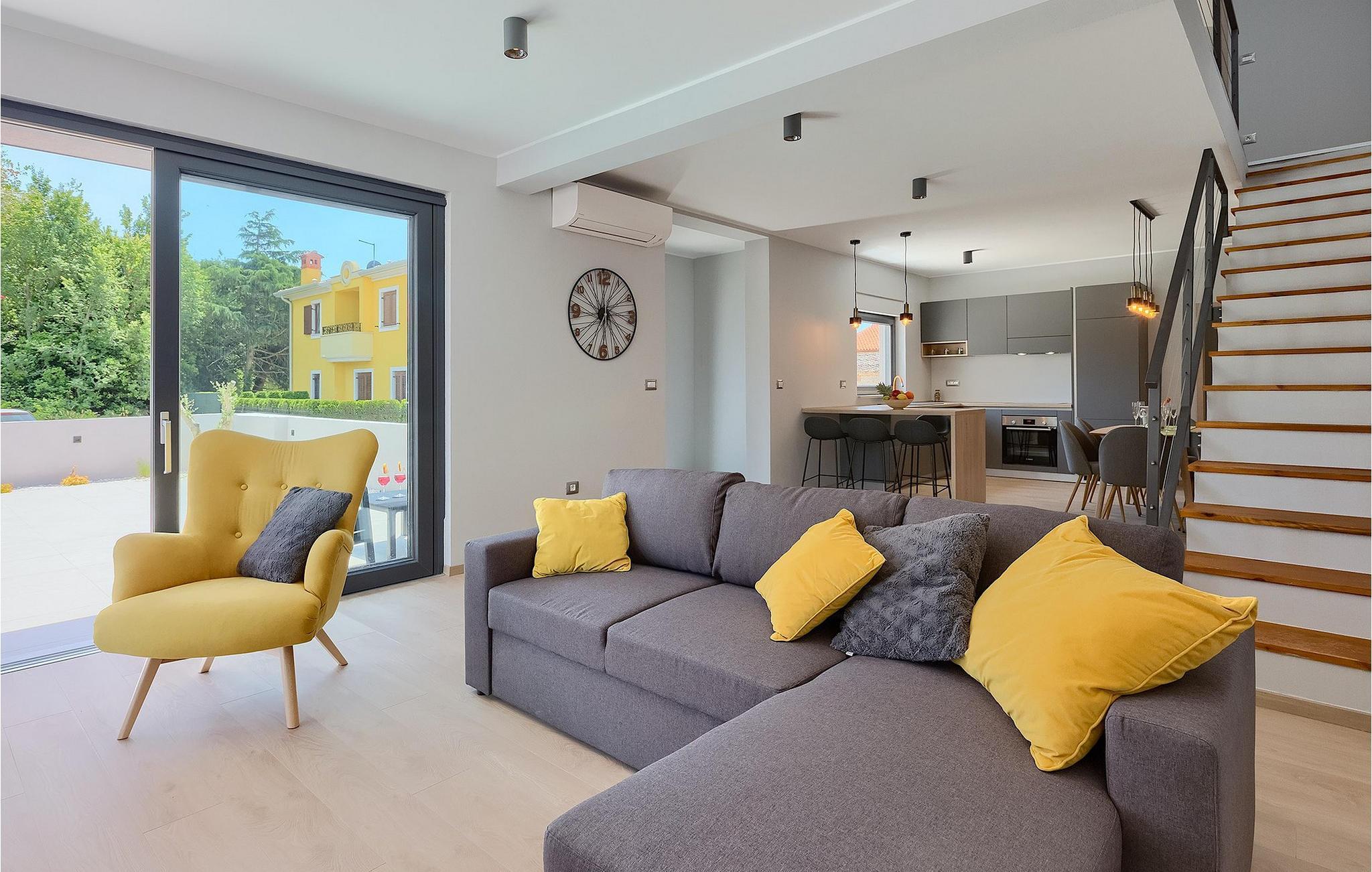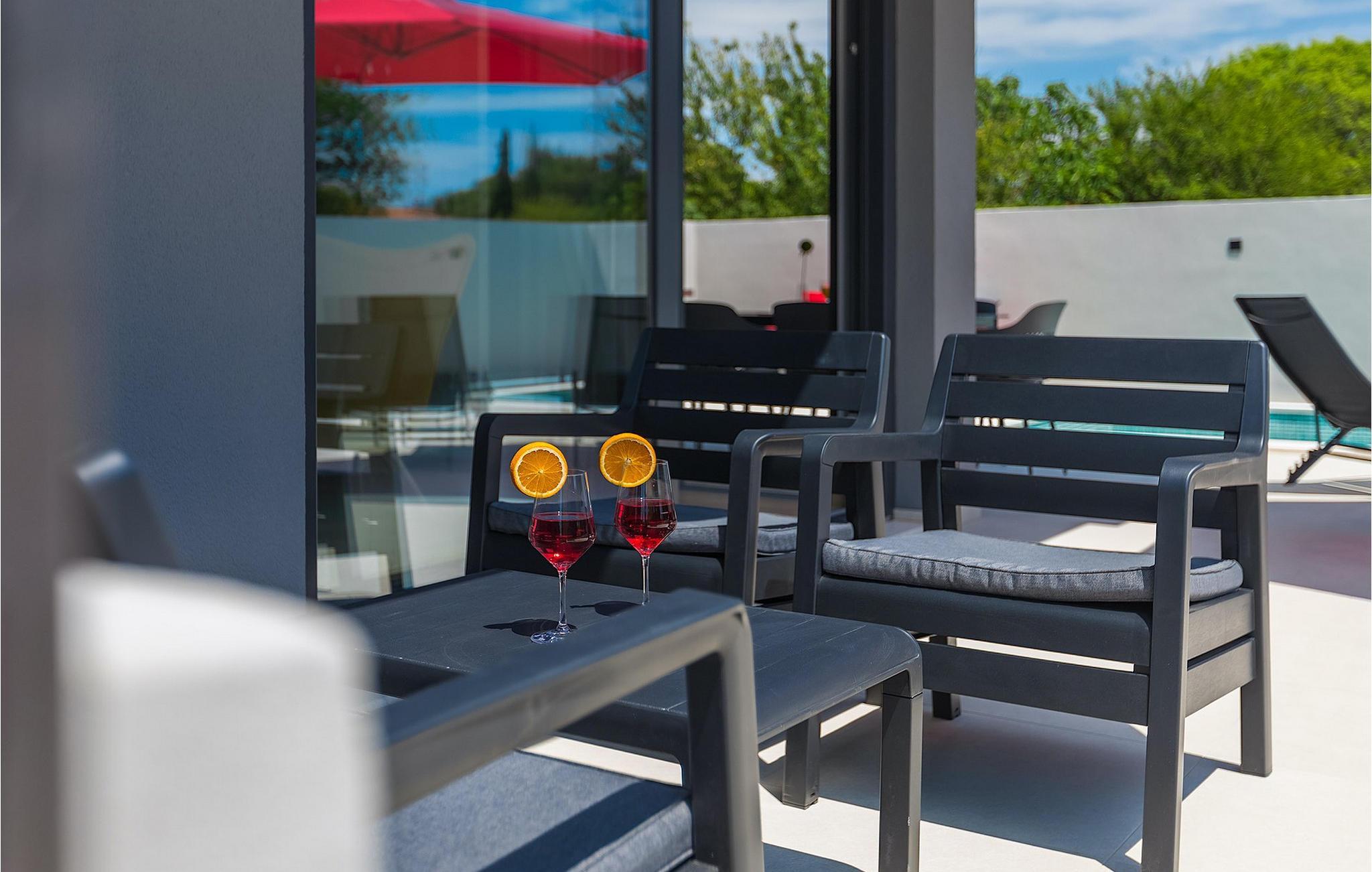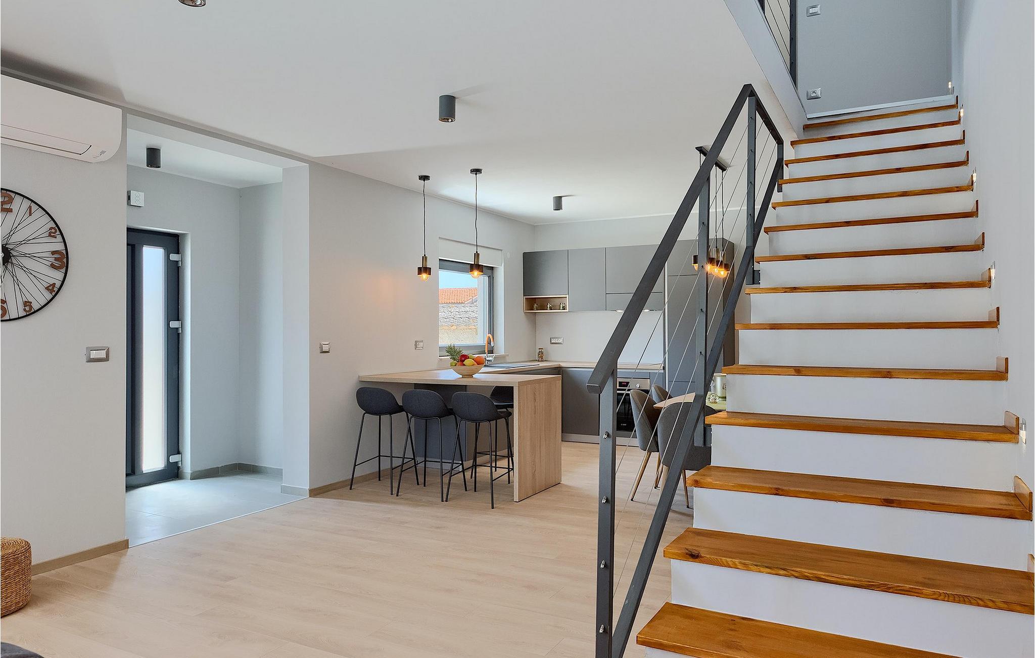Den moderne Villa Gabriel ligger i den lille landsby Banjole nær Pula. På grund af sin perfekte beliggenhed er strande, restauranter og caféer inden for nem gåafstand. Stueetagen består af en åben plan stue, spisestue og køkken område og et badeværelse. Møbleringen er valgt i enkle farver med en beroligende effekt, men du vil også fange et par spændende farvestænk i ny og næ. Det fuldt udstyrede køkken byder på masser af plads til at tilberede lækre specialiteter og derefter tilbringe tid sammen ved spisebordet. Mens du slapper af efter frokost, kan du nyde udsigten til den private udendørs pool fra den hyggelige stue, som er perfekt til forfriskning på varme sommerdage. Der er liggestole og en parasol omkring poolen. Fra stuen er der udgang til terrassen, hvor I finder spiseplads og gasgrill, som lover uforglemmelige grillaftener. På villaens 1. sal er der to hyggelige soveværelser med ensuite badeværelser. Villaen har aircondition, og privat parkering og internetadgang er også tilgængelig. Ejendommen er fuldt indhegnet. Villa Gabriel nær stranden er det perfekte valg til at undslippe din daglige rutine og tilbringe en drømmeferie. Villa Gabriel er beliggende i en lille ferieby Banjole, kun en kort gåafstand fra stranden.