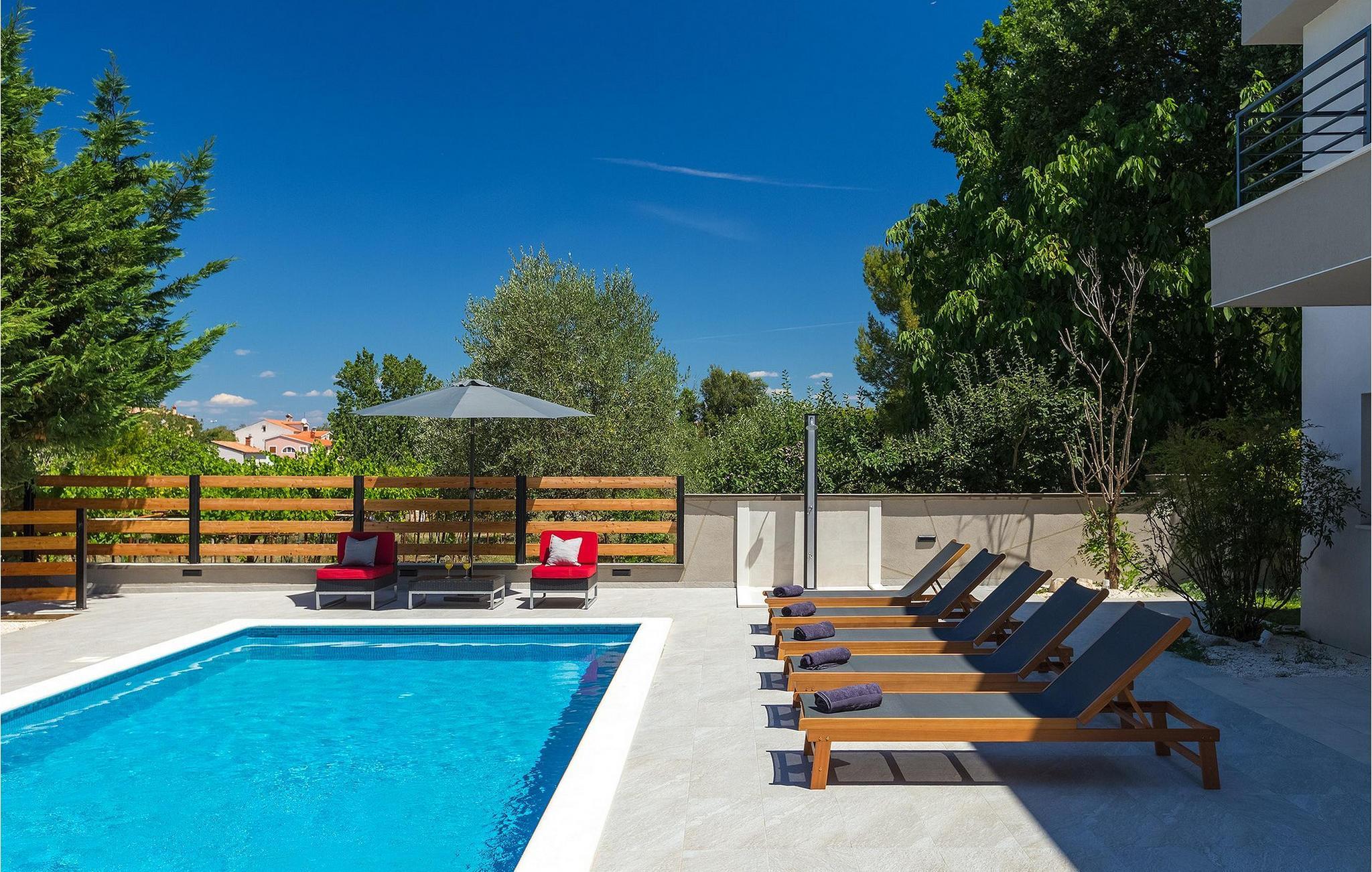Start din dag med en lækker morgenmad på det fri på det udendørs spisebord eller nyd din morgenkaffe i den solrige lounge ved siden af poolen. Tag en dukkert i den attraktive private pool i Villa Stribor eller nyd solen på de komfortable liggestole, der omgiver den. Alle gæster har 3 cykler til deres rådighed, hvoraf 2 er velegnede til at ride i naturen. Benyt lejligheden til at udforske det omkringliggende område og nyde skønheden i den istriske natur til fulde. Book din afslappende ferie med familie og venner i den helt sydlige del af Istrien.