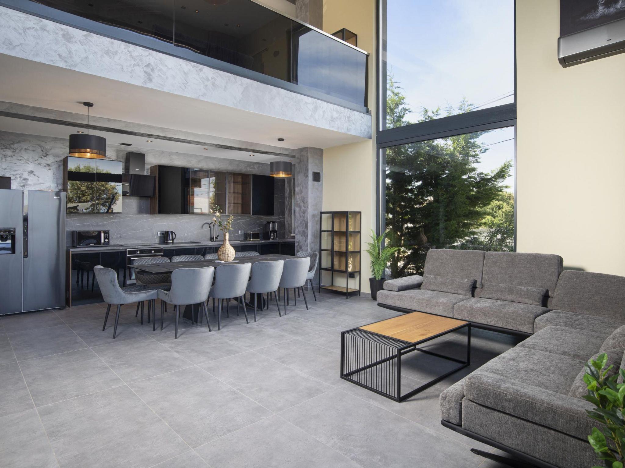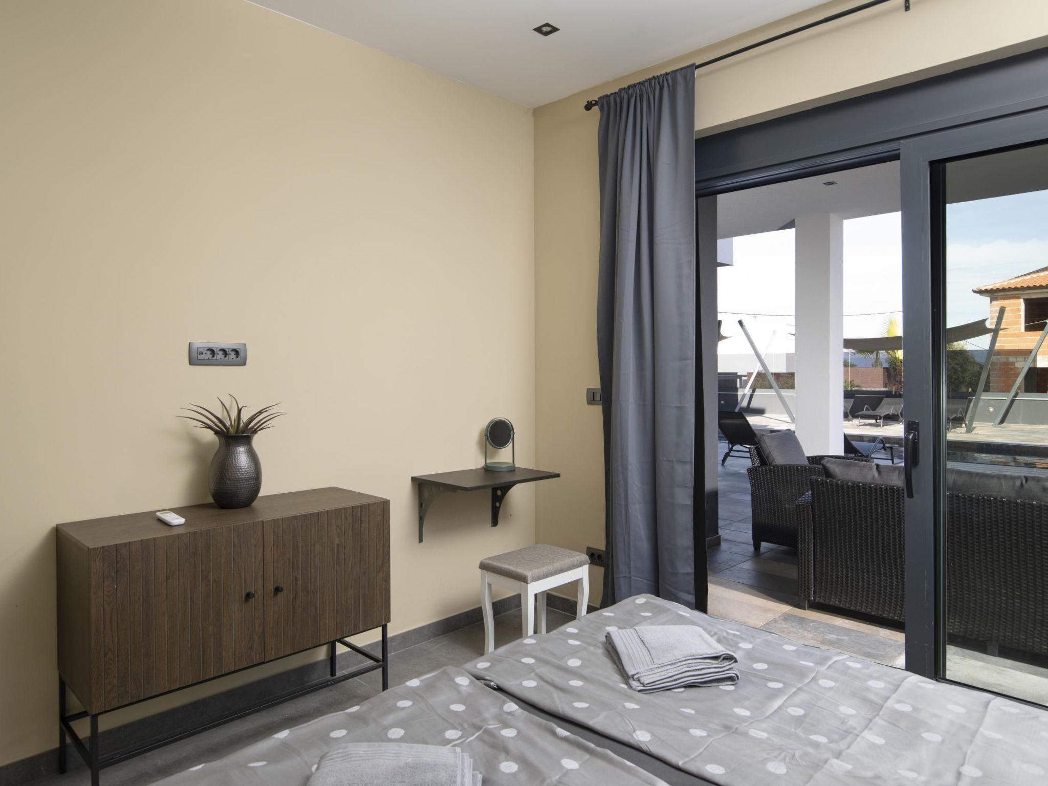 This villa comfortably accommodates up to 10 guests across 5 bedrooms. Four of the bedrooms feature en-suite bathrooms with walk-in showers. One ground-floor bedroom does not have an en-suite bathroom, but there is a bathroom located right next to it. All bedrooms have air conditioning.