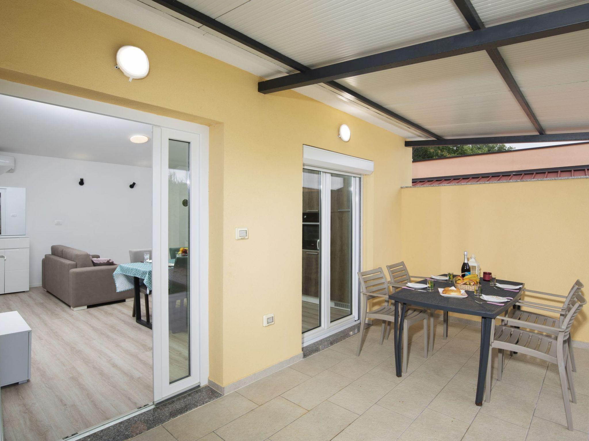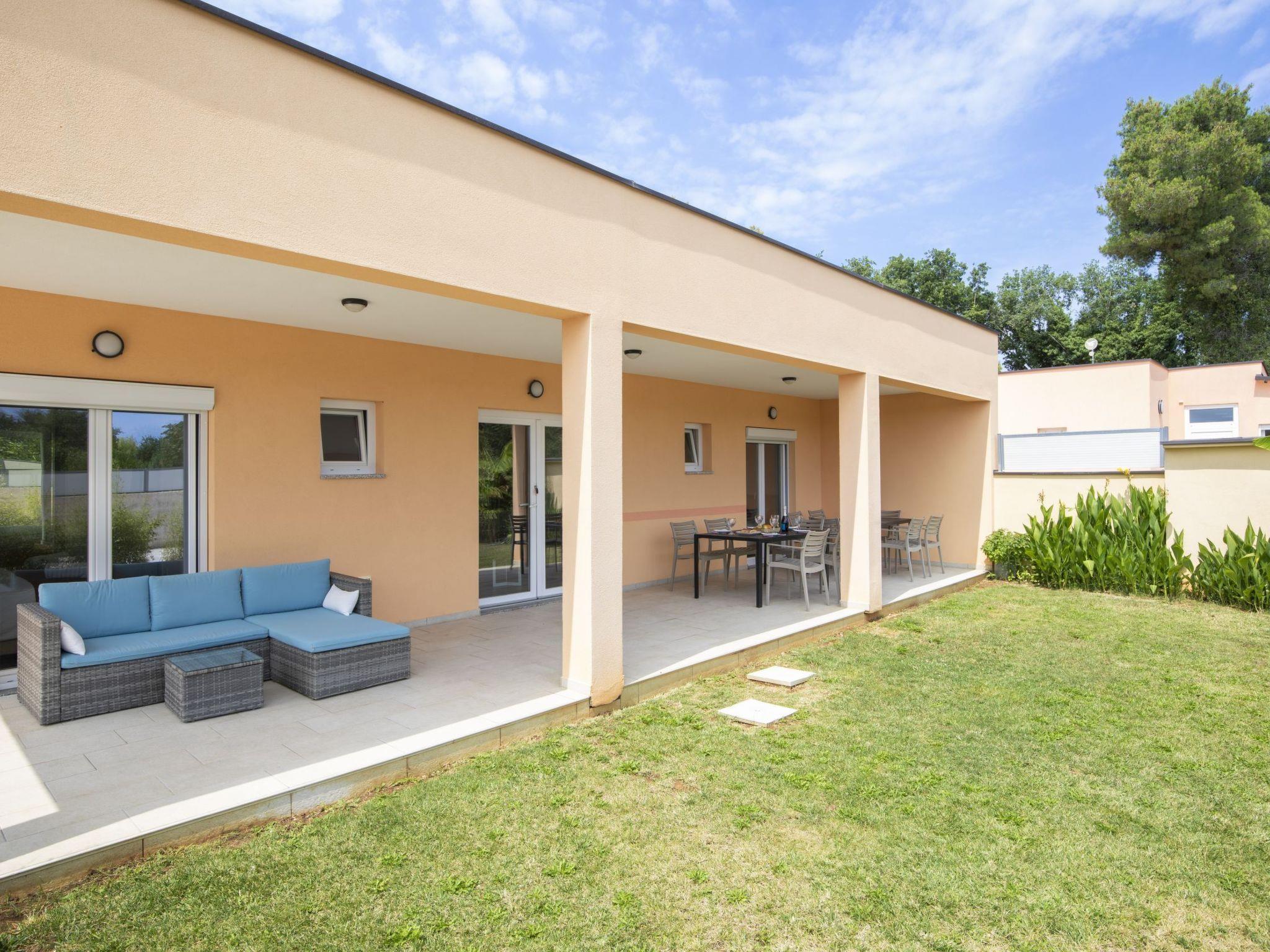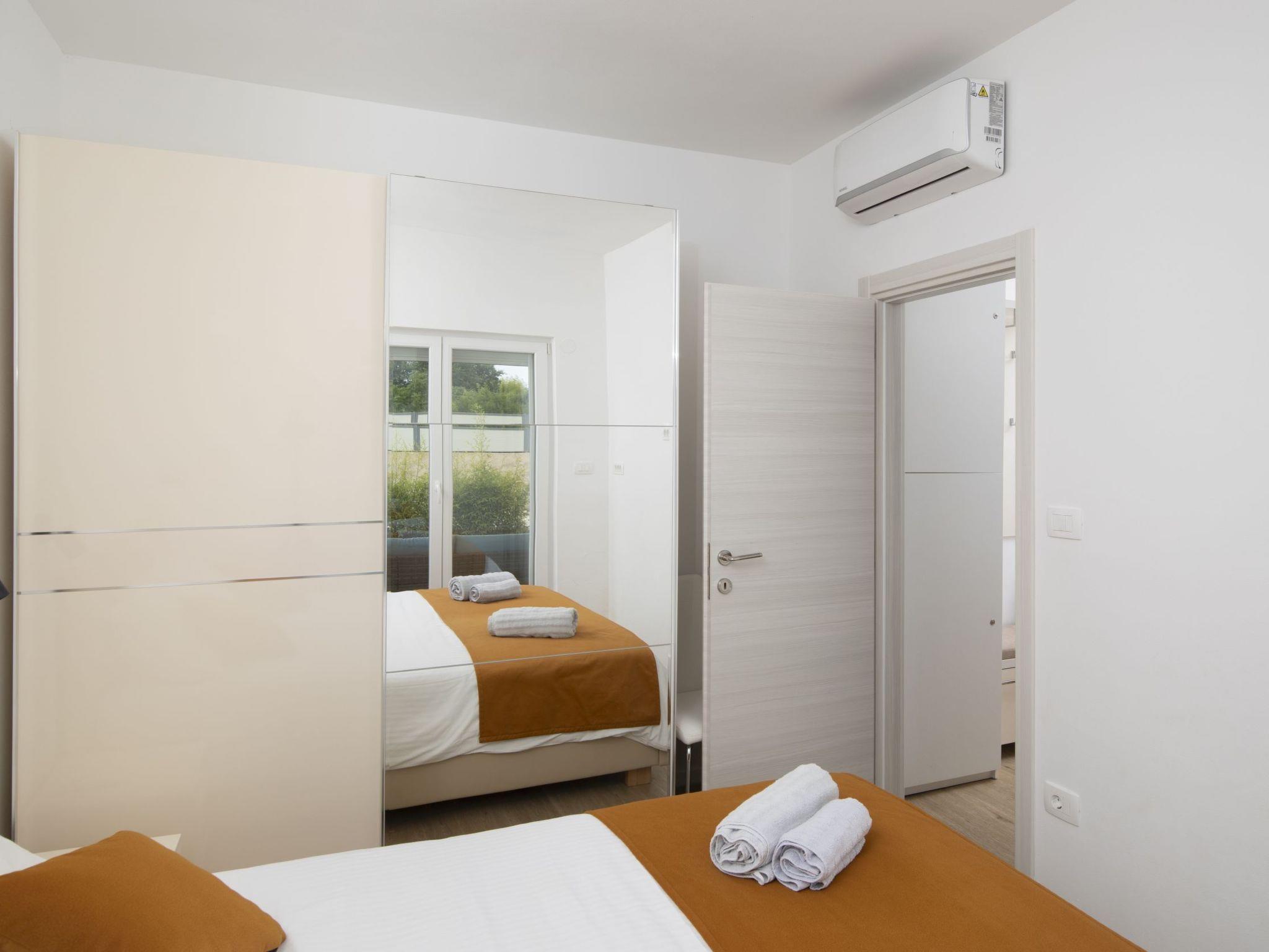Stancija Matošic consists of three units rented together as a single property, accommodating up to 12 guests with six bedrooms and five bathrooms. Each unit is fully air-conditioned and includes a fully equipped kitchen, living area with TV, and a terrace with lounge seating.