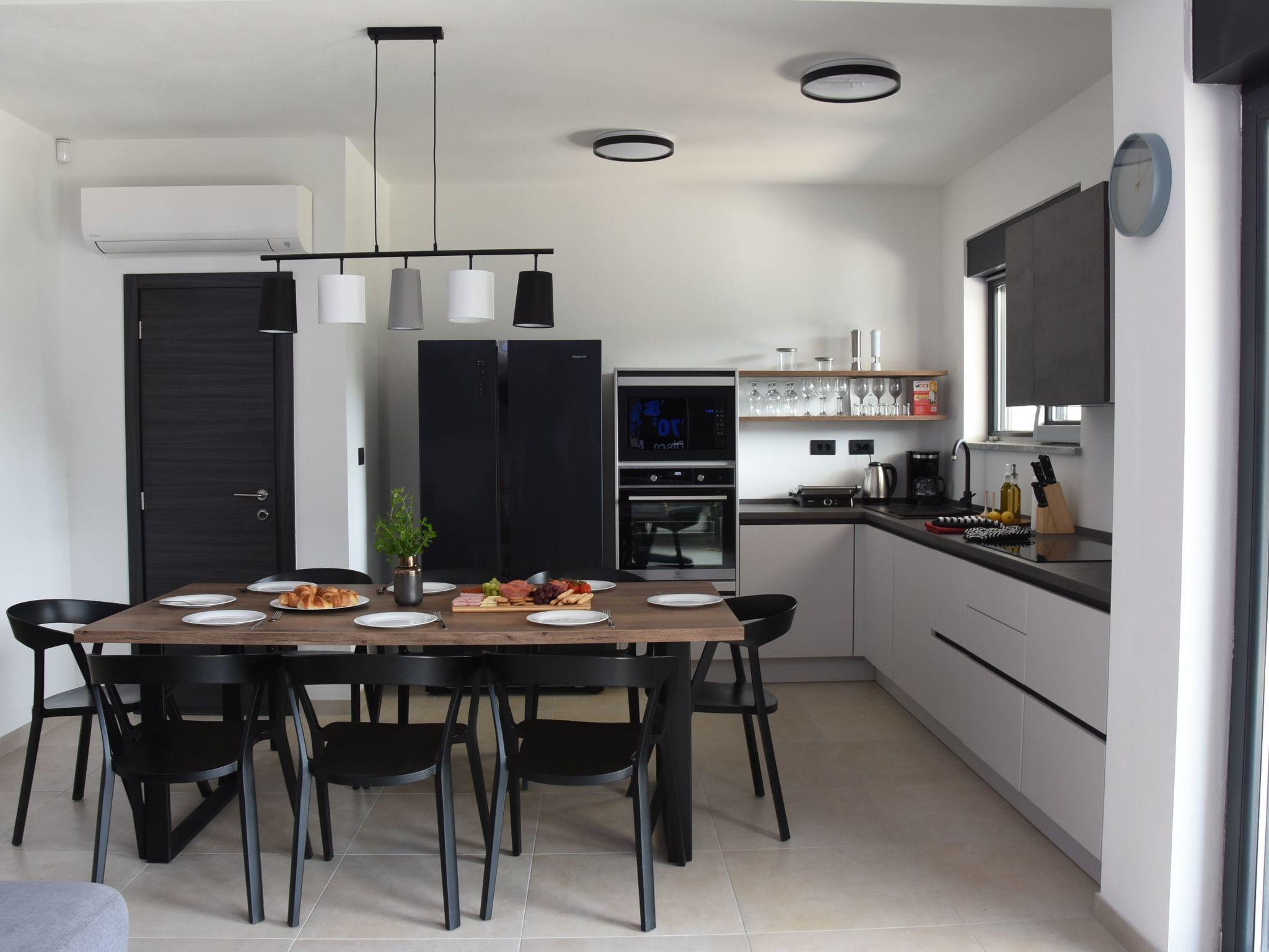 Discover the charm and convenience of our exclusive villa located in the heart of Medulin, Istrien, perfect for families or a group of friends up to 8 persons seeking an unforgettable getaway. This detached villa is positioned just a short stroll from both the beach and sea, ensuring your days are filled with sun, sand, and adventure. The added proximity to a variety of water sports facilities means every day can be a new exploration, while the serene dog beach nearby ensures furry friends have their share of the fun too.