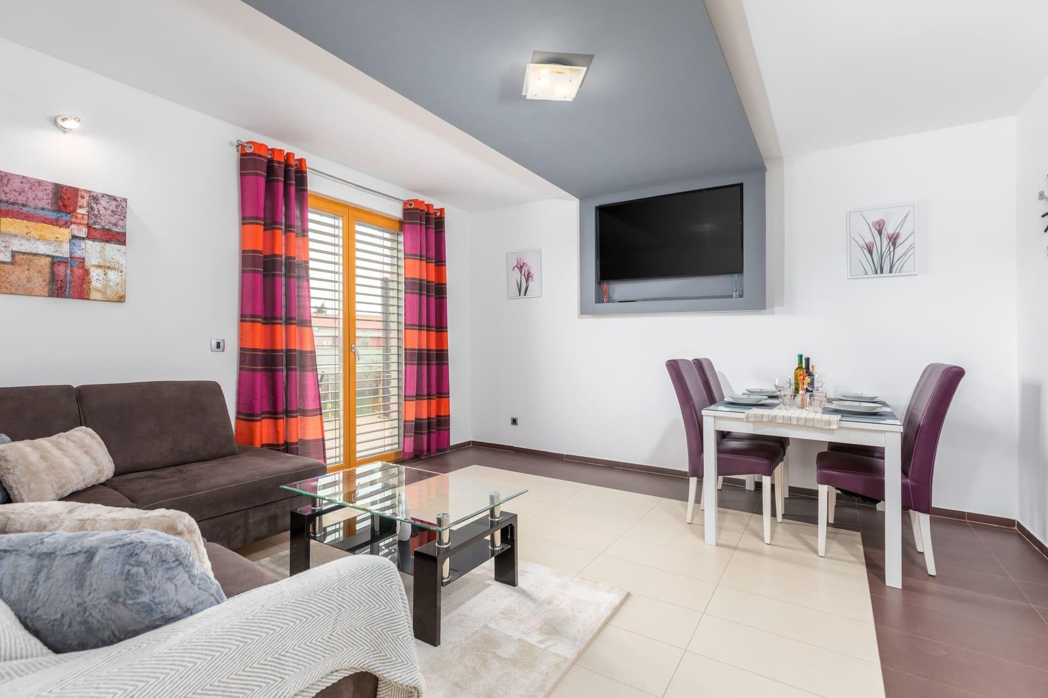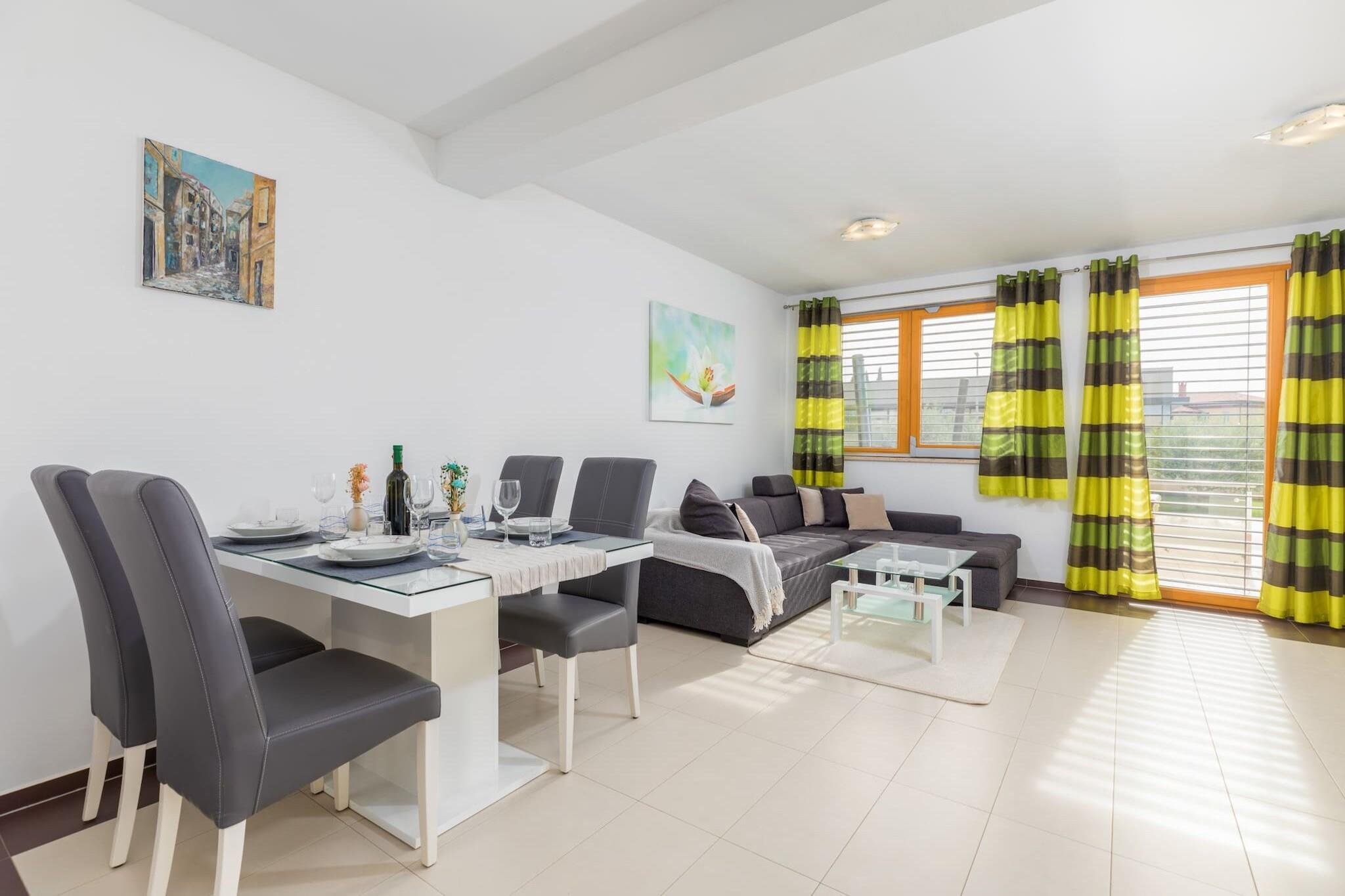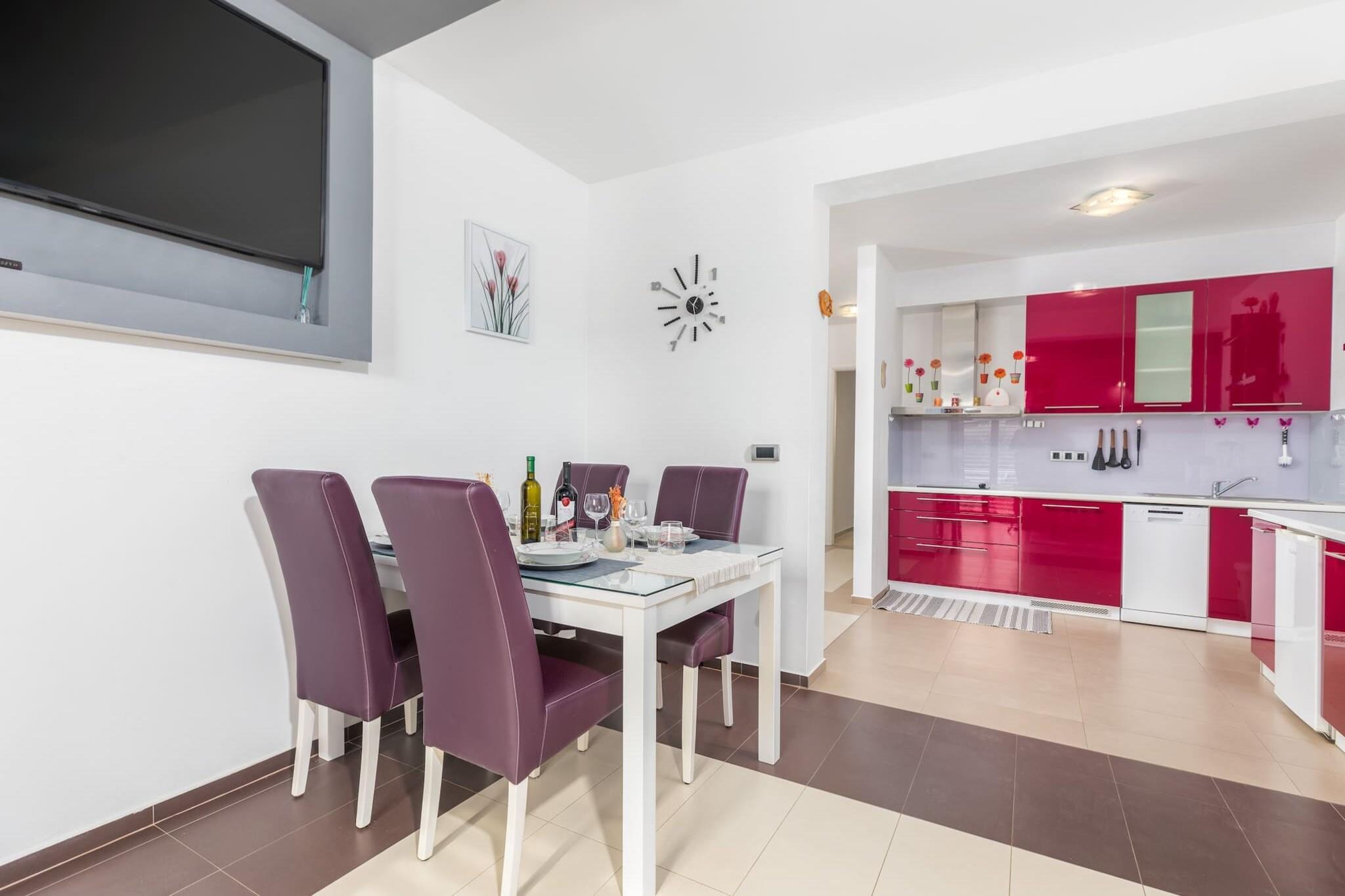 Denne villa, sammen med dens rummelige og veludstyrede faciliteter, giver ideelle rammer for familier og grupper. Villaen har fire soveværelser, to med king-size senge og to med enkeltsenge, der kan rumme op til otte gæster komfortabelt. Hvert soveværelse er udstyret med et tv og aircondition for ekstra bekvemmelighed. Gæsterne kan nyde en privat swimmingpool omgivet af otte liggestole, parasoller og en udendørs bruser. Med to stuer, to køkkener og to badeværelser sikrer villaen rigelig plads og privatliv for alle gæster. Ejendommen er også kæledyrsvenlig med nem adgang til gratis Wi-Fi og en privat have, perfekt til afslapning. Villaen ligger i et fredeligt kvarter i Medulin, kun 1,8 km fra sandstranden Bijeca, ideel til familier med børn. Området byder på en bred vifte af aktiviteter, herunder et pulserende natteliv og forskellige spisemuligheder, samt et grøntmarked, købmandsforretninger og busstoppesteder inden for en rækkevidde af 50 meter. Kap Kamenjak, et berømt sted for en fantastisk udsigt, ligger 11 km derfra, mens Pula med sin gamle romerske arkitektur såsom amfiteatret kun ligger 10 km fra ejendommen. Villaen er godt forbundet, med Pula Lufthavn kun 12 km væk, hvilket gør rejsen bekvem for gæsterne. Ud over de rummelige soveværelser og opholdsområder kan villaen prale af et fuldt udstyret køkken med moderne apparater, herunder induktionskomfur, køleskab, mikroovn, ovn og opvaskemaskine. En vaskemaskine er tilgængelig til længere ophold, og gæsterne kan nyde måltider udendørs i den indhegnede have eller på terrassen, komplet med havemøbler og en grill.