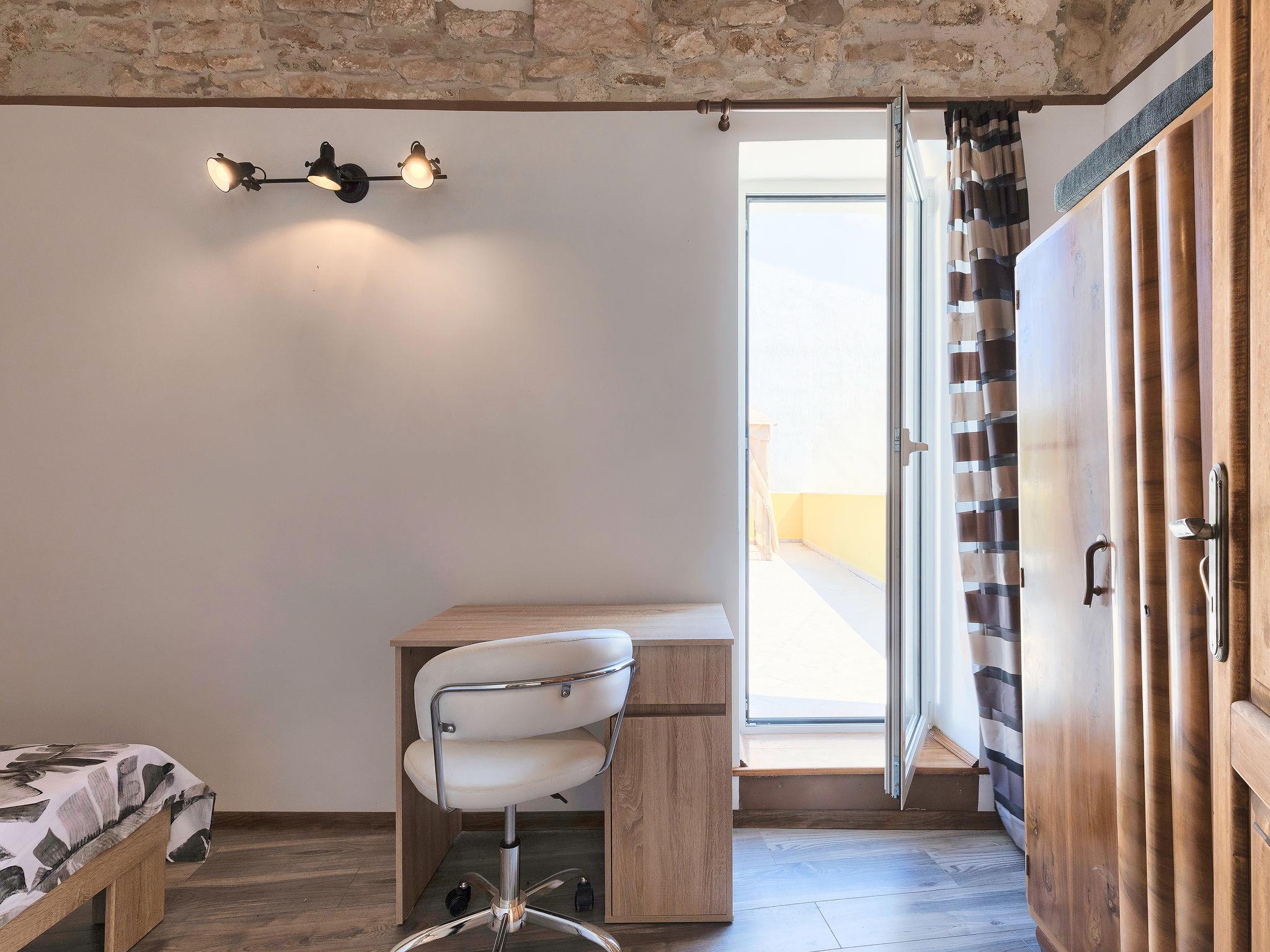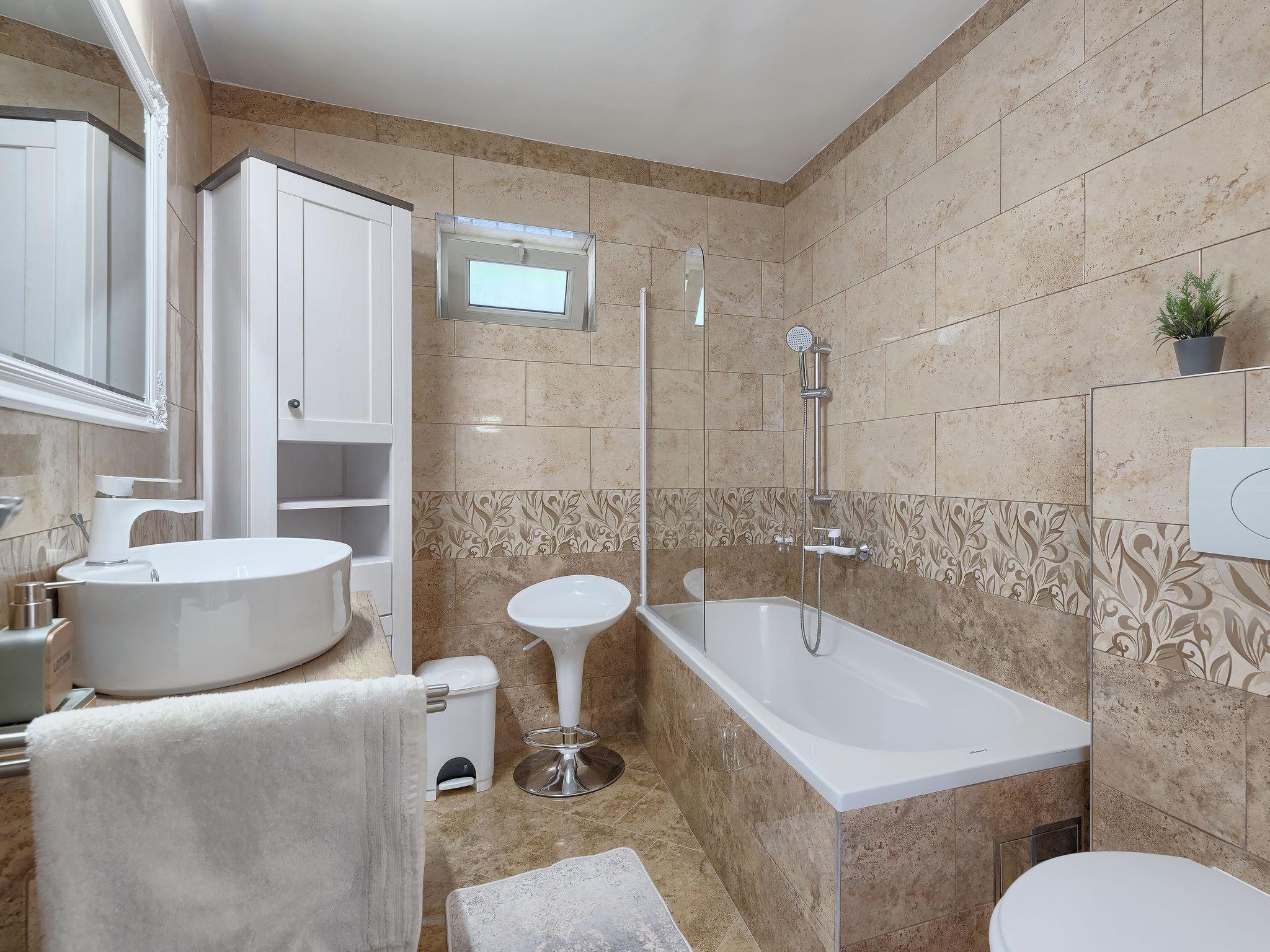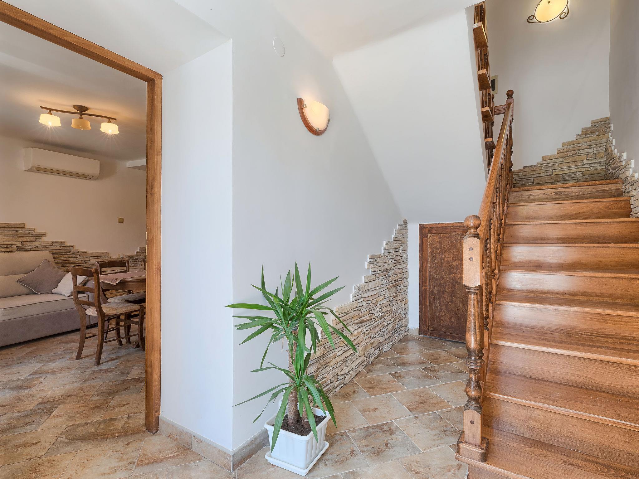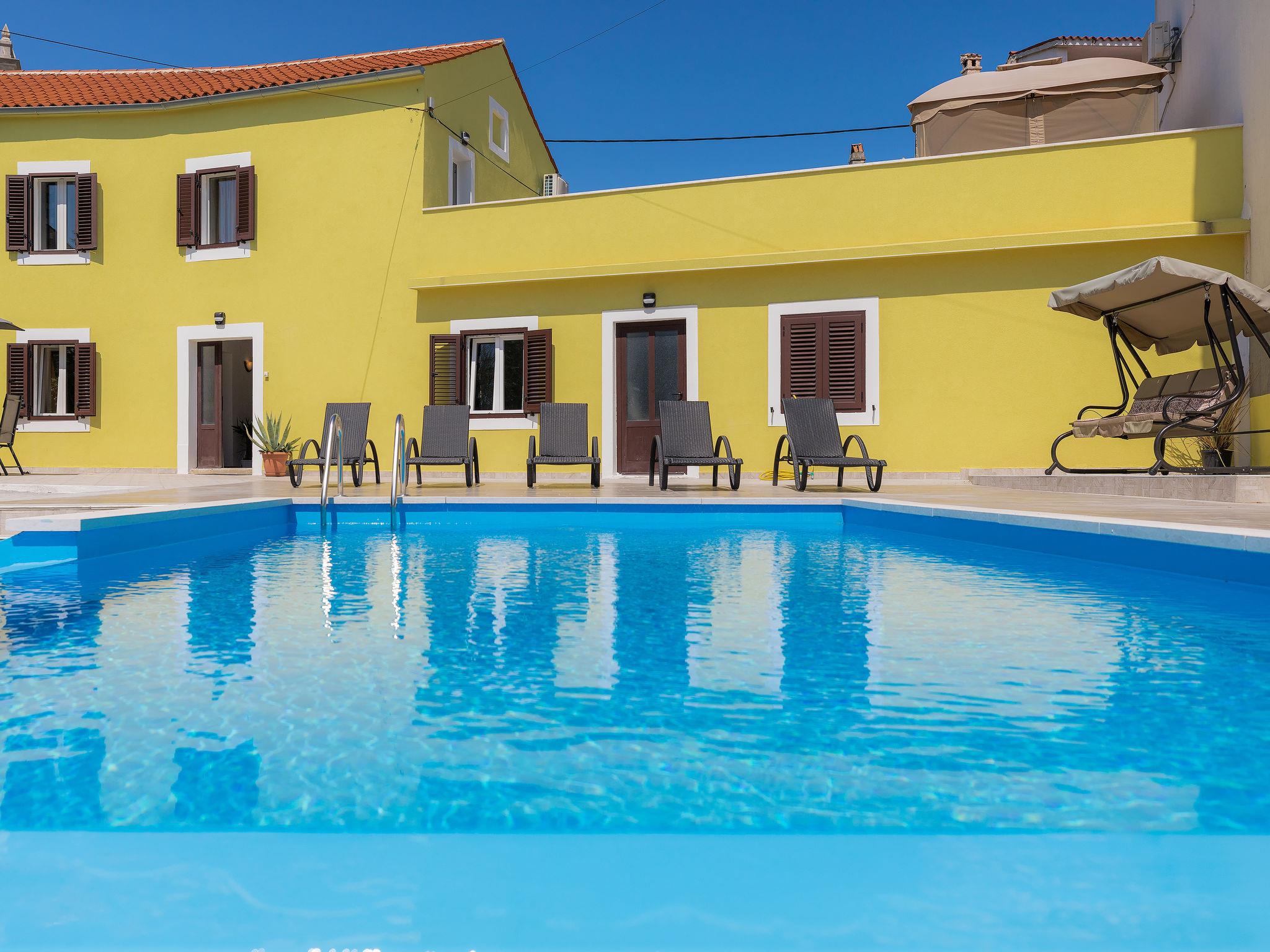 Ližnjan 3 km from Medulin: Terraced house "Evelina", 2 storeys. 200 m from the centre of Ližnjan, in a sunny position, 2 km from the sea, 2 km from the beach. Private: property 280 m2 (fenced), garden with lawn, swimming pool angular (8 x 4 m, depth 150 cm, seasonal availability: 25.Apr. - 26.Oct.). Terrace (30 m2), garden furniture. In the house: internet access, hot tub, washing machine. Parking (for 2 cars) at the house on the premises. Shop 200 m, restaurant 300 m, bus stop 180 m, pebble beach 2 km, rocky beach 2 km. Surf school 2.5 km, riding stable 3 km, sports centre 4.5 km, walking paths from the house 1 km, cycle lane 1 km.