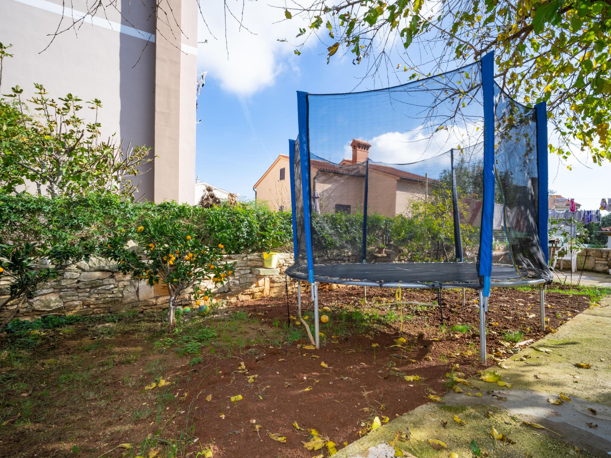 Ližnjan 2 km from Medulin: Apartment house "B&B". 300 m from the centre of Ližnjan, in a quiet, sunny position, 1 km from the sea, 1 km from the beach. For shared use: property 800 m2, small garden with lawn and plants. Terrace (10 m2), garden furniture, barbecue (swing). In the house: internet access, trampoline, washing machine (for shared use, extra). Parking at the house on the premises. Shop, restaurant 100 m, bus stop 400 m, sandy beach 1.5 km pebble beach 1 km, rocky beach 1 km. Golf course (18 hole) 30 km, tennis 100 m, riding stable 1.5 km, walking paths from the house 100 m, cycle lane 150 m.