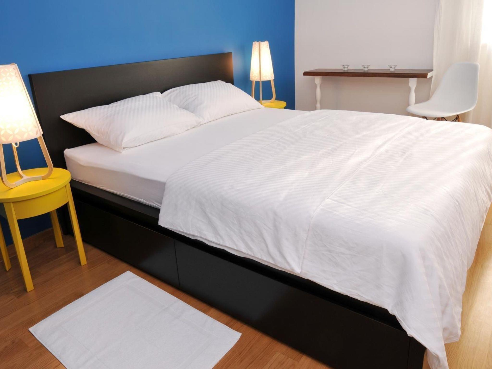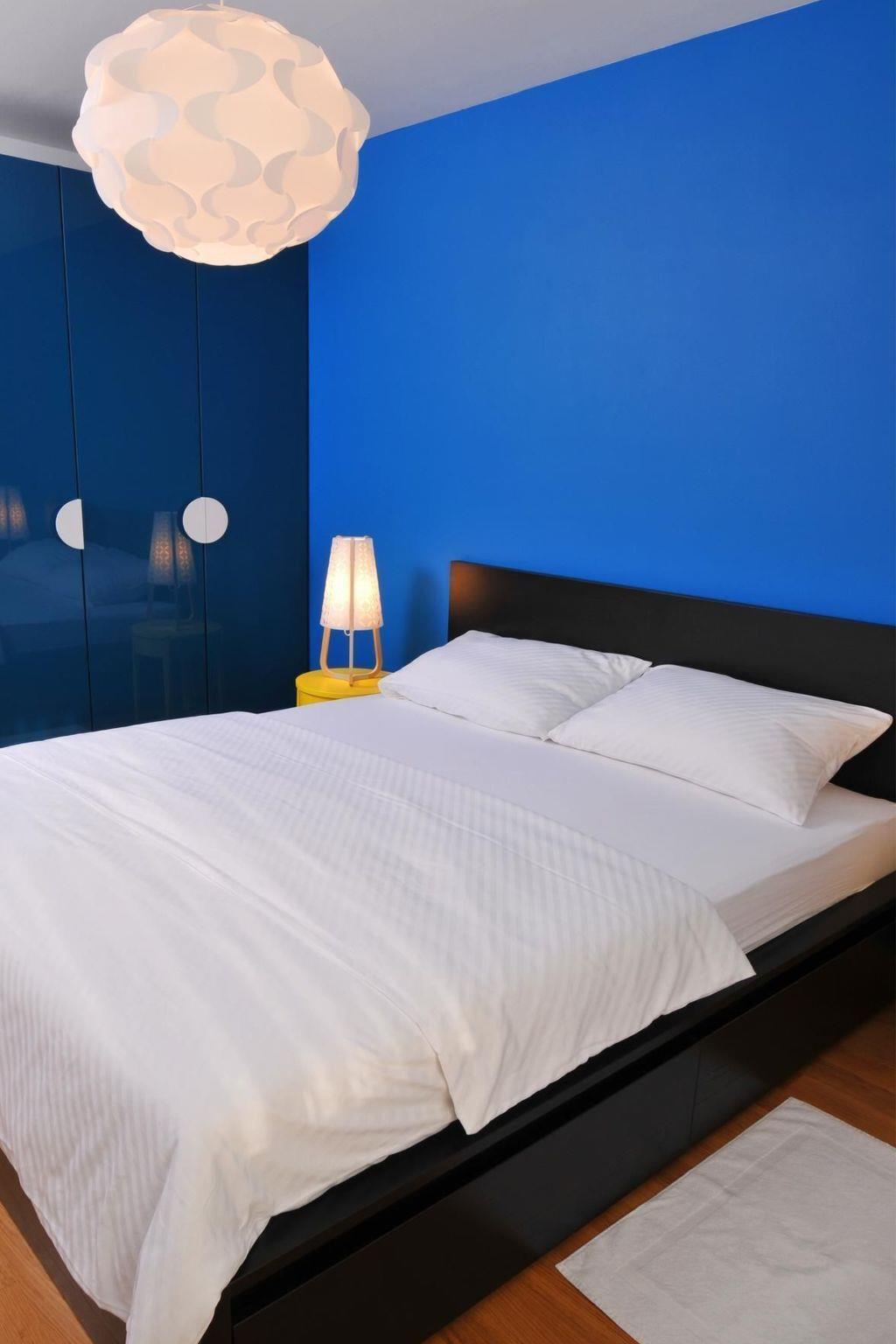 The 52m² apartment is on the first floor of the house and can accommodate four people comfortably. It has a bedroom with a double bed (160 x 200cm) and a bathroom with a shower, toilet and hairdryer. The spacious living room comprises a modern kitchen, a dining area and a sitting area. The kitchen is equipped with a stove, oven, coffee machine, fridge and dishwasher. The sofa bed (140 x 190cm) in front of the TV is suitable for two people. The living area and the bedroom have air conditioning.