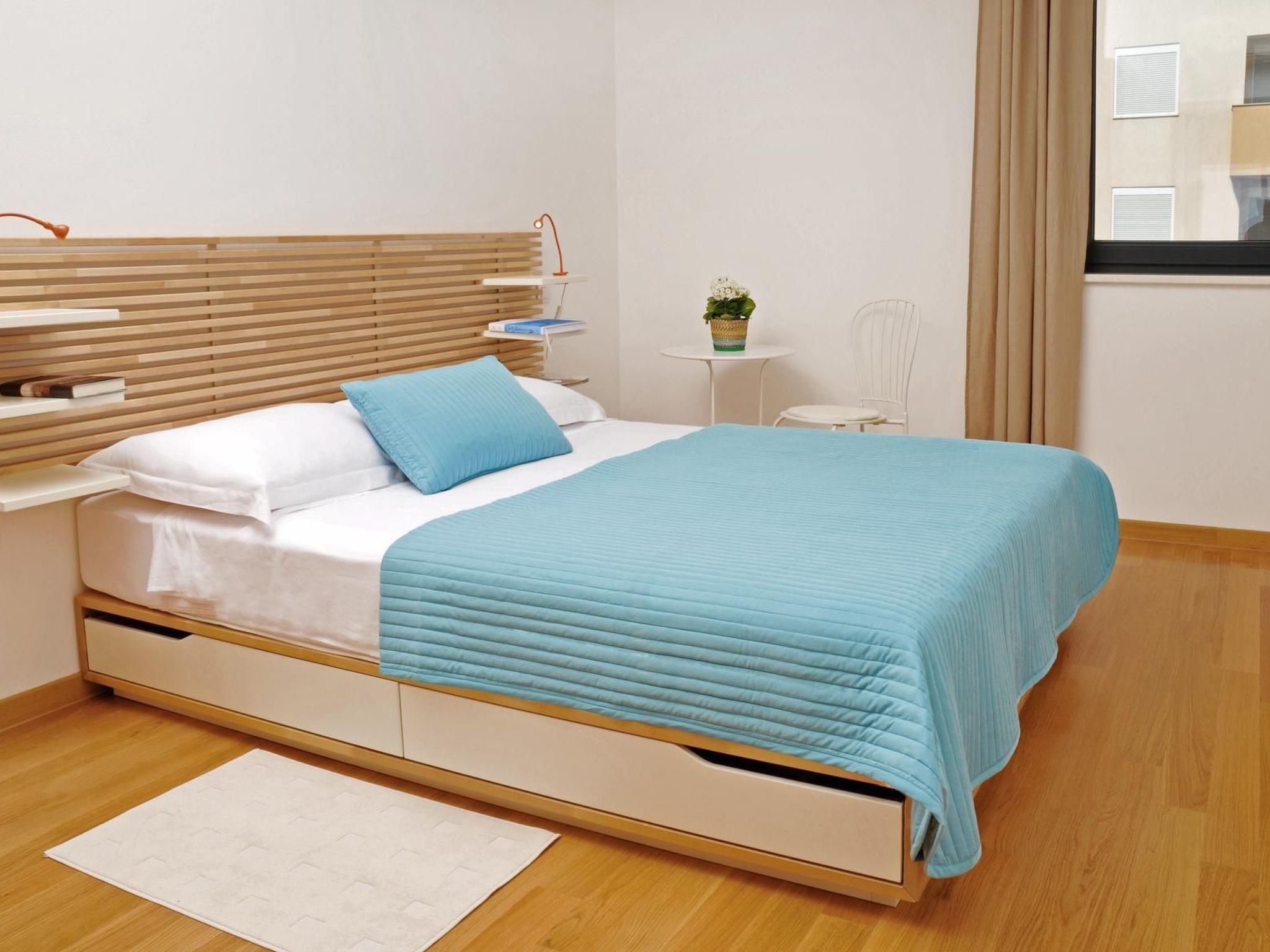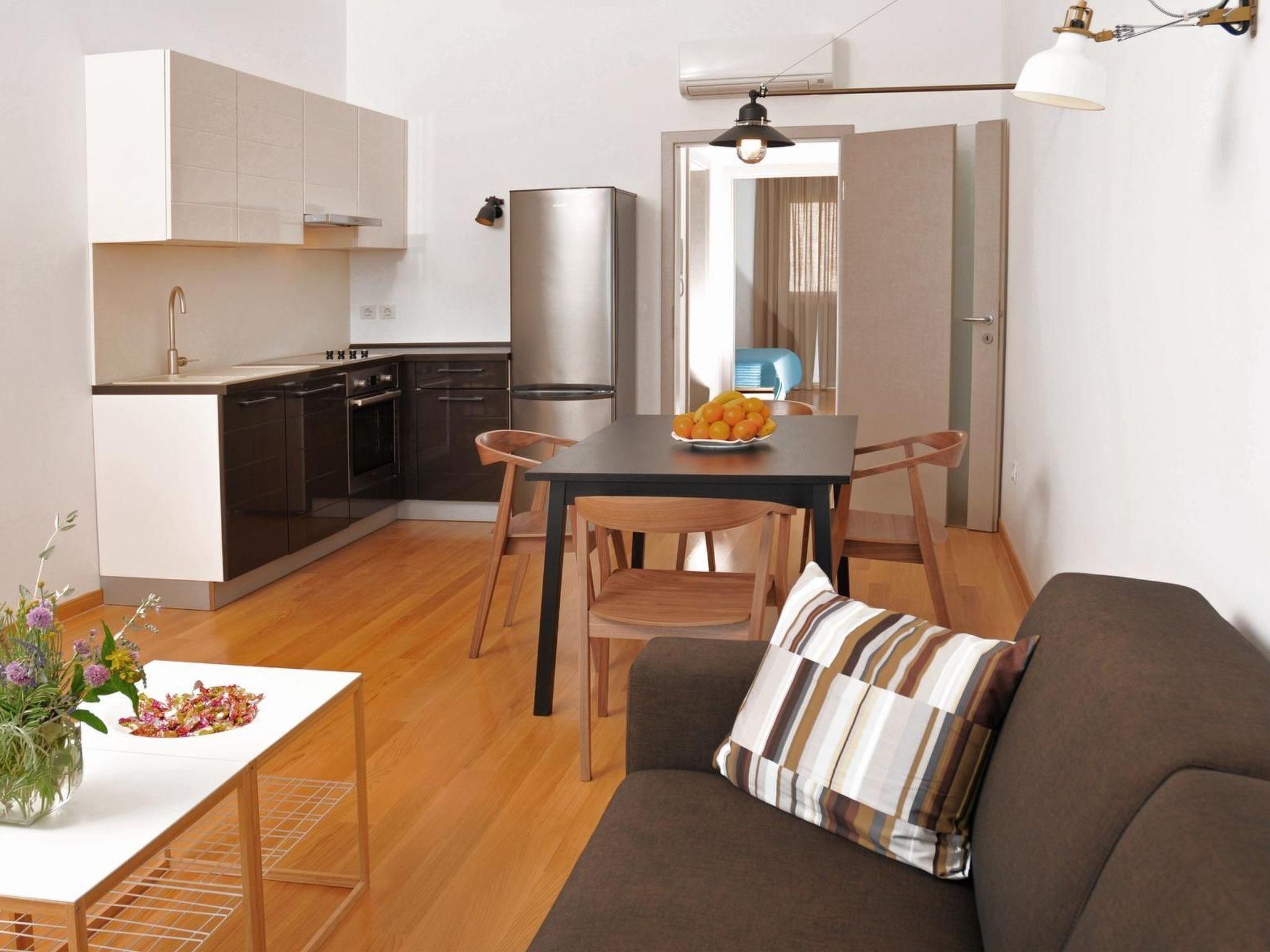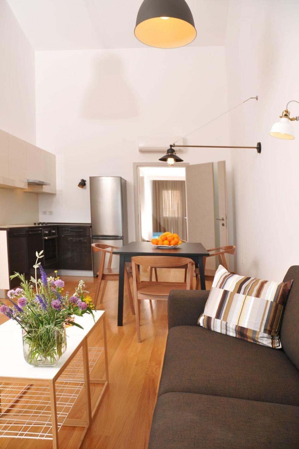 The 52m² apartment is on the second floor of the house and can accommodate four people comfortably. It has a bedroom with a double bed (160 x 200cm) and a bathroom with a shower, toilet and hairdryer. The spacious living room comprises a modern kitchen, a dining area and a sitting area. The kitchen is equipped with a stove, oven, coffee machine, fridge and dishwasher. The sofa bed (140 x 190cm) in front of the TV is suitable for two people. The living area and the bedroom have air conditioning.