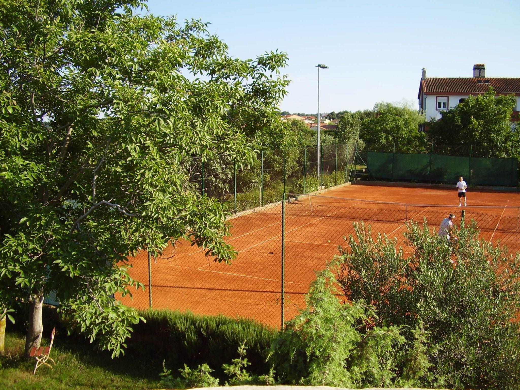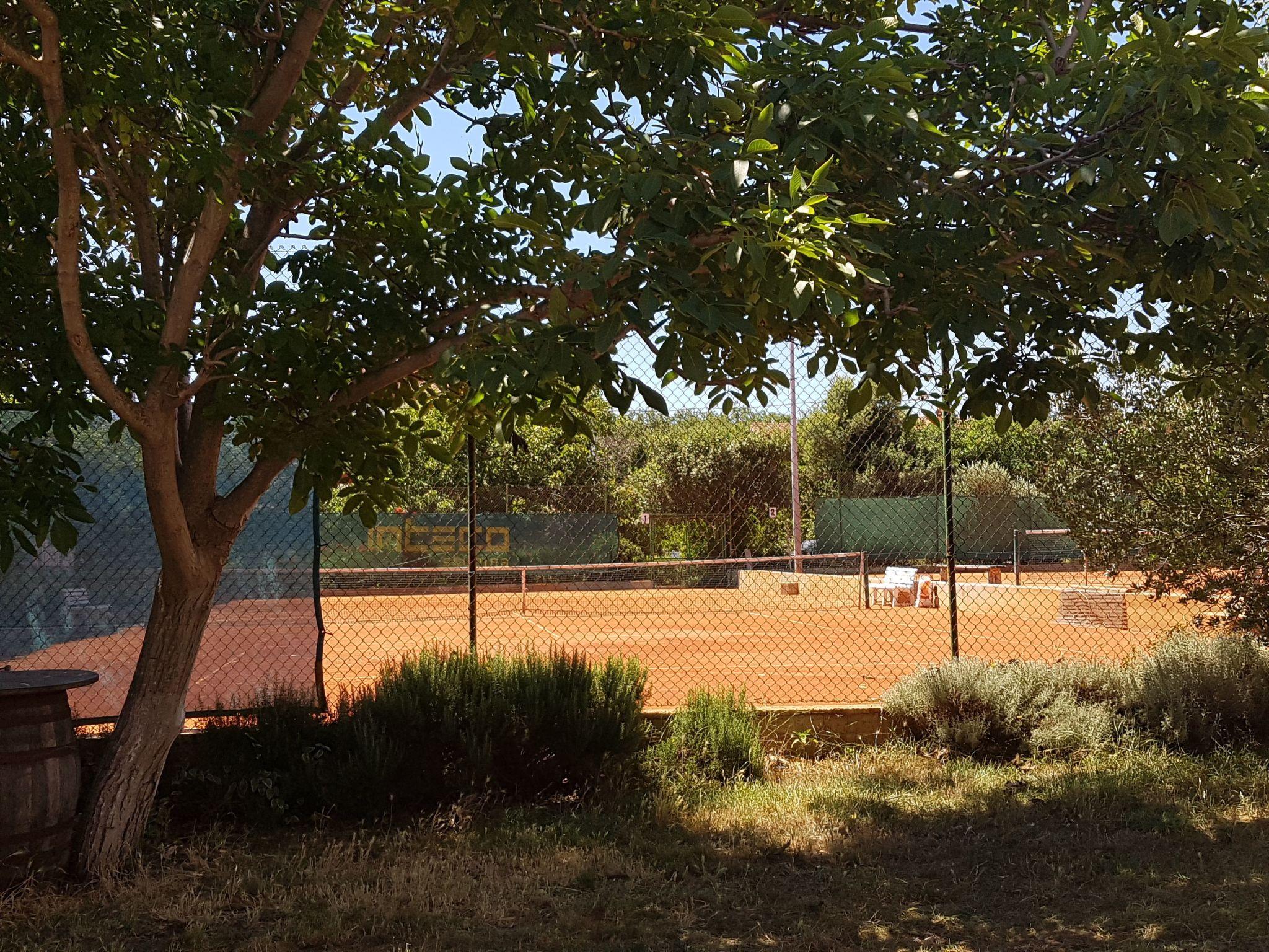 The apartment is on a little holiday complex with a total of five apartments, of which one is occupied by the owners themselves, while the other four are let out as holiday apartments. This apartment features a furnished balcony with a table and chairs for your own private use. The shared outdoor area also has a brick-built charcoal grill with a beer tap and a roofed terrace. The holiday complex with fig and olive trees and Mediterranean plants has four private tennis courts, of which two are illuminated. The site is fully enclosed and therefore also suitable for dogs. You can park your car on one of six private parking spaces, of which two are under a car port. Please note that the parking spaces can be used by all guests on the holiday complex, with no designated spaces.