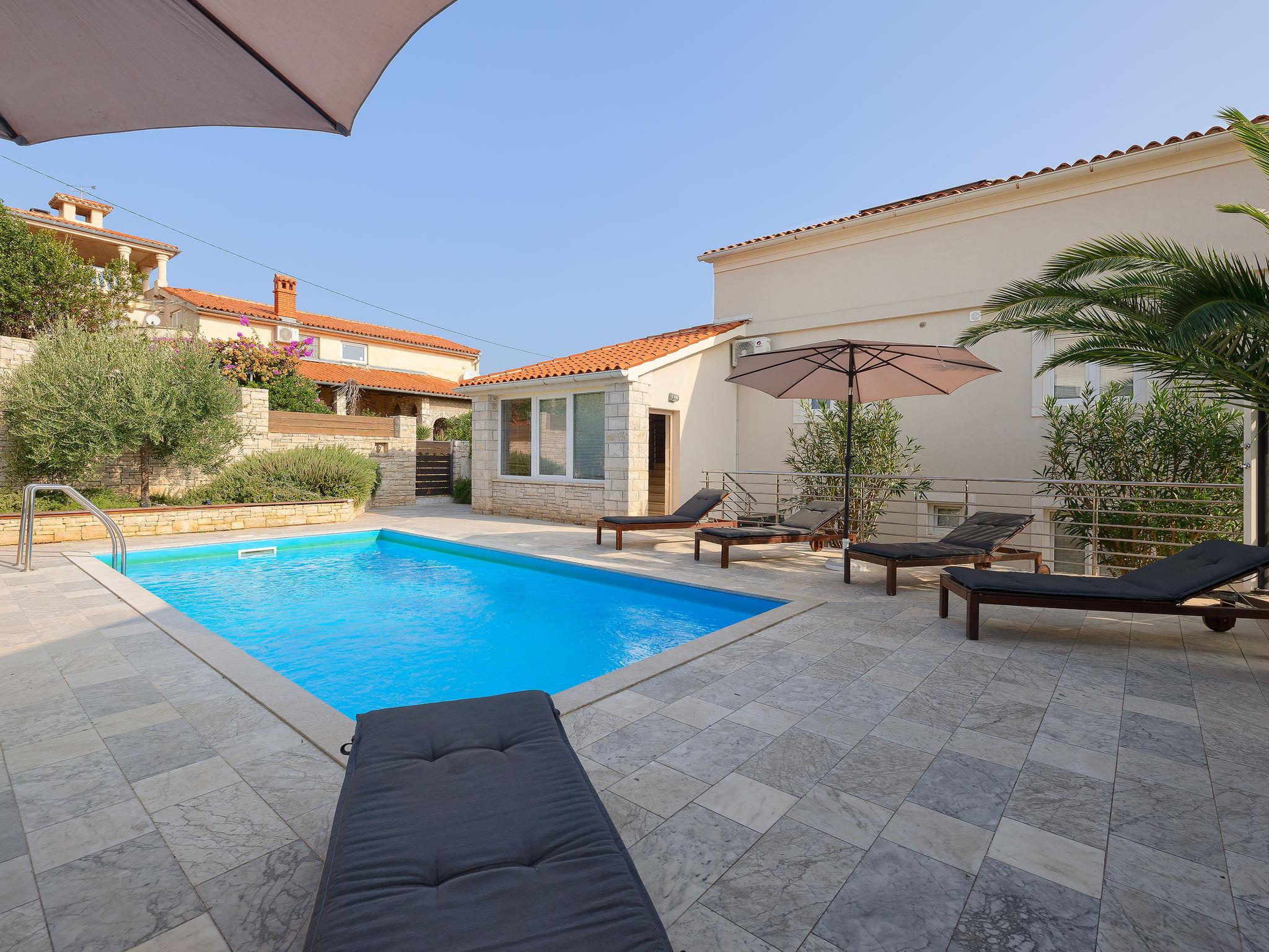 The beautiful outside covered terrace with barbecue, balcony with perfect panoramic sea view and swimming pool invites you for a perfect and relaxing holiday. The house of 190 m2 is well furnished and fully equipped. The House has: 3 terraces, 6 bathrooms, 5 bedrooms, (3 bedrooms with double beds, 1 bedroom with a double bed and a single bed and 1 bedroom with separate beds), living room, dinning room, fully equipped kitchen and spa area (with Jacuzzi,sauna and small gym). There is a billiard, table soccer, picado and fast internet connection to make your stay more comfortable.The house is located on a walking distance from the sea, beach (cca 1 km ), market and local restaurants. Around the house there is a beautiful Mediterranean garden with olive trees, Mediterranean plants, herbs and spices. The garden offers a playground for kids with slide and swing. The area and nature around the house is quiet with fresh sea air. The city of Pula is 10 and the city of Medulin is 2 kilometers away. All this environment invites you for a perfect relaxing family or sporty holiday. Furthermore,we can arrange favorable transportation from/to airport or other destinations and special trips and tours of local attractions.