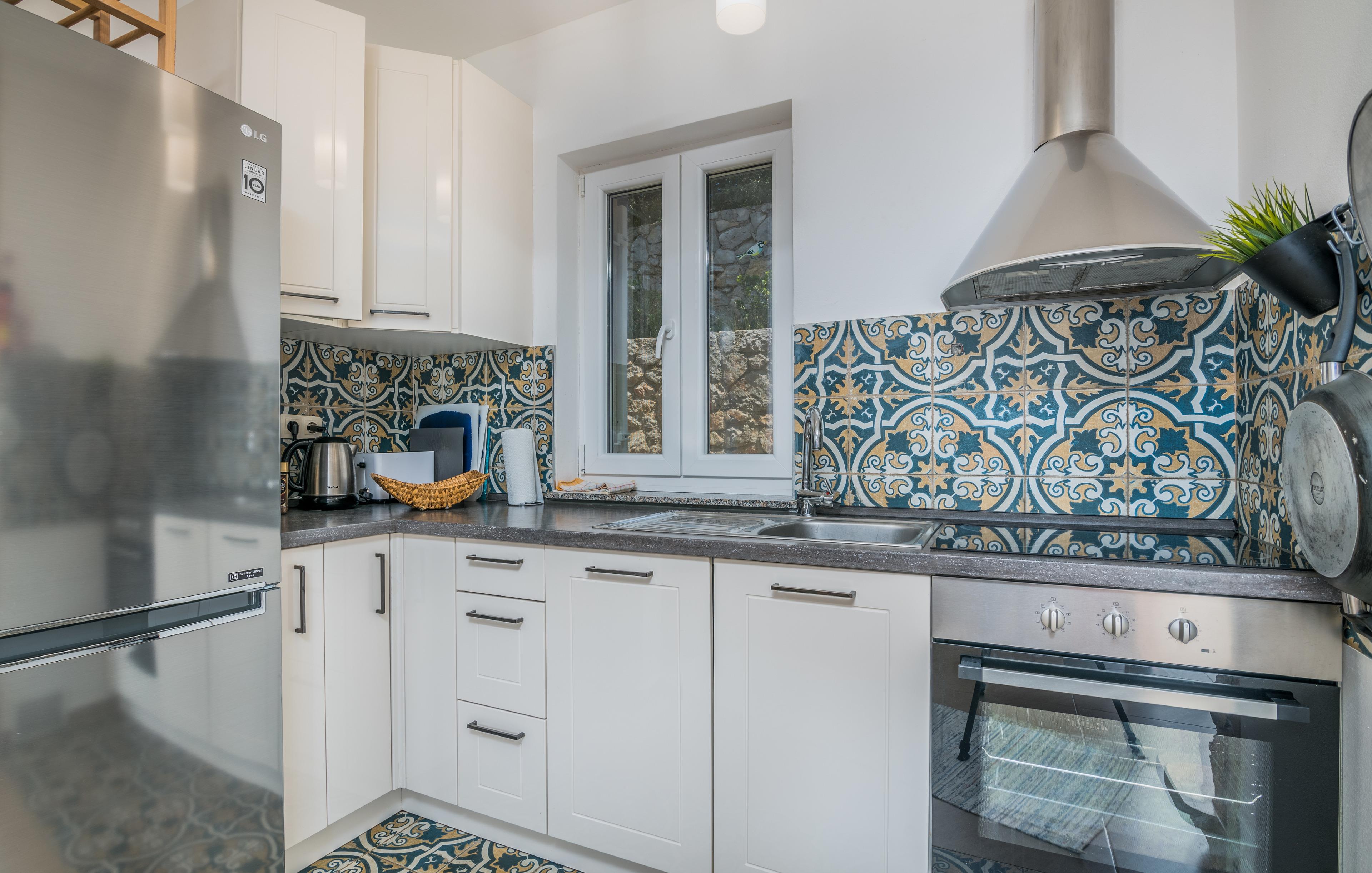 Das wunderschön angelegte Anwesen empfängt Sie mit bezaubernden Steinkaskaden, die von mediterraner Vegetation bevölkert sind. Bäume aus Oliven, Feigen, Mandarinen, Zitronen, Granatäpfeln und Sträuchern aus Lorbeer, Basilikum, Lavendel, Rosmarin und Strohblume.