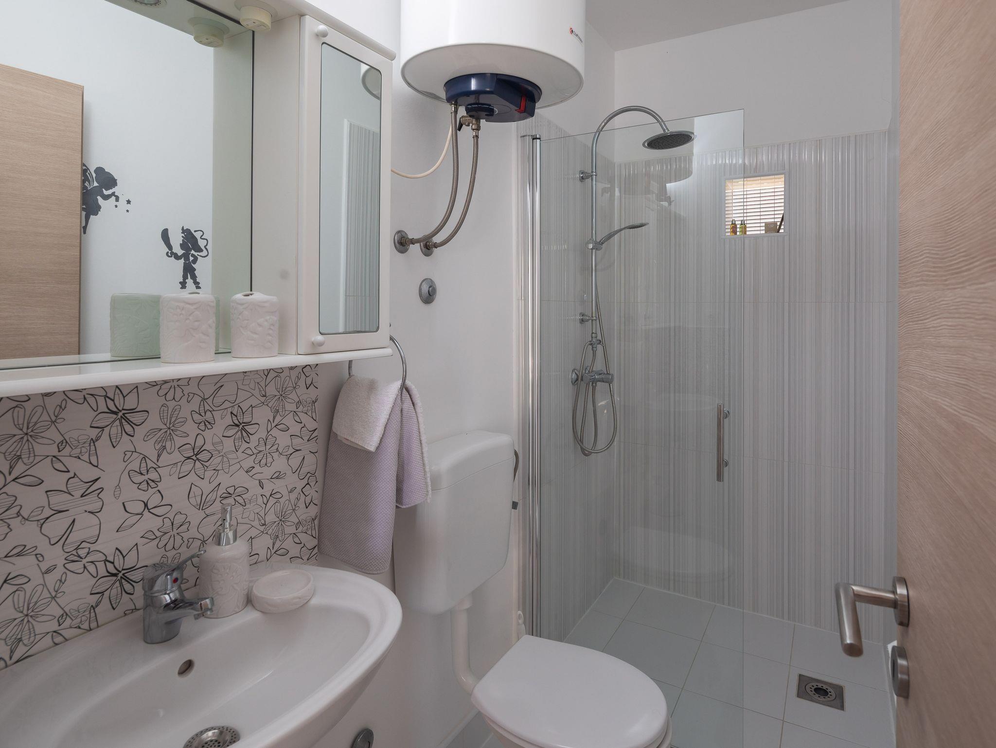 Ferienwohnung bietet Platz für 3 Gäste. Die Betten sind in Schlafzimmern, die es 1 gibt, und in Wohnzimmer, innerhalb einer Gesamtfläche von 27m2, angeordnet. Die Gäste haben eine eigene Terrasse zur Verfügung, auf der sie in warmen Sommernächten genießen können. Das Apartment bietet Meerblick. Es ist erlaubt, Speisen auf dem Gemeinschafts-Grill vorzubereiten. In der Unterkunftseinheit besteht die Möglichkeit des Mitbringens von Haustieren, und die Dienstleistung ist im Preis der Unterkunft enthalten. IM PREIS INBEGRIFFEN: Kurtaxe, Endreinigung, Klimatisierung, Parkplatz, Internet, Wäschewaschen, Bootsanlegeplatz, Haustiere, Kinderbett, Liegestühle. Die Verfügbarkeit zusätzlicher Dienstleistungen in Ihrem reservierten Termin und die Preise derselben (falls nicht aufgeführt) müssen im Voraus überprüft werden. Zusätzliche Dienstleistungen die in der Zahlungsaufforderung nicht aufgeführt sind werden direkt beim Vermieter bezahlt, angenommen der Gast nutzt auch diese. Ermäßigung auf den Grundpreis: Gratistag 21=19 (bei einem Aufenthalt von 21 Tagen oder mehr erhalten Sie 2 Gratistage für den Aufenthalt bis 31.12.26).
