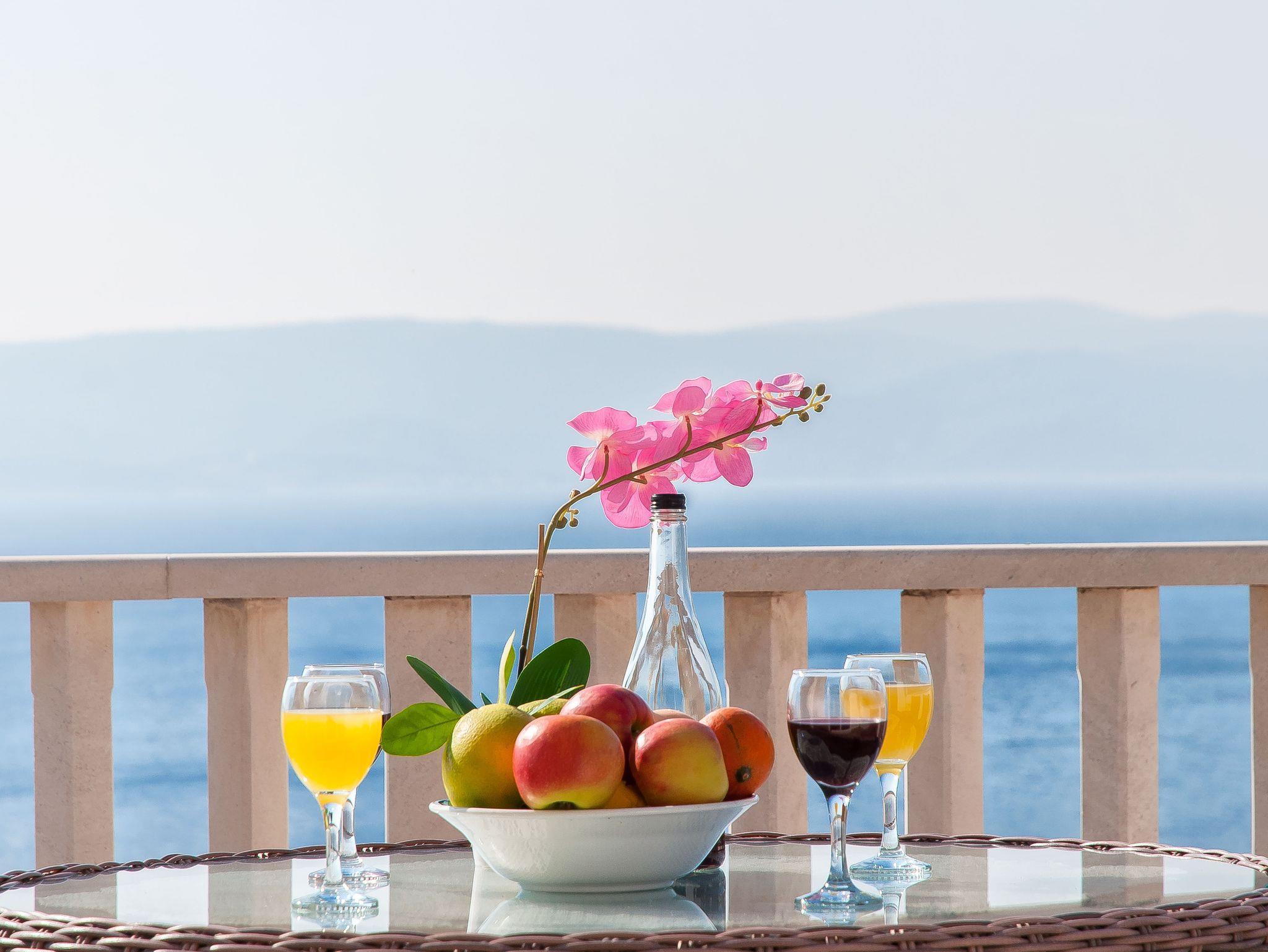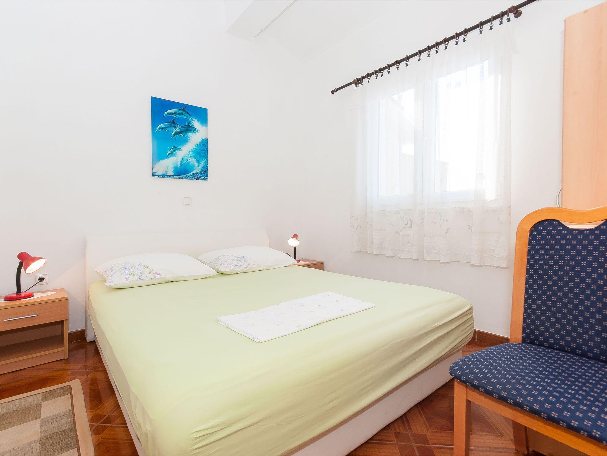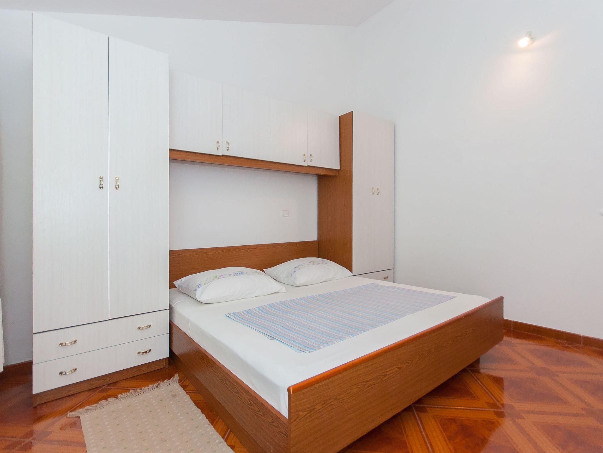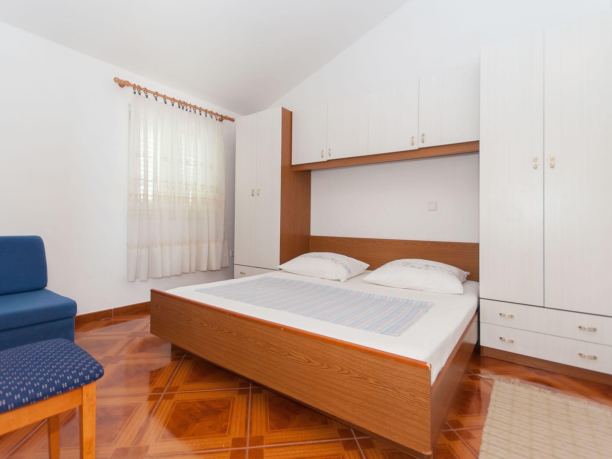 Ferienwohnung bietet Platz für 5 Gäste. Die Betten sind in Schlafzimmern, die es 2 gibt, und in Esszimmer, innerhalb einer Gesamtfläche von 42m2, angeordnet. Die Gäste haben eine eigene Terrasse zur Verfügung, auf der sie in warmen Sommernächten genießen können. Das Apartment bietet Meerblick. Es ist erlaubt, Speisen auf dem Gemeinschafts-Grill vorzubereiten. In der Unterkunftseinheit besteht die Möglichkeit des Mitbringens von Haustieren gegen Aufpreis. IM PREIS INBEGRIFFEN: Kurtaxe, Endreinigung, Klimatisierung, Parkplatz, Internet. VERBINDLICHE ZUSÄTZLICHE KOSTEN: Aufzahlung für Kurzaufenthalte (prozentualer Zuschlag pro Nächtigungsanzahl: 30% - 1, 20% - 2, 10% - 3). UNVERBINDLICHE ZUSÄTZLICHE KOSTEN: Haustiere (5,00 € pro Nacht). Die Verfügbarkeit zusätzlicher Dienstleistungen in Ihrem reservierten Termin und die Preise derselben (falls nicht aufgeführt) müssen im Voraus überprüft werden. Zusätzliche Dienstleistungen die in der Zahlungsaufforderung nicht aufgeführt sind werden direkt beim Vermieter bezahlt, angenommen der Gast nutzt auch diese.