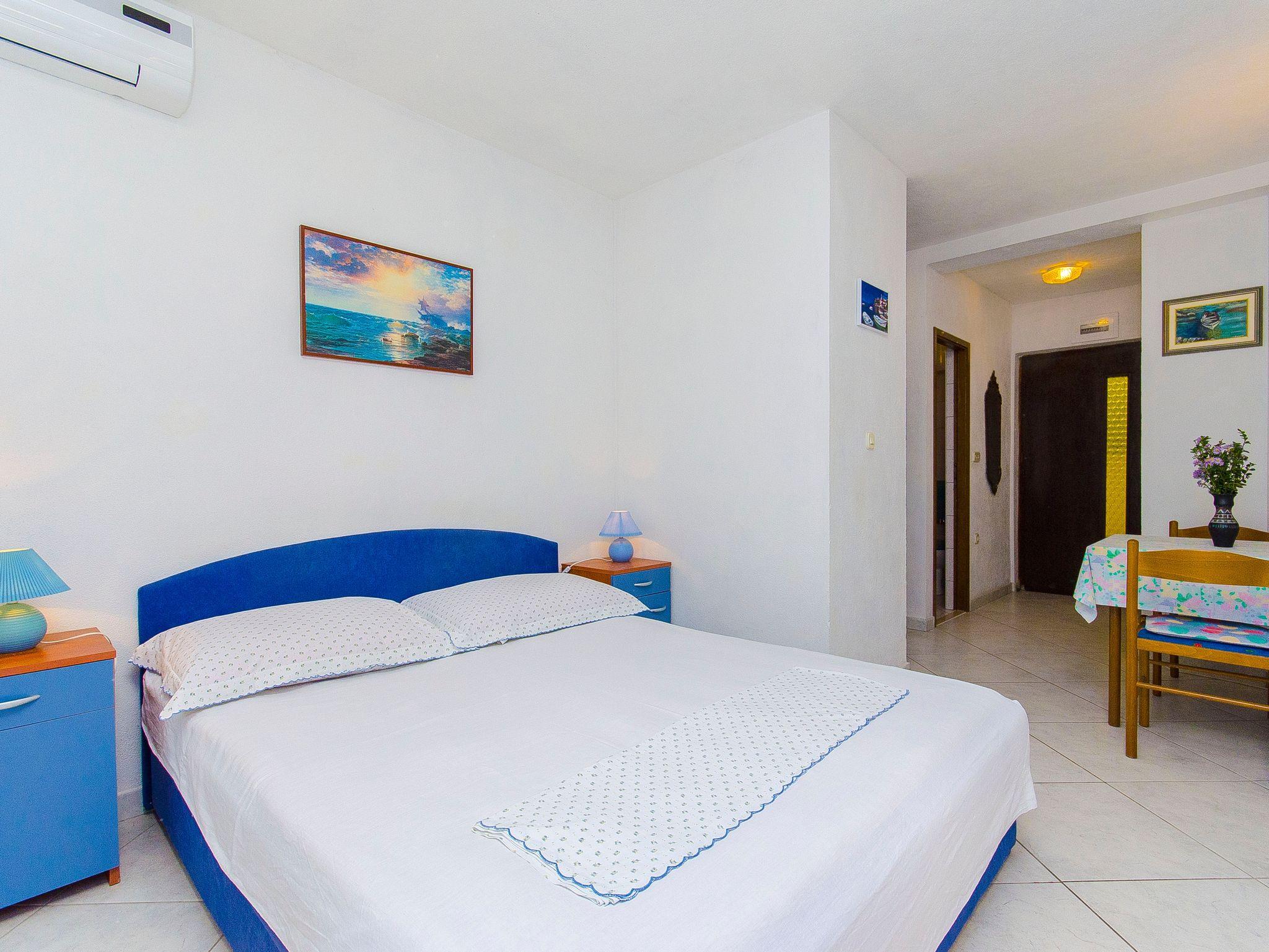Studio bietet Platz für 2 Gäste. Die Betten sind in Schlafzimmern, die es 1 gibt, innerhalb einer Gesamtfläche von 18m2, angeordnet. Die Gäste haben einen eigenen Balkon zur Verfügung, auf der sie in warmen Sommernächten genießen können. Das Studio-Apartment bietet Meerblick. Es ist erlaubt, Speisen auf dem Gemeinschafts-Grill vorzubereiten. IM PREIS INBEGRIFFEN: Kurtaxe, Endreinigung, Parkplatz, Internet, Wäschewaschen. VERBINDLICHE ZUSÄTZLICHE KOSTEN: Aufzahlung für Kurzaufenthalte (prozentualer Zuschlag pro Nächtigungsanzahl: 30% - 1, 20% - 2, 10% - 3). UNVERBINDLICHE ZUSÄTZLICHE KOSTEN: Klimatisierung (0,50 € pro Stunde). Die Verfügbarkeit zusätzlicher Dienstleistungen in Ihrem reservierten Termin und die Preise derselben (falls nicht aufgeführt) müssen im Voraus überprüft werden. Zusätzliche Dienstleistungen die in der Zahlungsaufforderung nicht aufgeführt sind werden direkt beim Vermieter bezahlt, angenommen der Gast nutzt auch diese.
