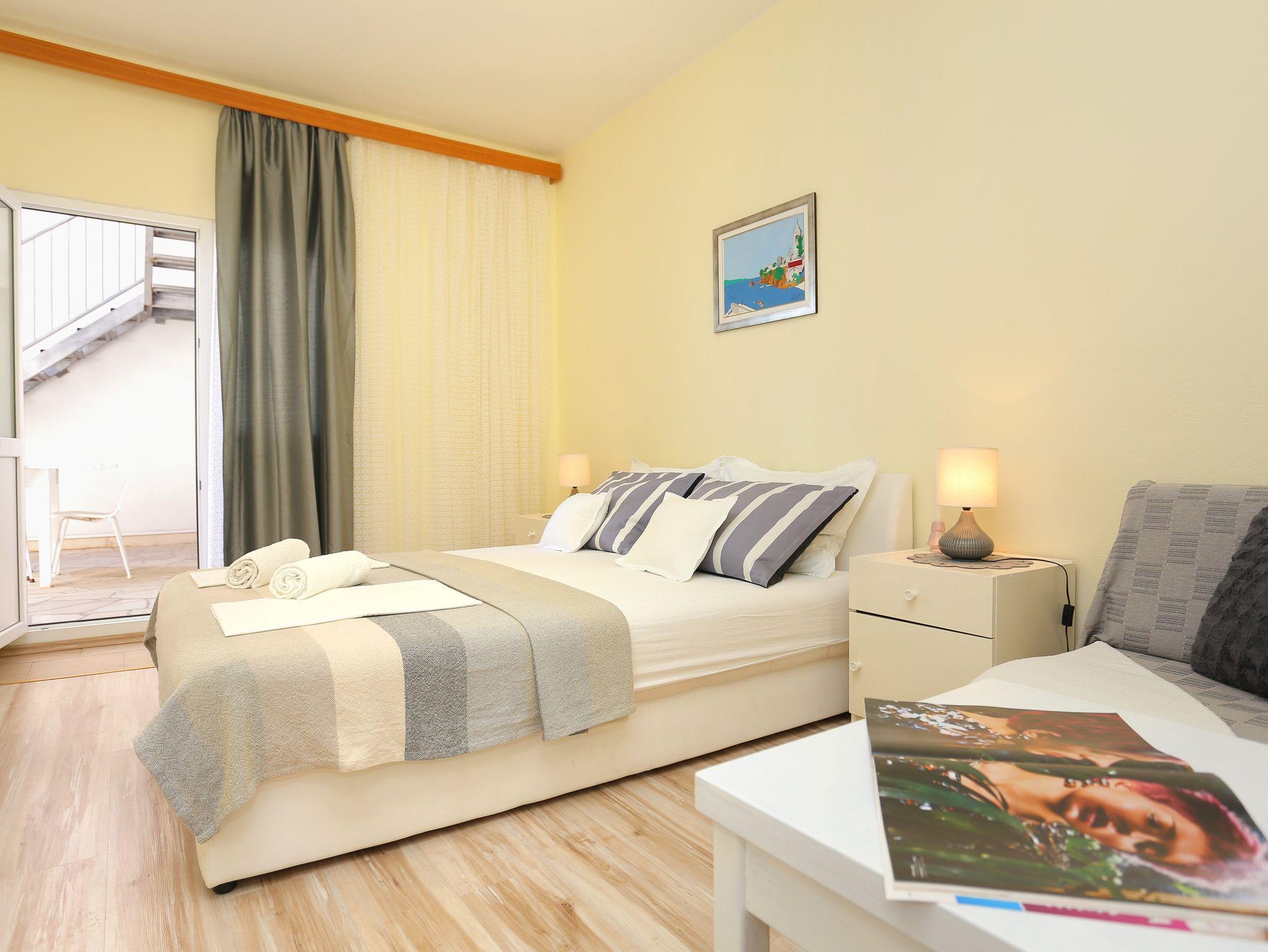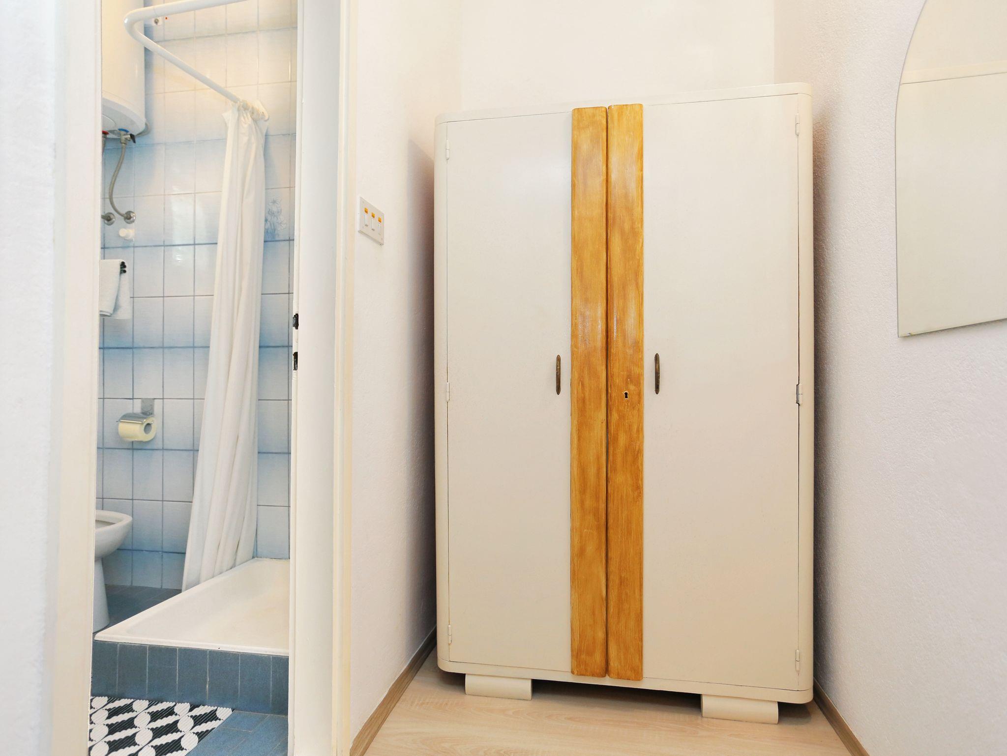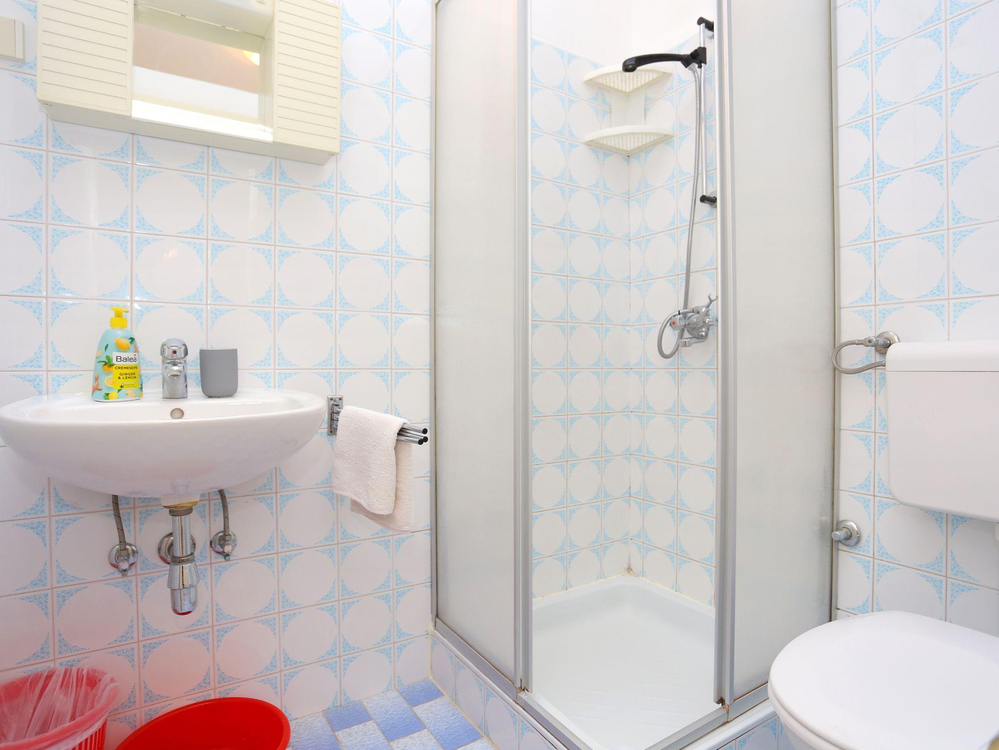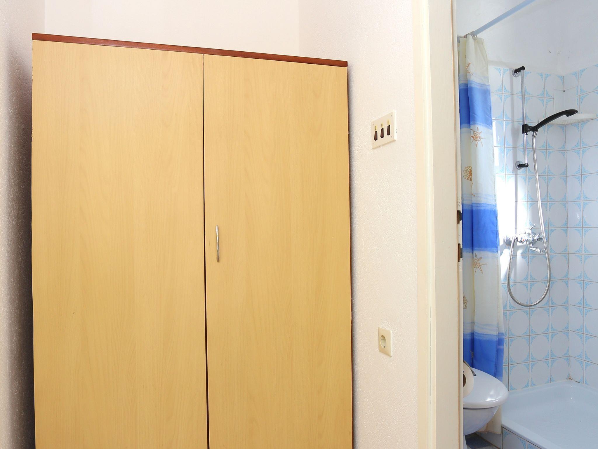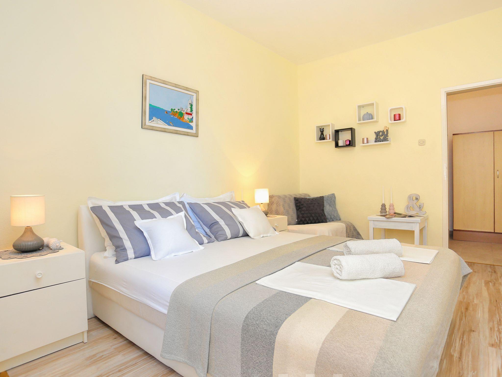 Ferienwohnung bietet Platz für 8 Gäste. Die Betten sind in Schlafzimmern, die es 3 gibt, innerhalb einer Gesamtfläche von 60m2, angeordnet. Die Gäste haben eine eigene Terrasse zur Verfügung, auf der sie in warmen Sommernächten genießen können. Das Apartment bietet Meerblick. Es ist erlaubt, Speisen auf dem Gemeinschafts-Grill vorzubereiten. Unterkunftseinheit hat Räume, die von dem Rest der Einheit abgetrennt werden. IM PREIS INBEGRIFFEN: Kurtaxe, Endreinigung, Klimatisierung, Parkplatz, Internet, Bügeleisen, Föhn. VERBINDLICHE ZUSÄTZLICHE KOSTEN: Aufzahlung für Kurzaufenthalte (prozentualer Zuschlag pro Nächtigungsanzahl: 30% - 1, 20% - 2, 10% - 3). UNVERBINDLICHE ZUSÄTZLICHE KOSTEN: Wäschewaschen (5,00 € Waschen). Die Verfügbarkeit zusätzlicher Dienstleistungen in Ihrem reservierten Termin und die Preise derselben (falls nicht aufgeführt) müssen im Voraus überprüft werden. Zusätzliche Dienstleistungen die in der Zahlungsaufforderung nicht aufgeführt sind werden direkt beim Vermieter bezahlt, angenommen der Gast nutzt auch diese.