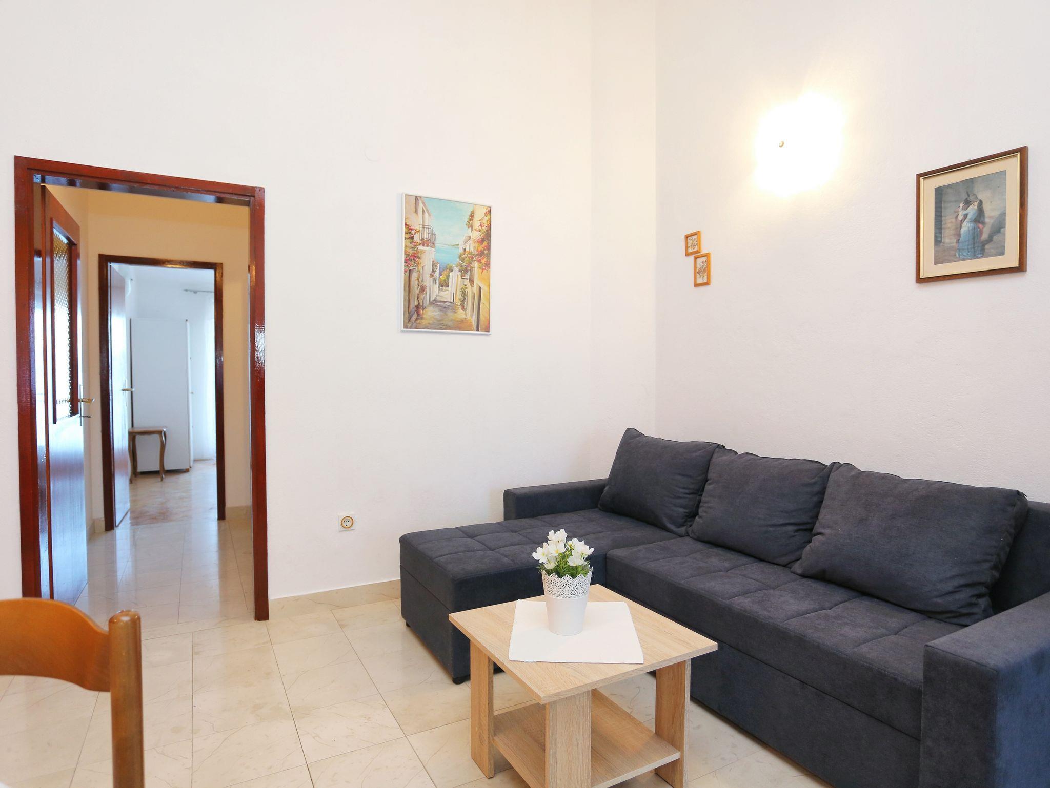 Ferienwohnung bietet Platz für 5 Gäste. Die Betten sind in Schlafzimmern, die es 2 gibt, und in Wohnzimmer, innerhalb einer Gesamtfläche von 62m2, angeordnet. Die Gäste haben eine eigene Terrasse zur Verfügung, auf der sie in warmen Sommernächten genießen können. Das Apartment bietet Meerblick. Für vollen Genuss und Entspannung gibt es einen privaten Grill für Gäste dieser Unterkunft. IM PREIS INBEGRIFFEN: Kurtaxe, Endreinigung, Klimatisierung, Parkplatz, Internet. VERBINDLICHE ZUSÄTZLICHE KOSTEN: Aufzahlung für Kurzaufenthalte (prozentualer Zuschlag pro Nächtigungsanzahl: 30% - 1, 20% - 2, 10% - 3). Die Verfügbarkeit zusätzlicher Dienstleistungen in Ihrem reservierten Termin und die Preise derselben (falls nicht aufgeführt) müssen im Voraus überprüft werden. Zusätzliche Dienstleistungen die in der Zahlungsaufforderung nicht aufgeführt sind werden direkt beim Vermieter bezahlt, angenommen der Gast nutzt auch diese. Ermäßigung auf den Grundpreis: Gratistag 14=13 (bei einem Aufenthalt von 14 Tagen oder mehr erhalten Sie einen Gratistag für den Aufenthalt bis 31.12.26).