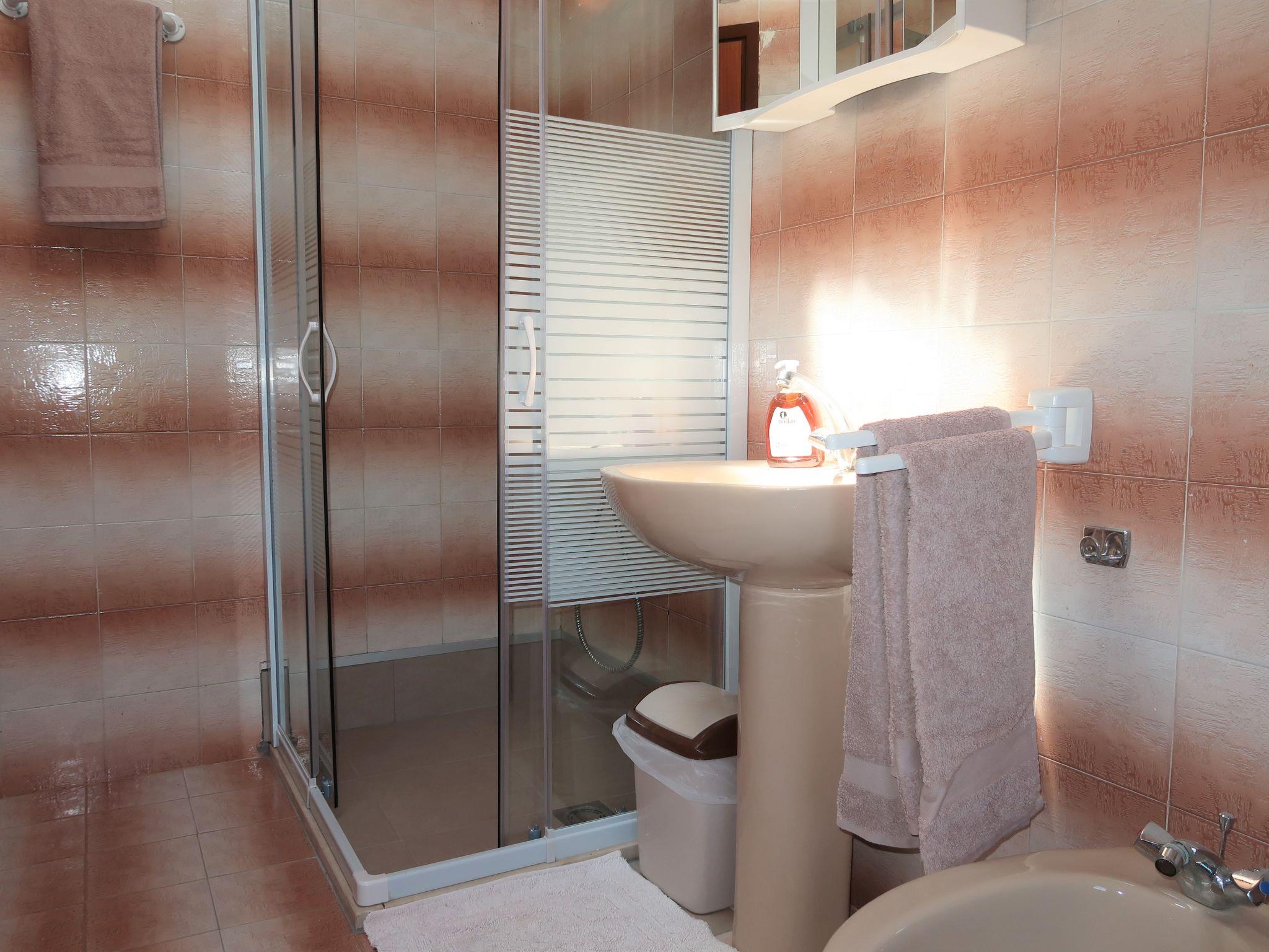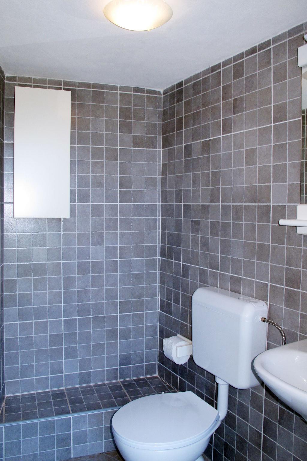 3-room apartment 60 m2 on 1st floor. Living room with sloping ceilings with satellite TV. Entrance hall with air conditioning. 1 room with sloping ceilings with 1 french bed (140 cm, length 200 cm). 1 room with sloping ceilings with 1 sofabed and 1 french bed (140 cm, length 200 cm). Kitchen (2 gas rings, toaster, kettle, microwave, freezer, electric coffee machine) with dining table. 2 showers/WC. No heating option. View of the sea. Facilities: washing machine. Internet (WiFi, free). Please note: non-smoking house.